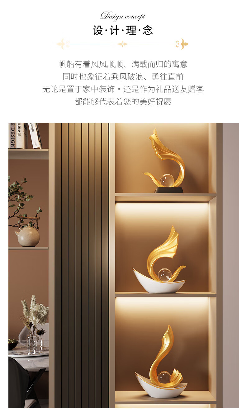 Yunya has smooth sailing, light luxury, high-end living room soft decorations, TV cabinet, wine cabinet, office art entrance, Caiyuan Guangjin decorations
