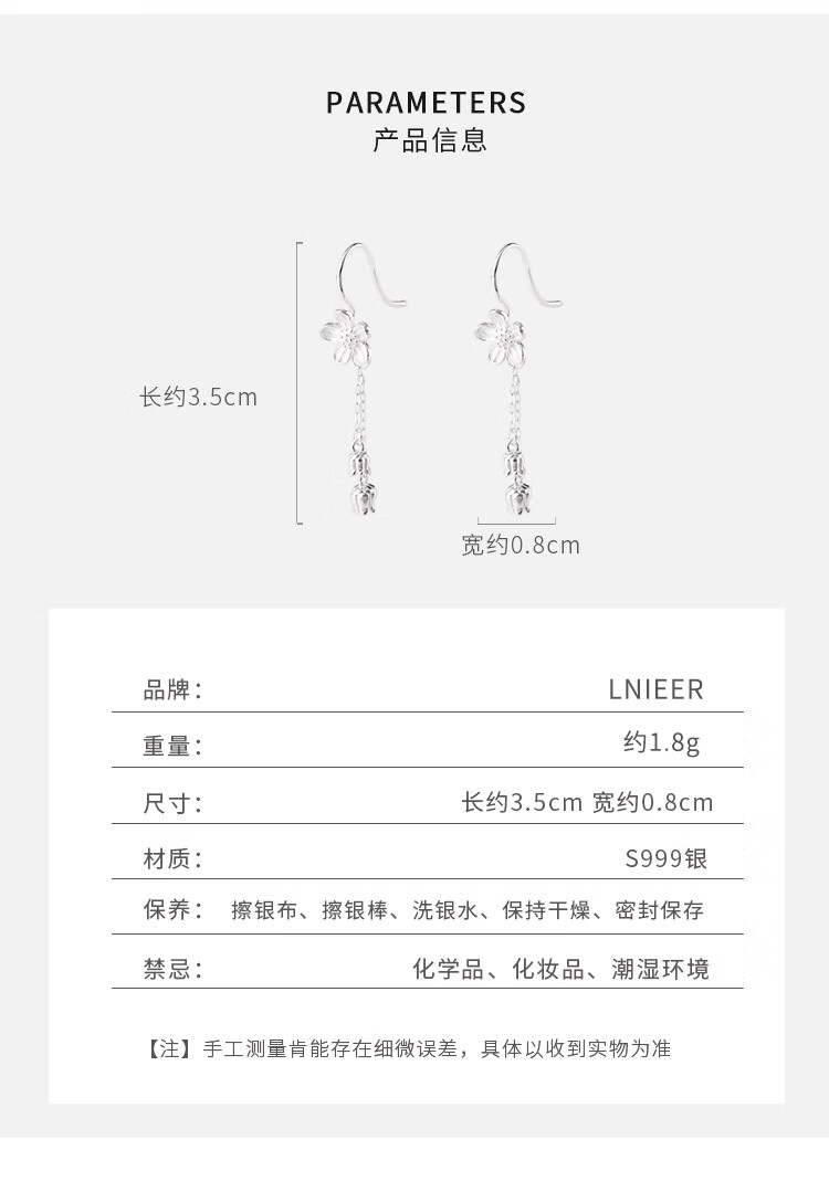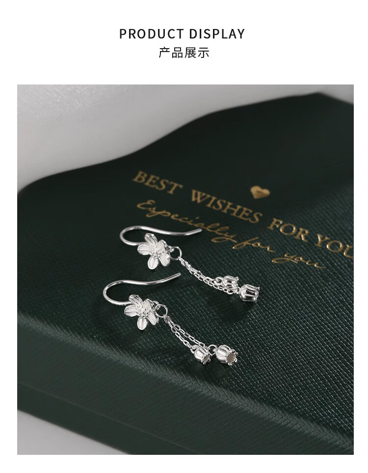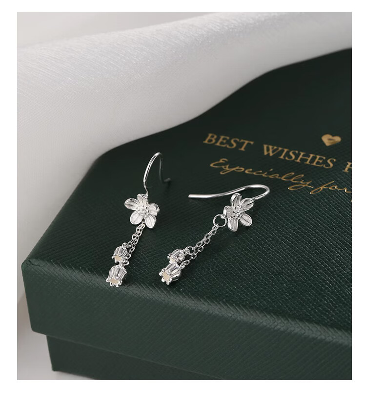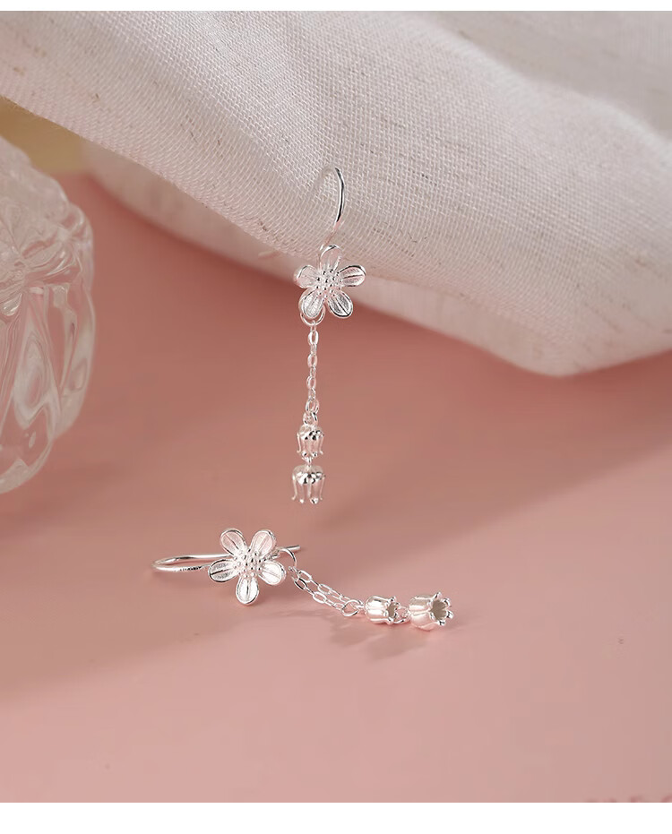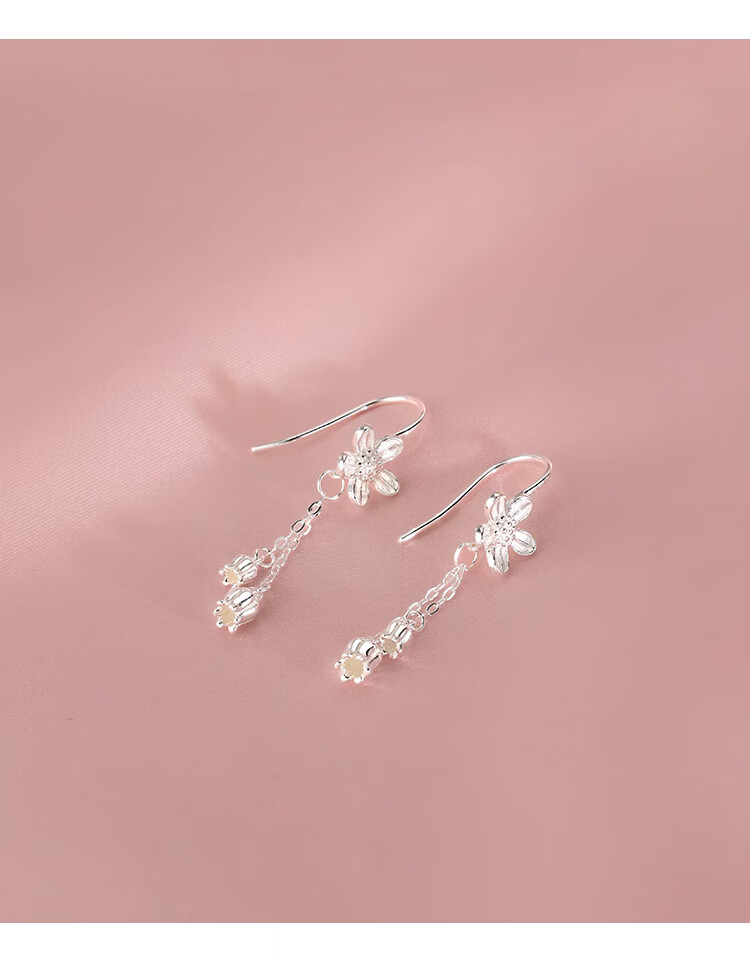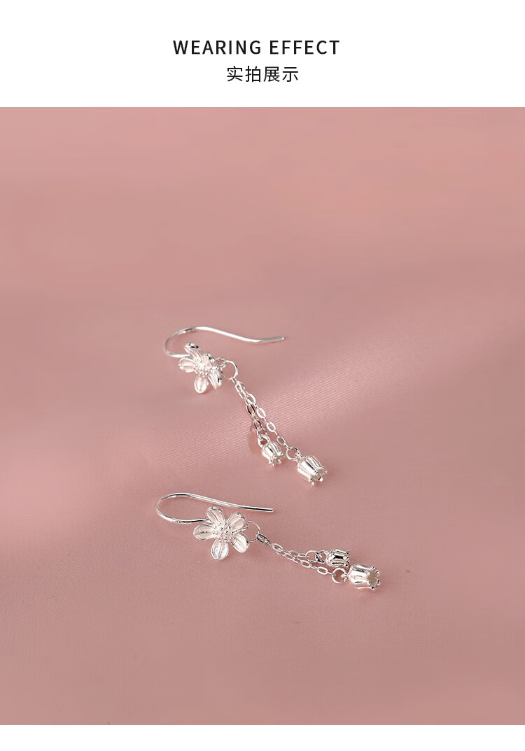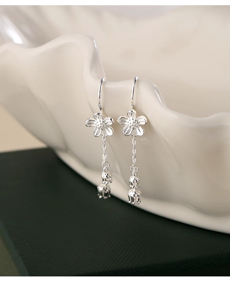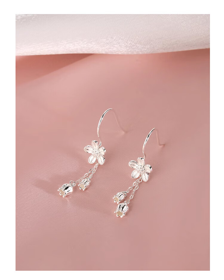 Lnieer999 pure silver flower tassel earrings for women 2025 new style ear piercing sweet temperament white ear hook lily of the valley earrings flower tassel earrings full silver