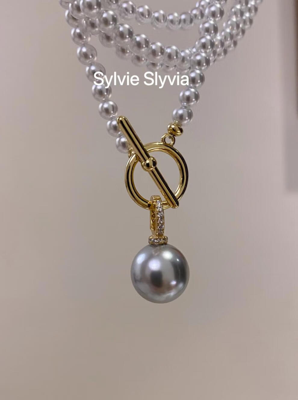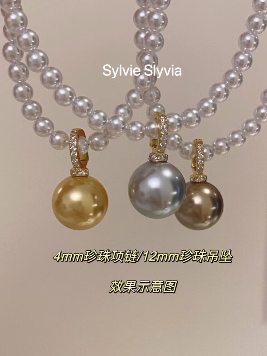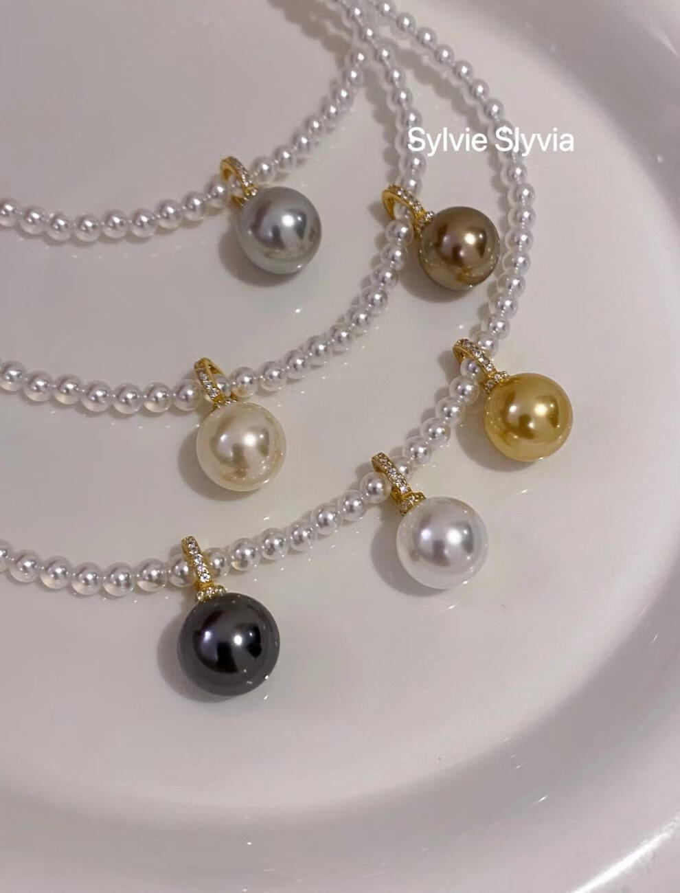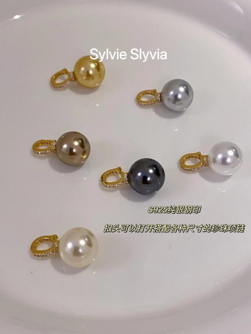 DL 1998 Fat Donglai same style pearl pendant single without chain Shijia round strong light Australian white silver buckle light luxury summer lock new silver buckle/cold light Australian white 14mm