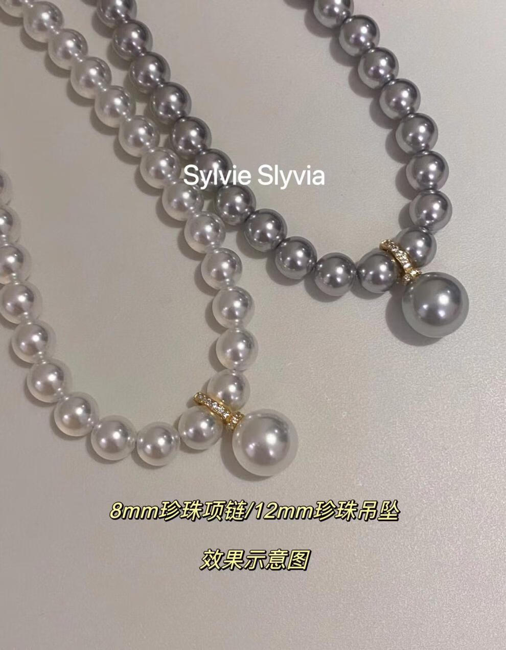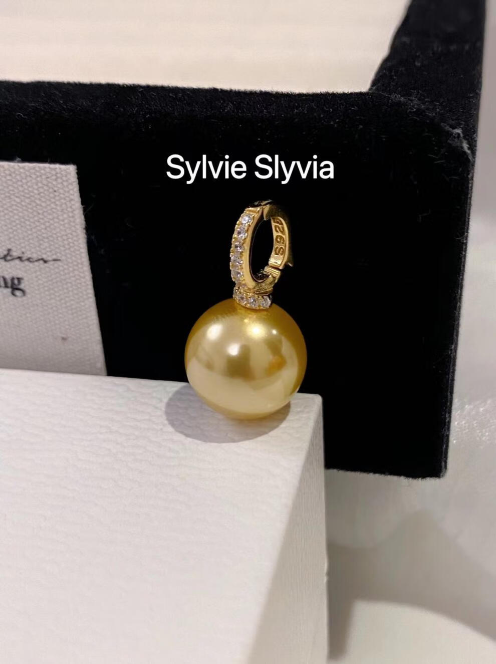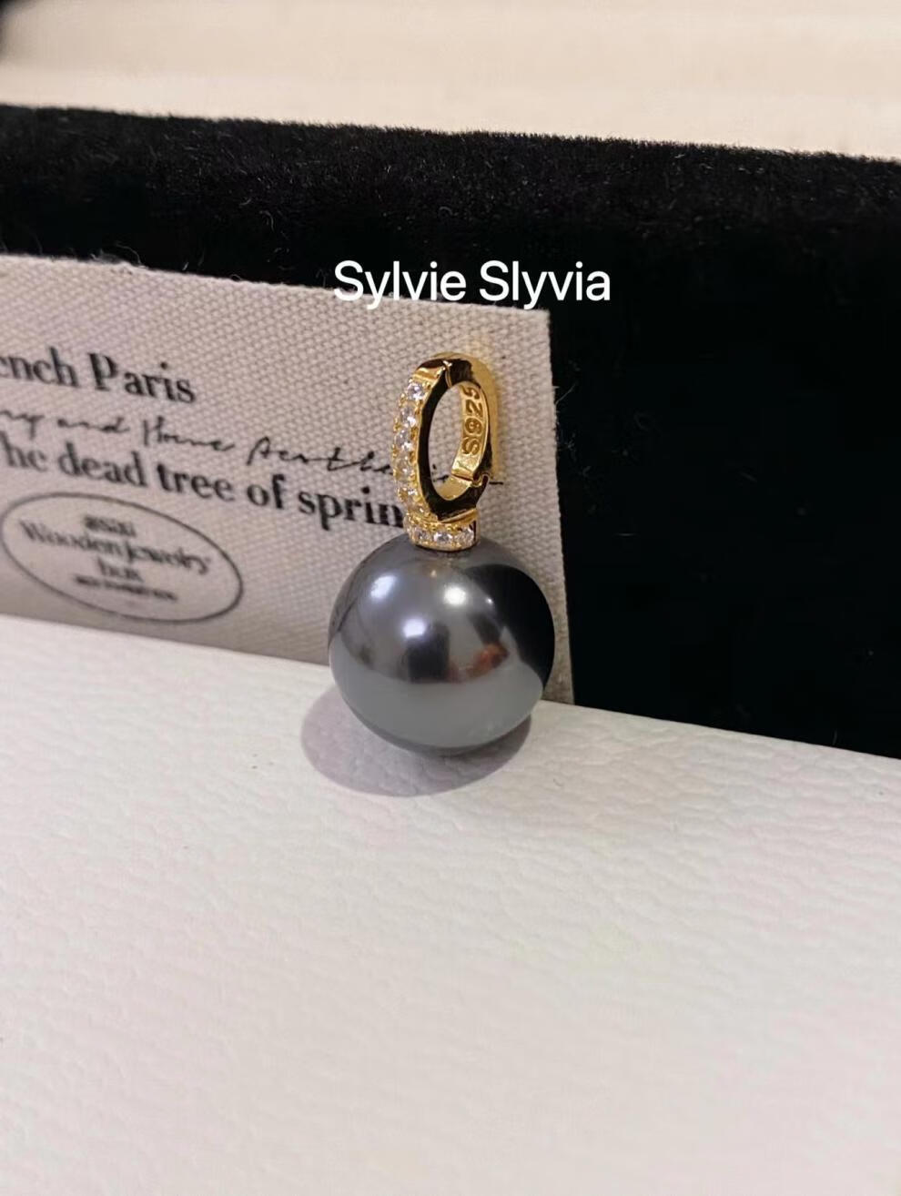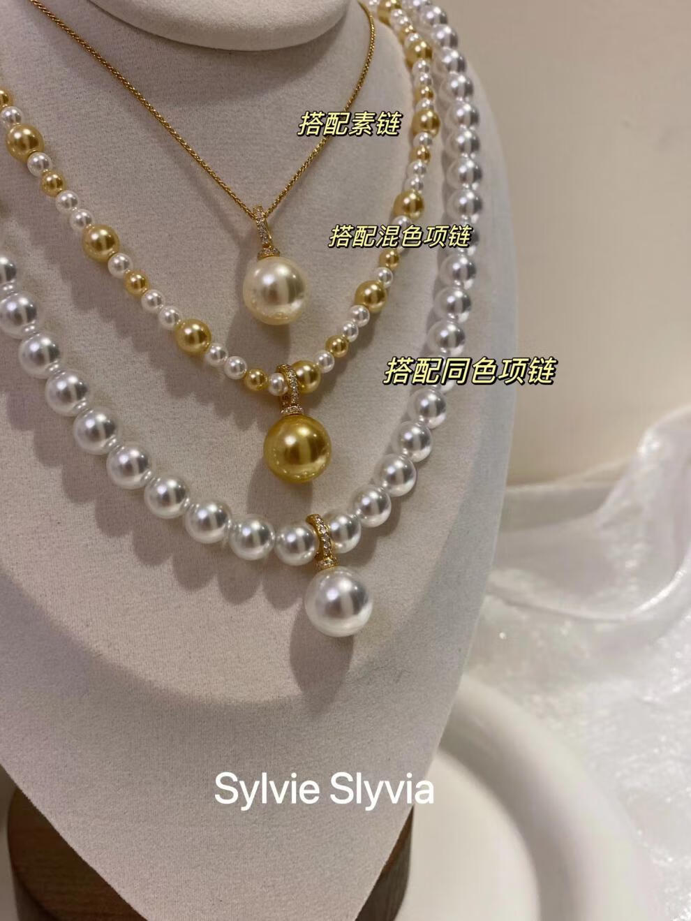 DL 1998 Fat Donglai same style pearl pendant single without chain Shijia round strong light Australian white silver buckle light luxury summer lock new silver buckle/cold light Australian white 14mm