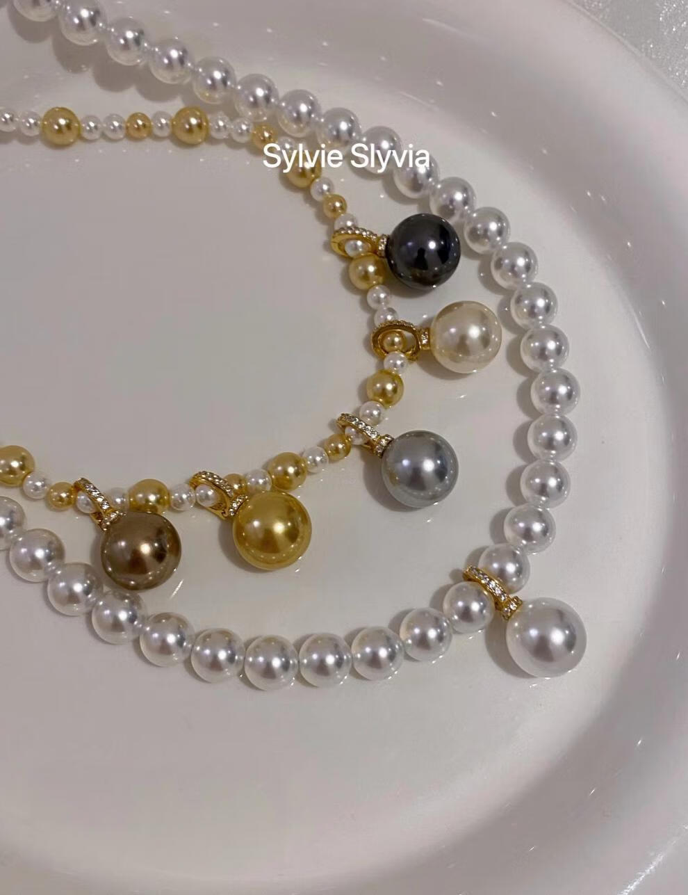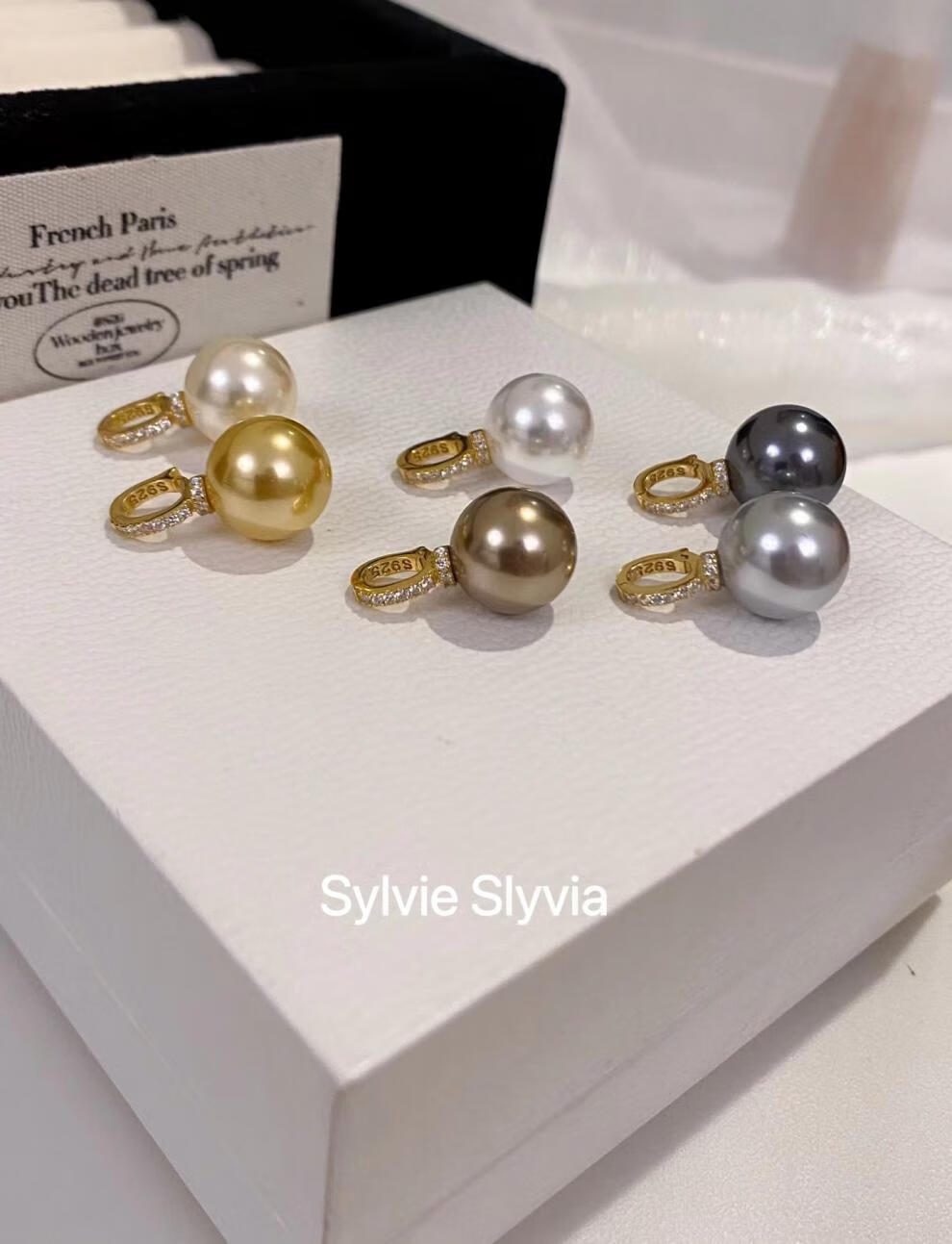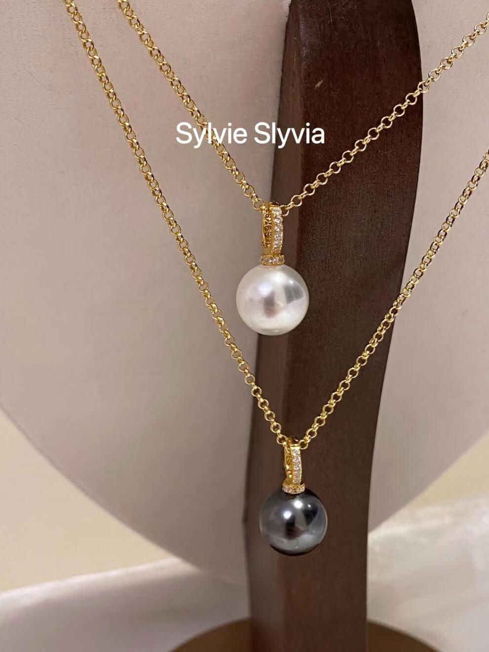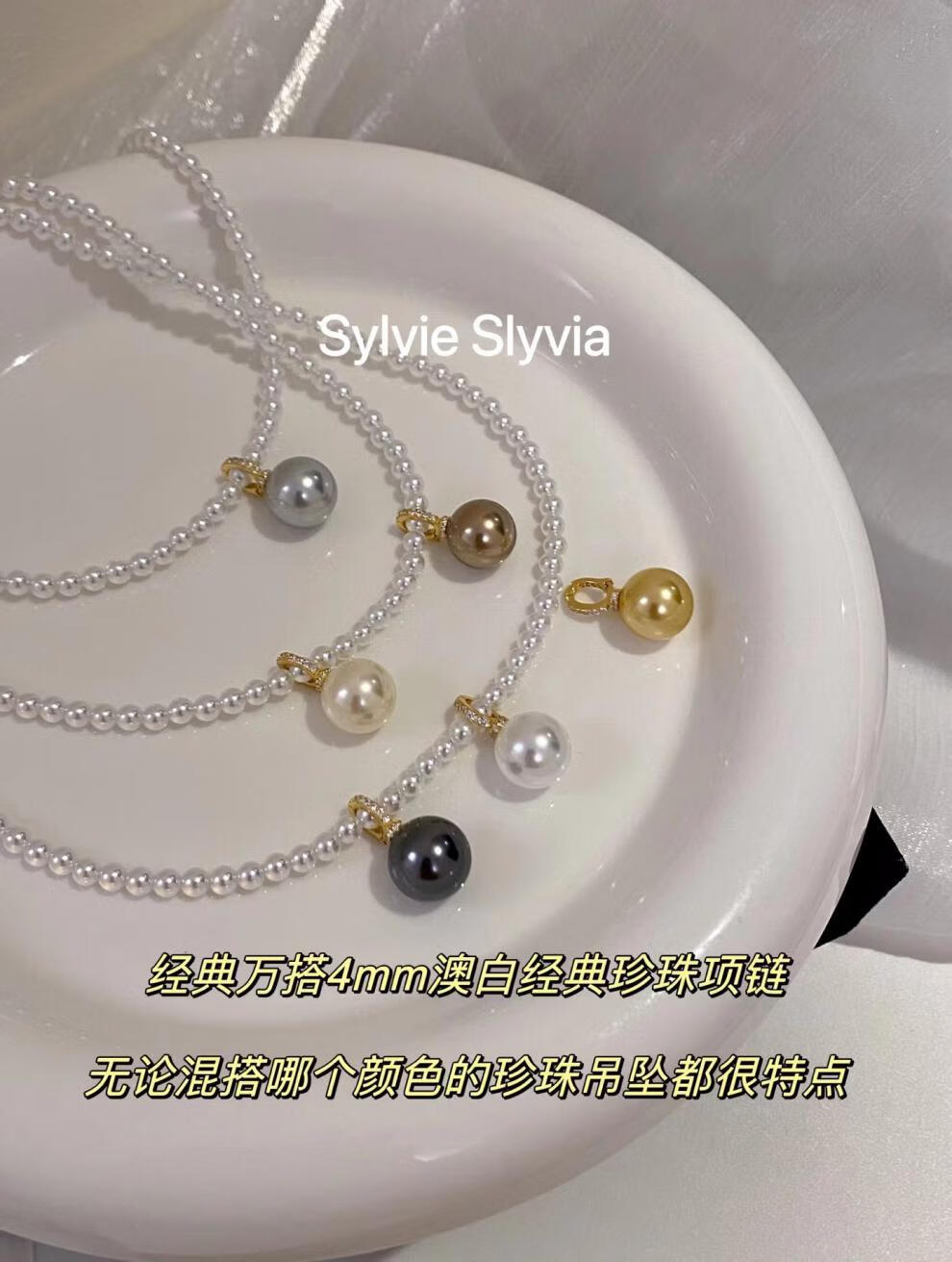 DL 1998 Fat Donglai same style pearl pendant single without chain Shijia round strong light Australian white silver buckle light luxury summer lock new silver buckle/cold light Australian white 14mm