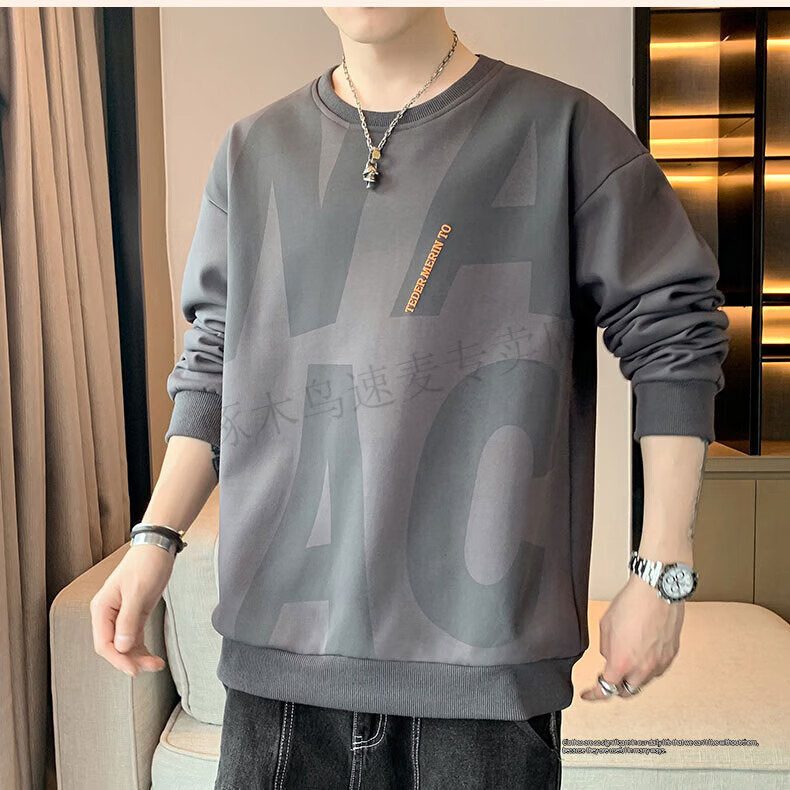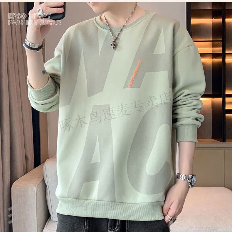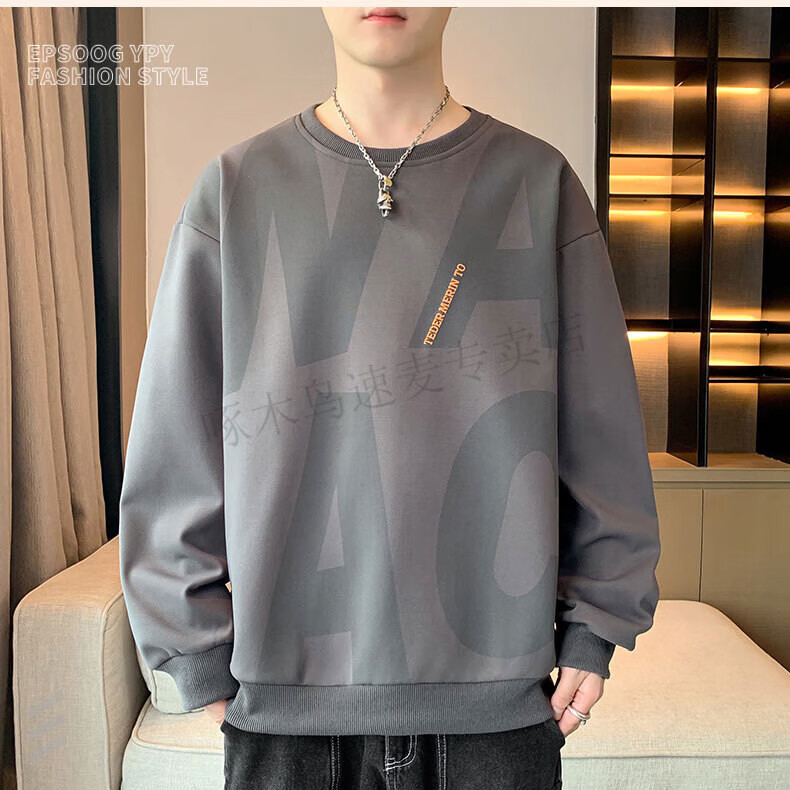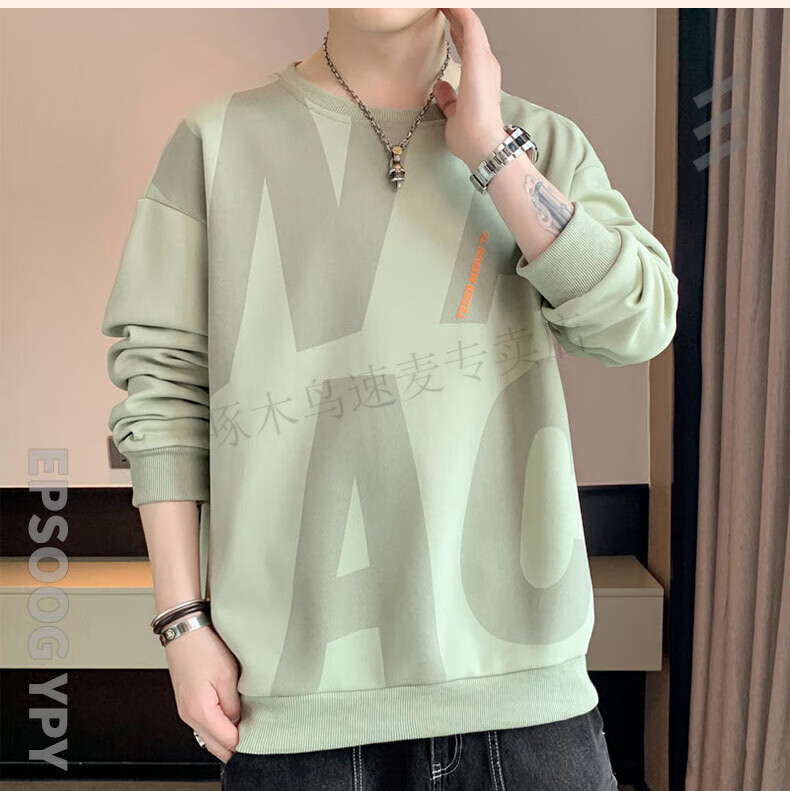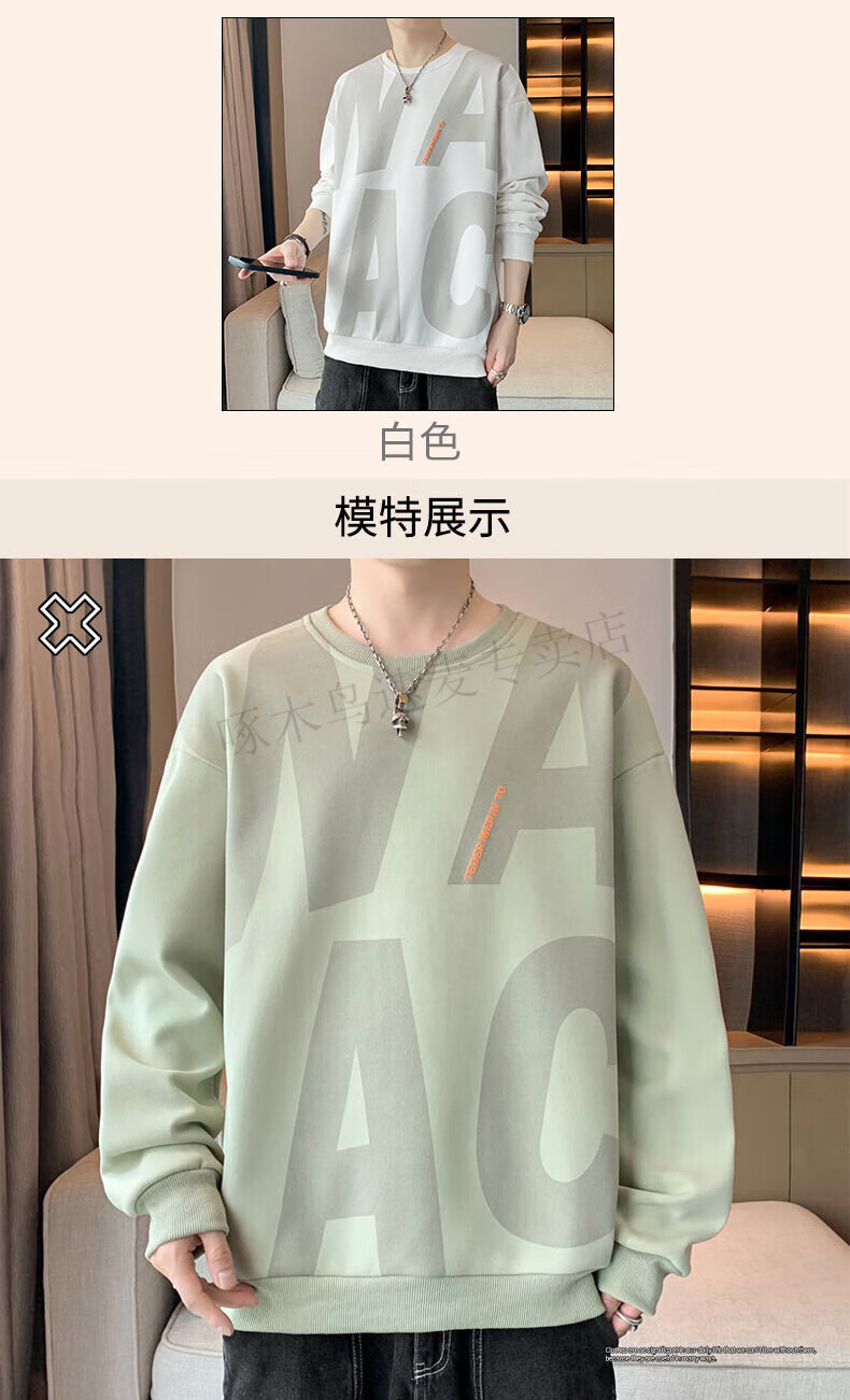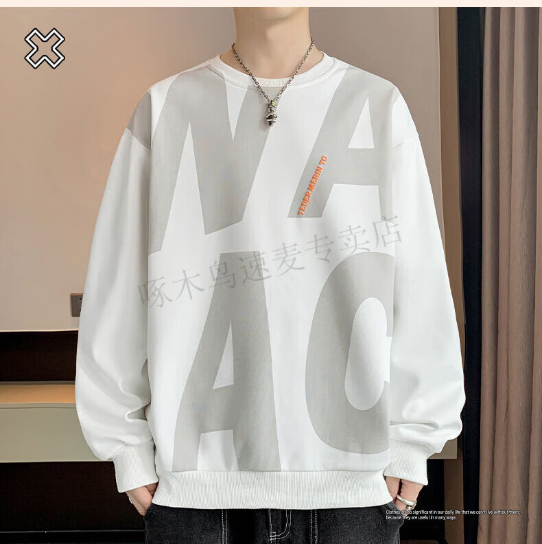 Woodpecker (TUCANO) large size sweatshirt for men in spring and autumn, extra large loose trendy brand round neck casual versatile plus fat bottoming top FJB607-6586 black 5XL recommended 190-210Jin Jin is equal to 0.5 kg