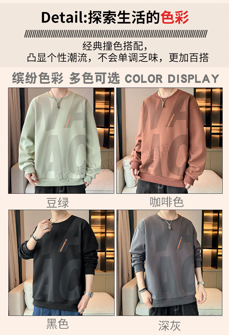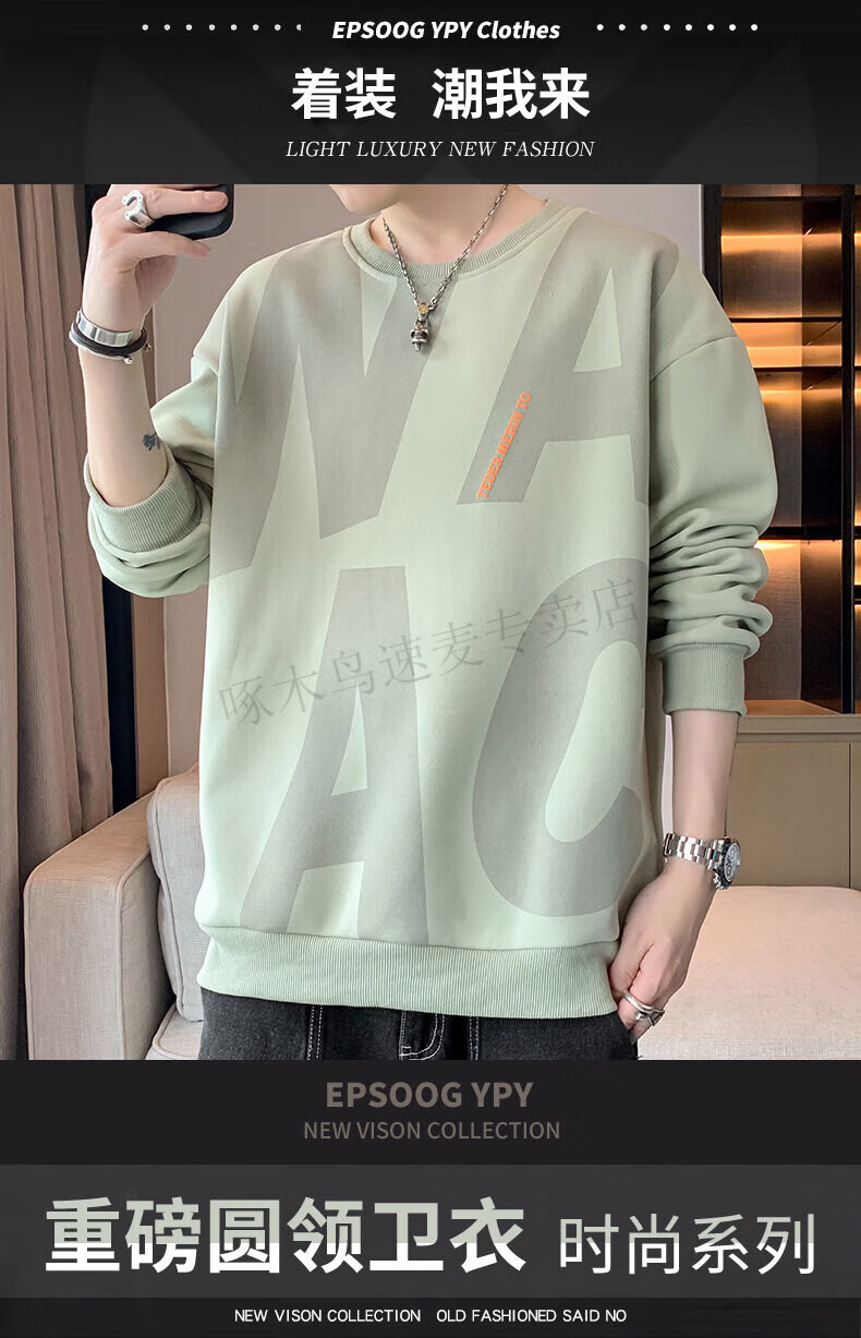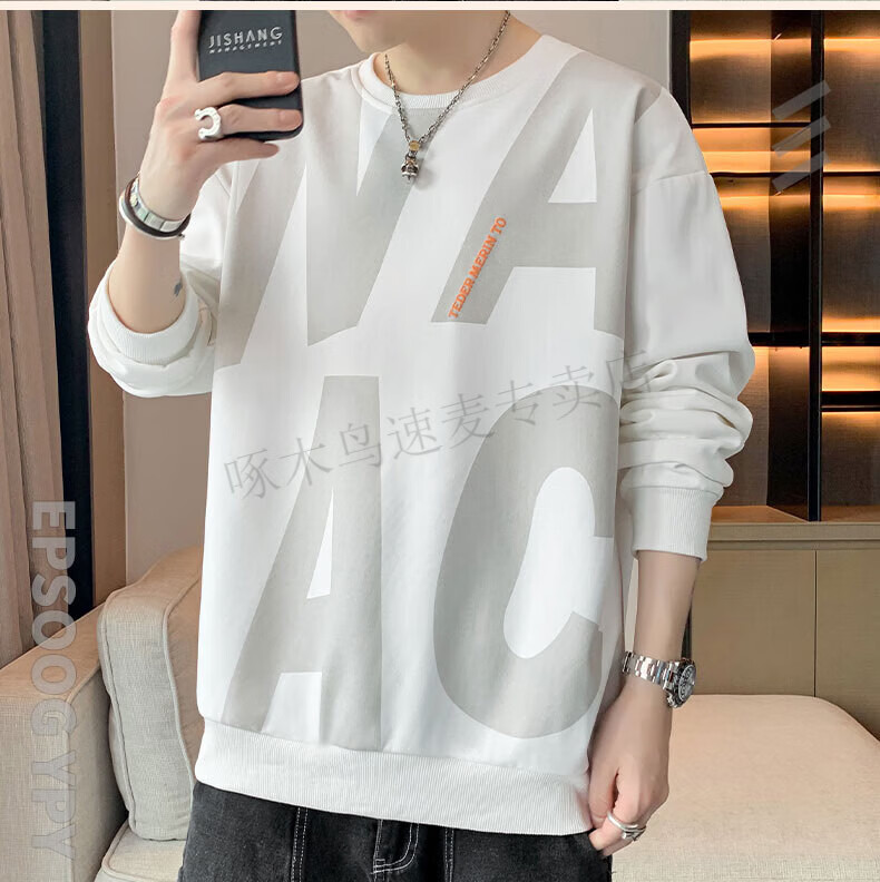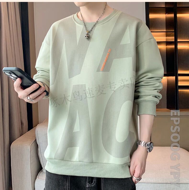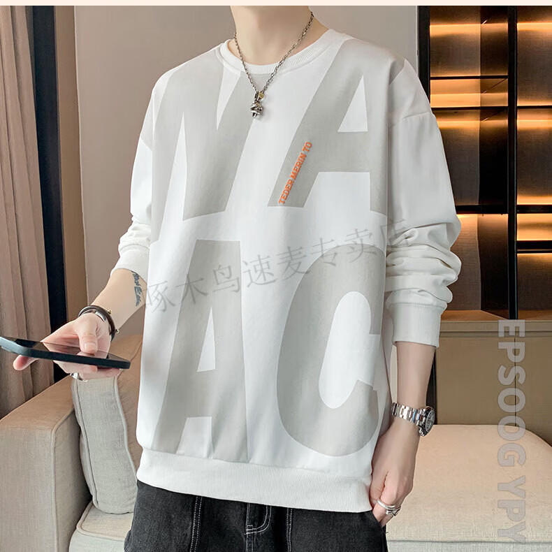 Woodpecker (TUCANO) large size sweatshirt for men in spring and autumn, extra large loose trendy brand round neck casual versatile plus fat bottoming top FJB607-6586 black 5XL recommended 190-210Jin Jin is equal to 0.5 kg