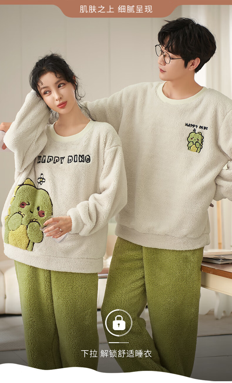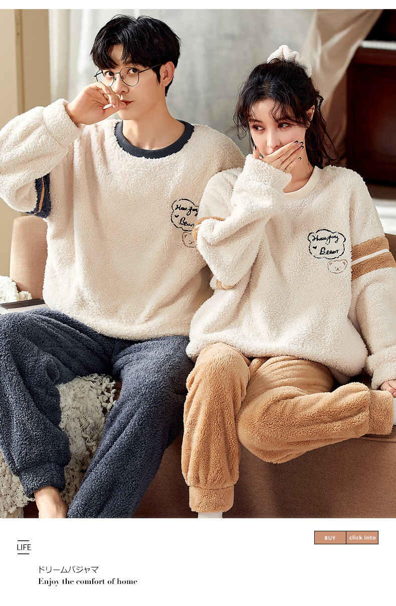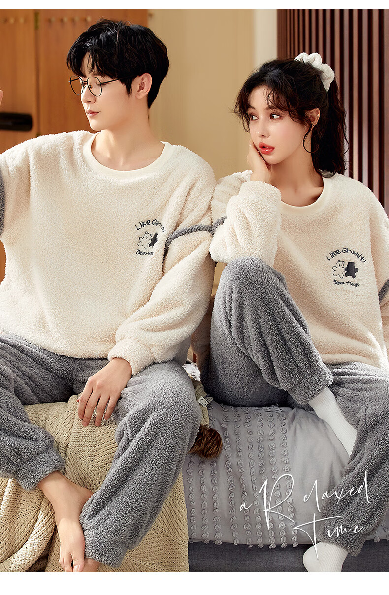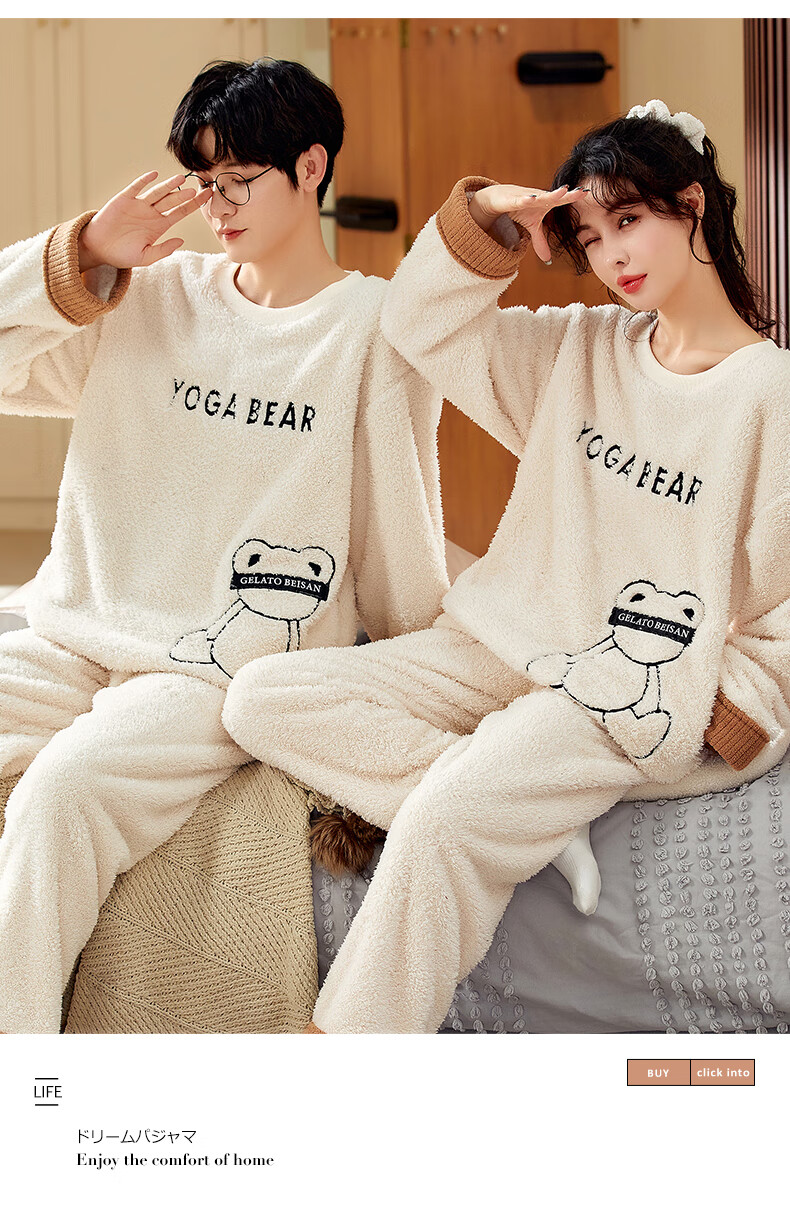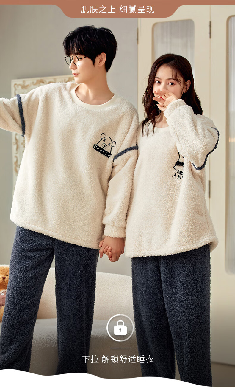 Moszhen autumn and winter coral velvet couple pajamas men's cartoon thickened velvet can be worn outside young women's round neck home clothes YSD663 female XL size (recommended 120-135Jin Jin is equal to 0.5 kg)