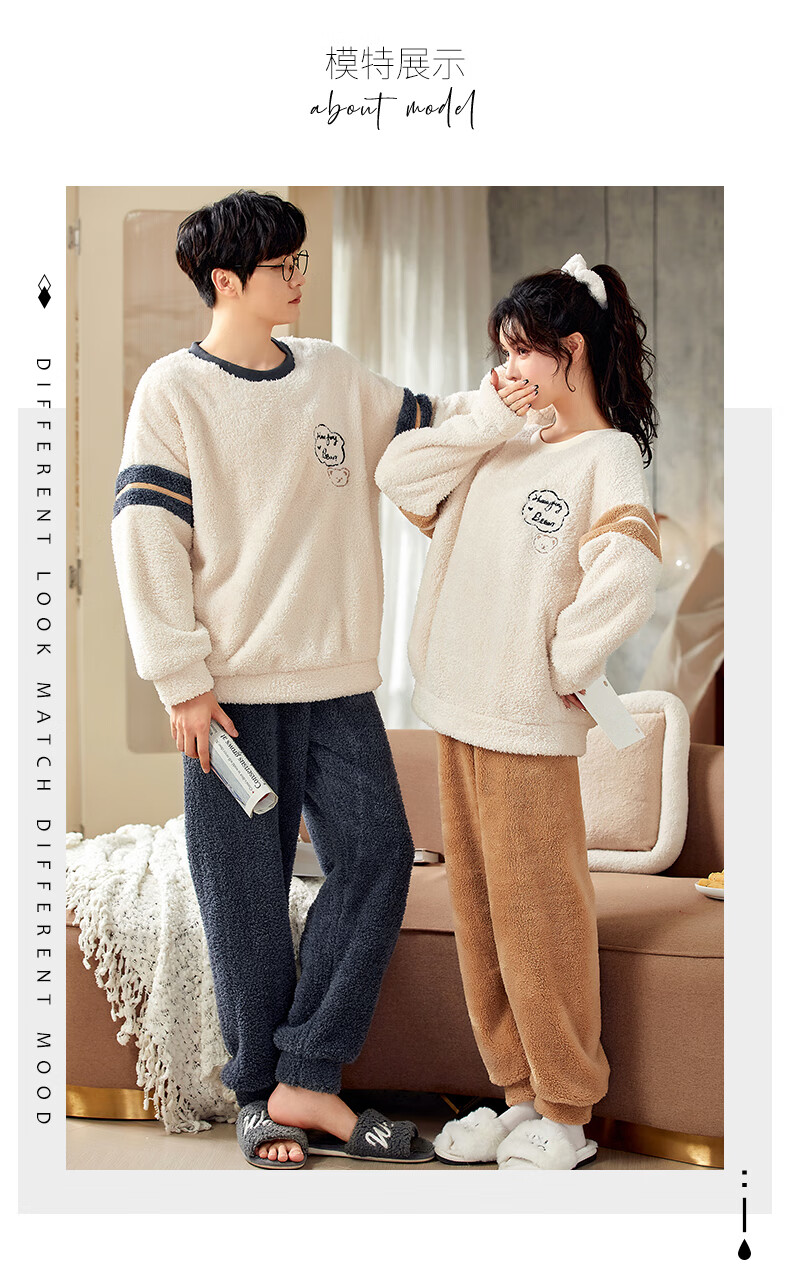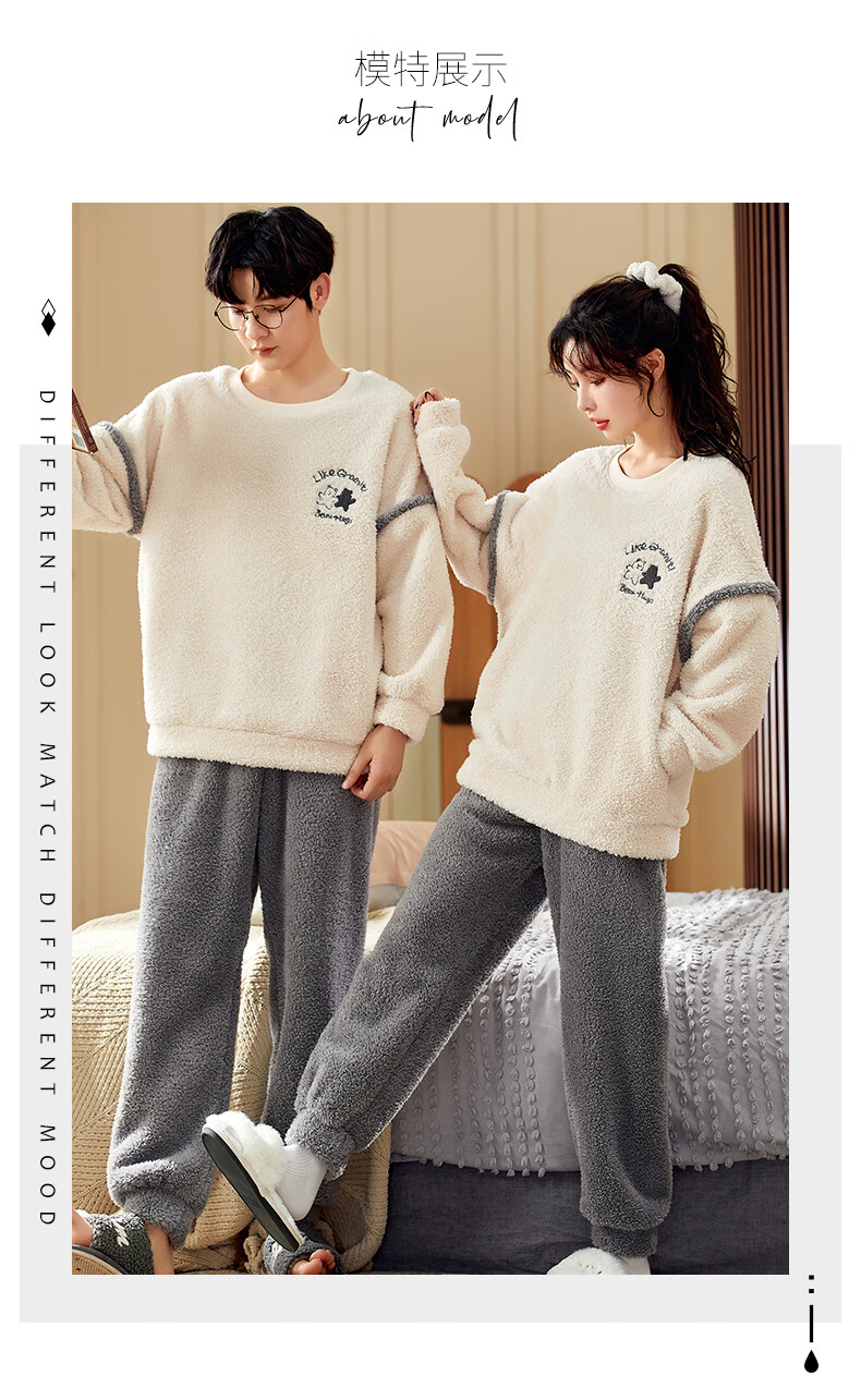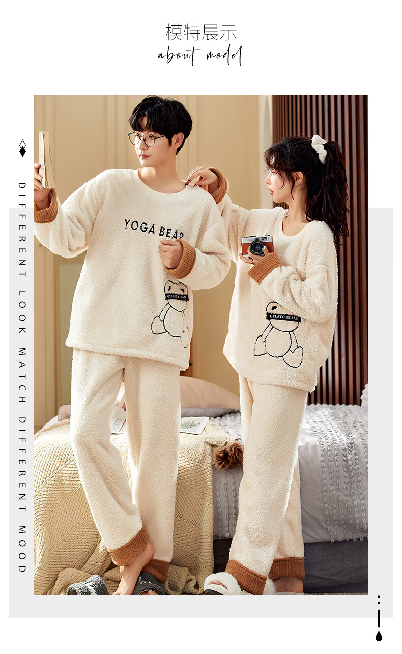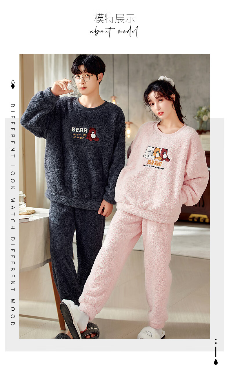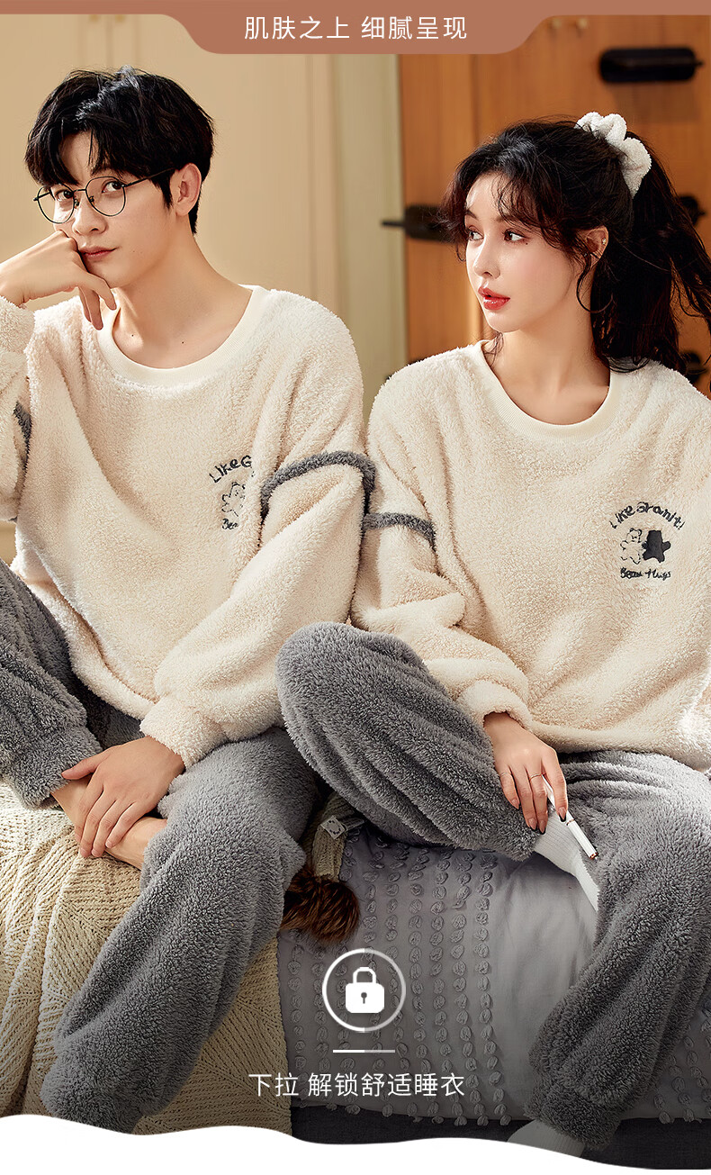 Moszhen autumn and winter coral velvet couple pajamas men's cartoon thickened velvet can be worn outside young women's round neck home clothes YSD663 female XL size (recommended 120-135Jin Jin is equal to 0.5 kg)