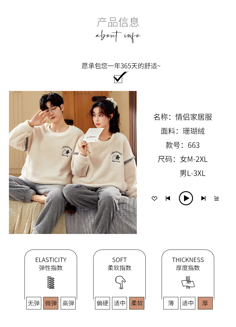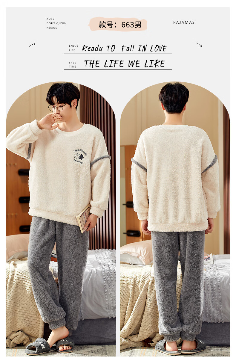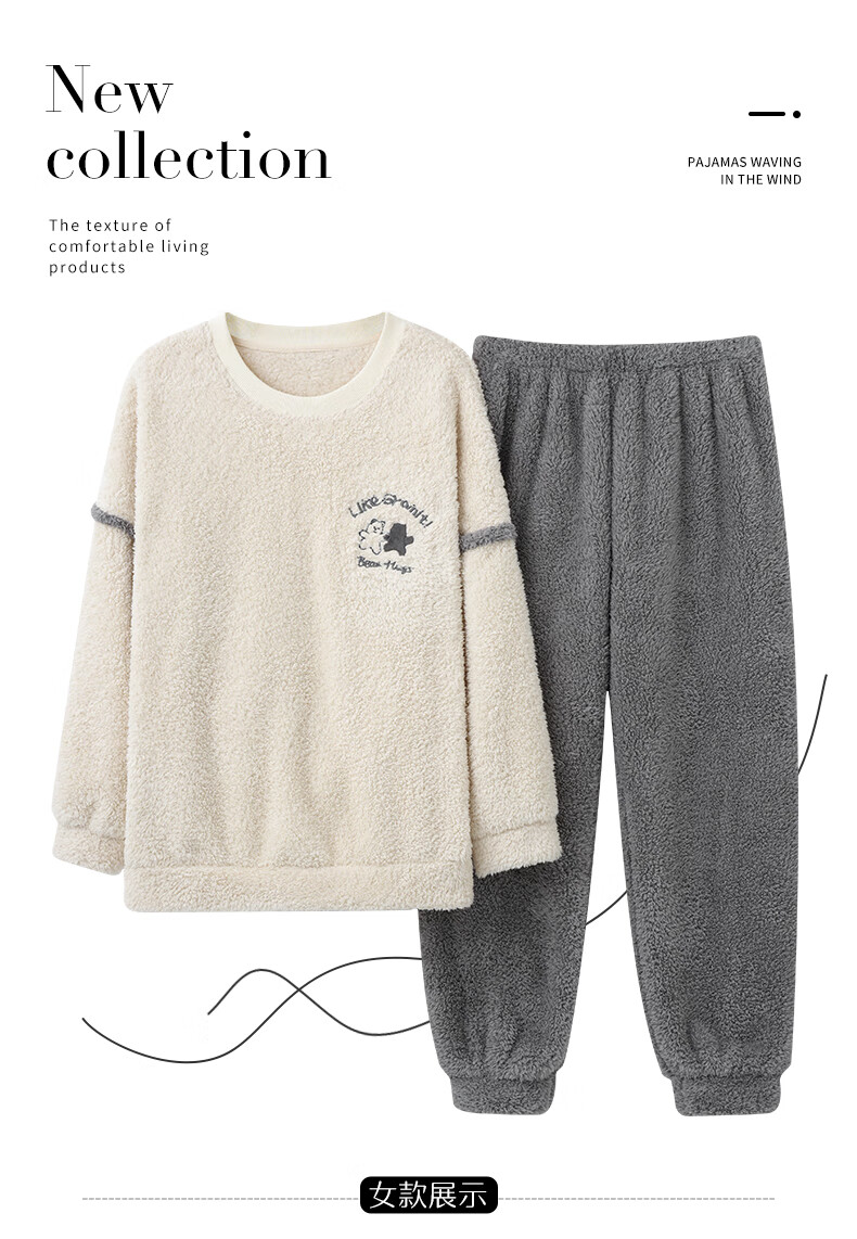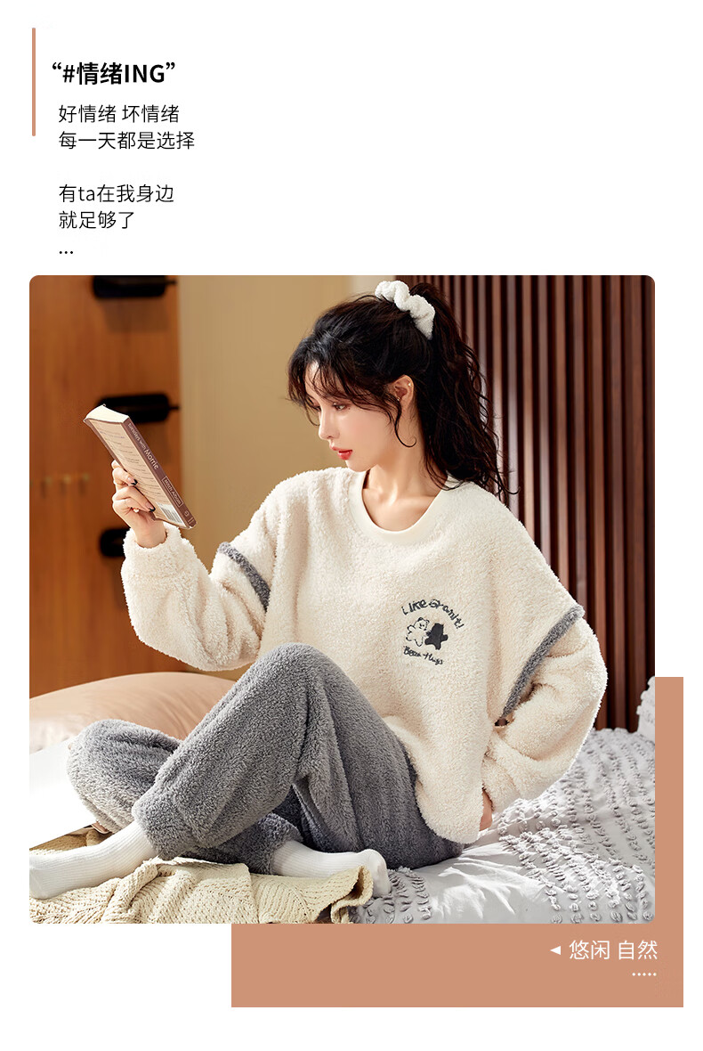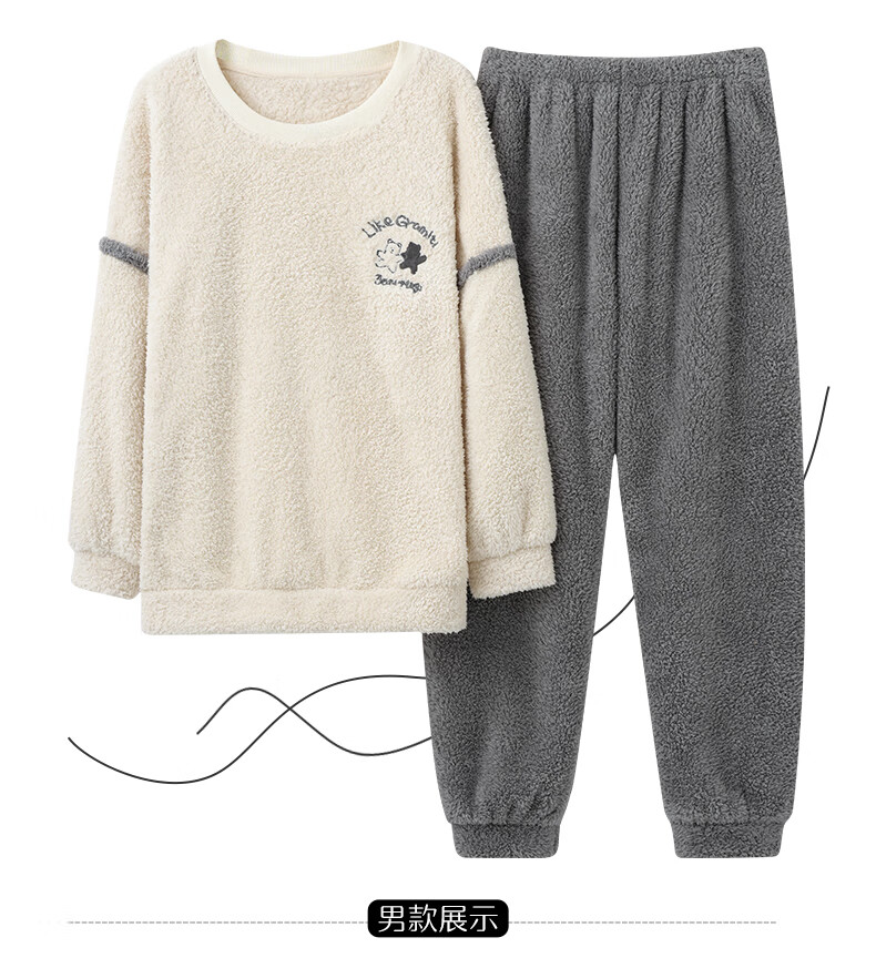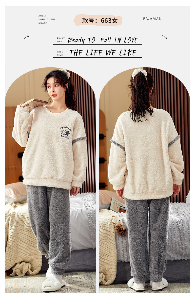Moszhen autumn and winter coral velvet couple pajamas men's cartoon thickened velvet can be worn outside young women's round neck home clothes YSD663 female XL size (recommended 120-135Jin Jin is equal to 0.5 kg)