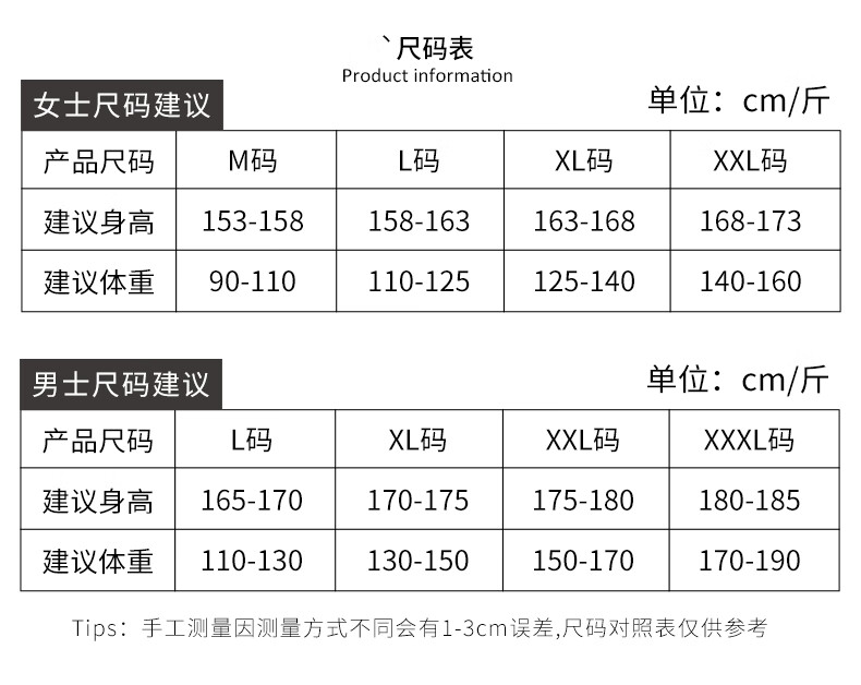 China (cm) 160-165/84-86 165-170 / 88-90 167-172 / 92-96 168-173 / 98-102 170-176 / 106-110