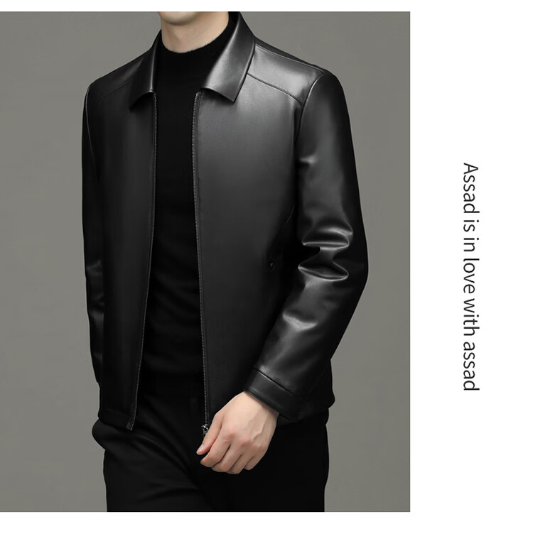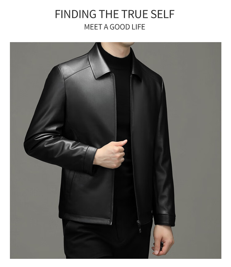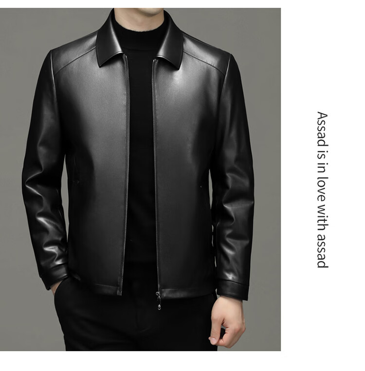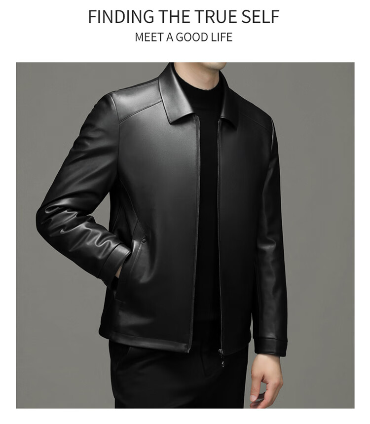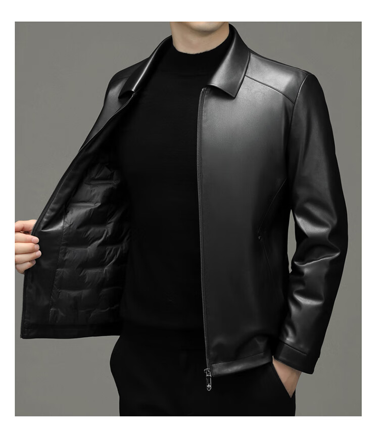 Flying in the Snow 2024 Winter New Style Fashionable Leather Down Jacket Men's Middle-aged Short Warm Motorcycle Jacket Jacket Leather Clothing Trend Black 170/88A