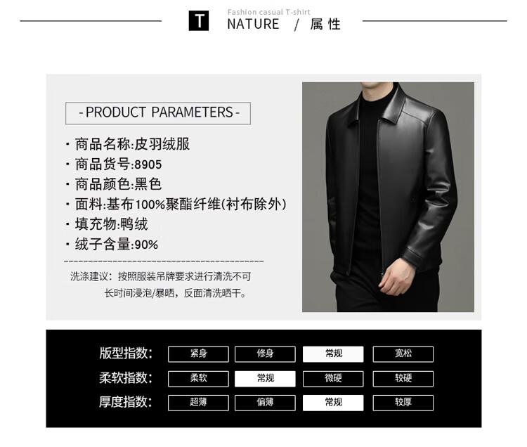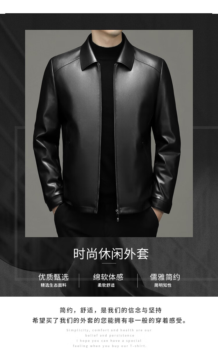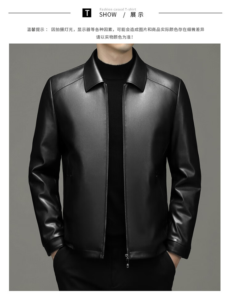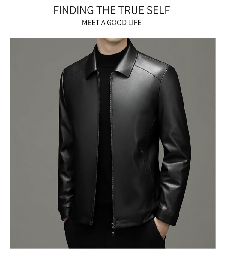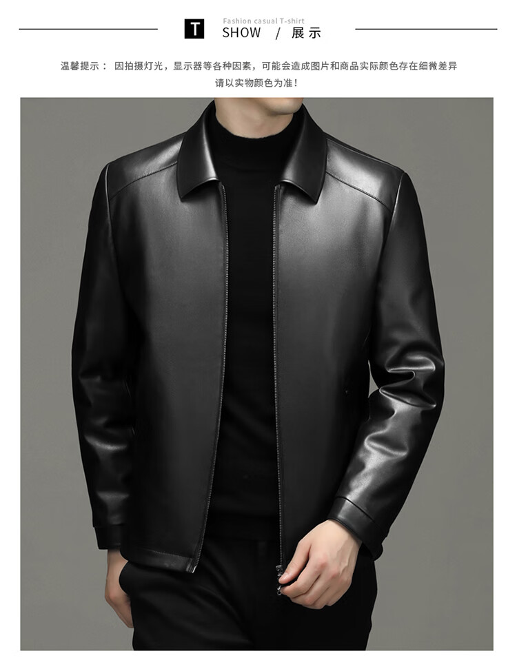 Flying in the Snow 2024 Winter New Style Fashionable Leather Down Jacket Men's Middle-aged Short Warm Motorcycle Jacket Jacket Leather Clothing Trend Black 170/88A