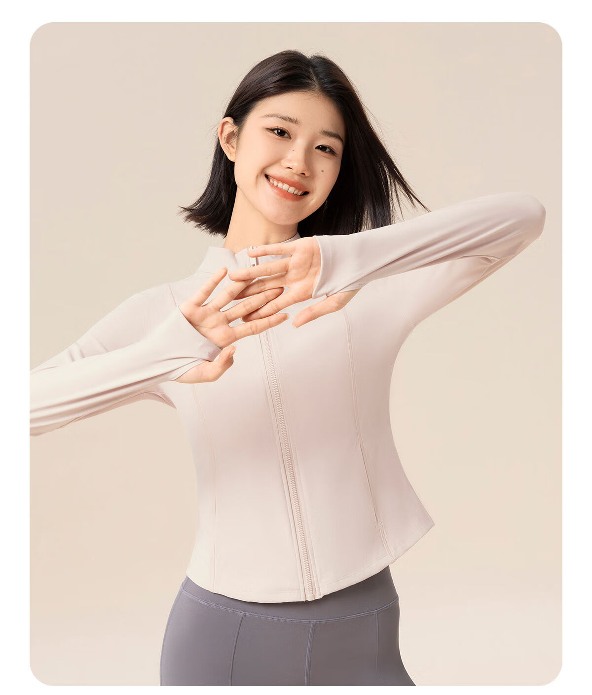 361 Fitness Sportswear Women's Long Sleeve T-Shirt Jacket Sports Top Pilates Training Running Outdoor Yoga Wear Soft Mist Powder L