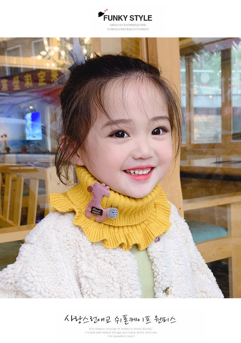 Autumn and winter baby scarf women's neck scarf knitted thickened windproof warm cute boys and girls children's winter deer scarf pink + beige children's deer scarf