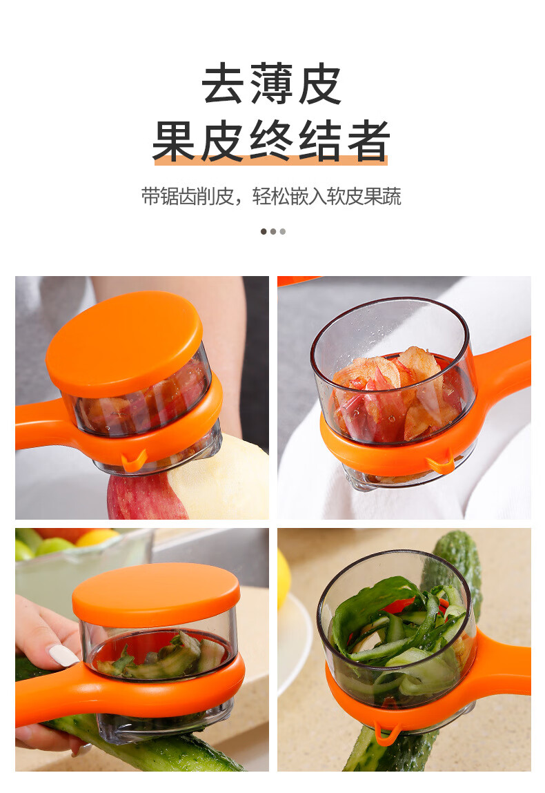 CLCEY household multifunctional storage paring knife with storage box peeling knife fruit potato peeling artifact stainless steel knife orange (with cover) 2 pieces