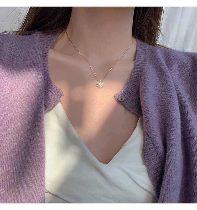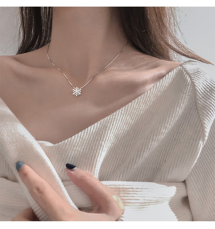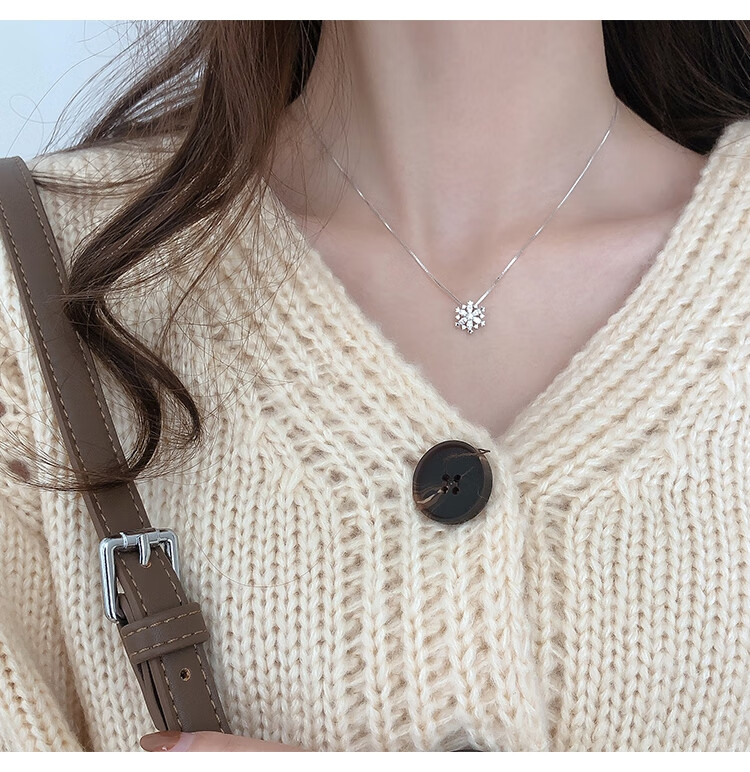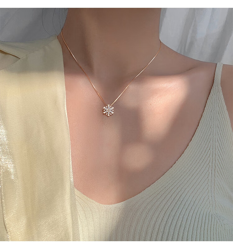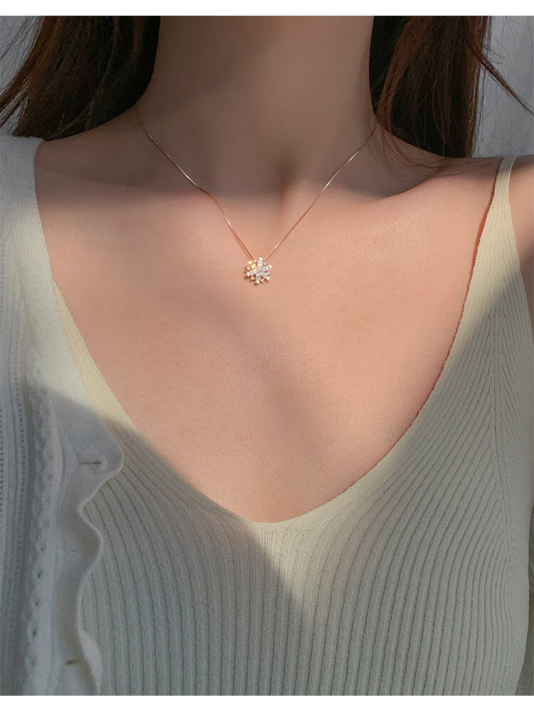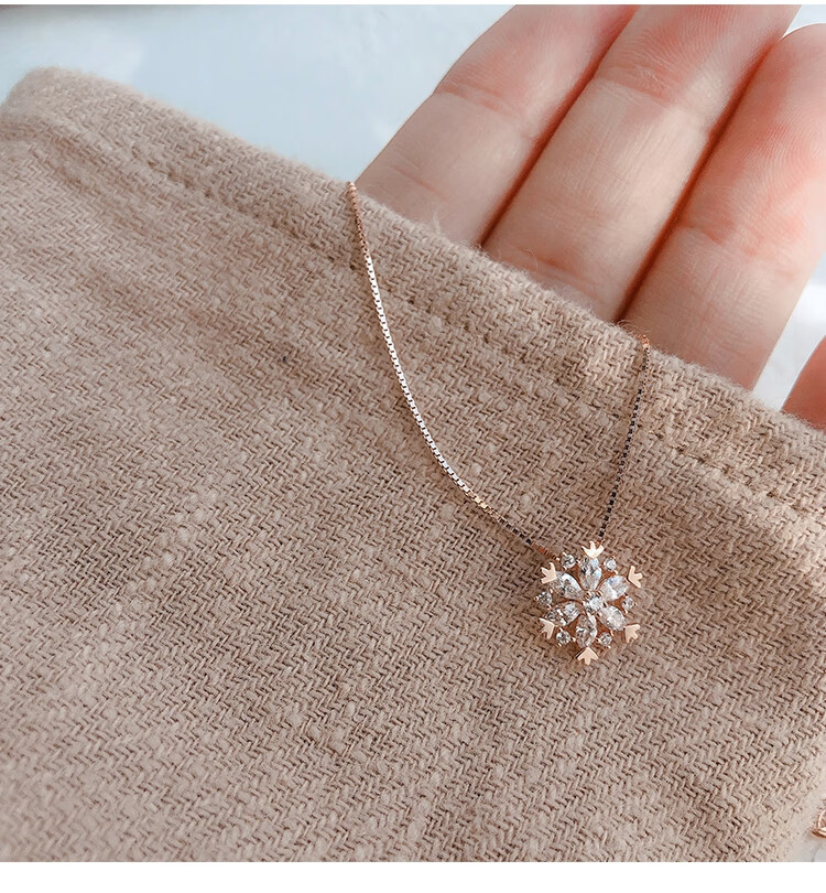 Blancpain Snowflake S925 sterling silver necklace women's exquisite clavicle chain 2024 new light luxury niche design high-end champagne color Snowflake Necklace
