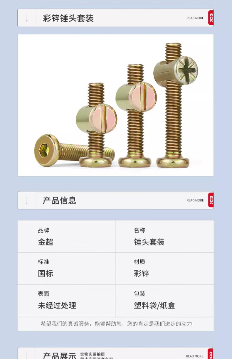 Jinchao national standard hammer nut, hammer head nut, furniture two-in-one connector, hammer embedded screw nut, M6*50 (5 sets), one-word slot