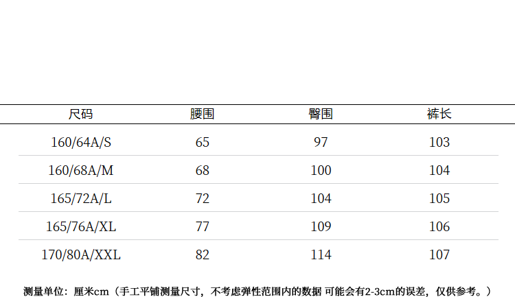 Outseam (cm) 99 cm 101.5 cm 104 cm 106.5 cm 109 cm