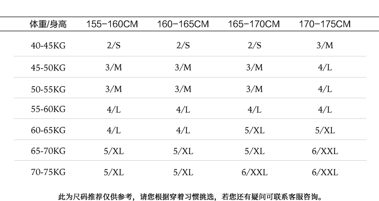 China (cm) 160-165/84-86 165-170 / 88-90 167-172 / 92-96 168-173 / 98-102 170-176 / 106-110