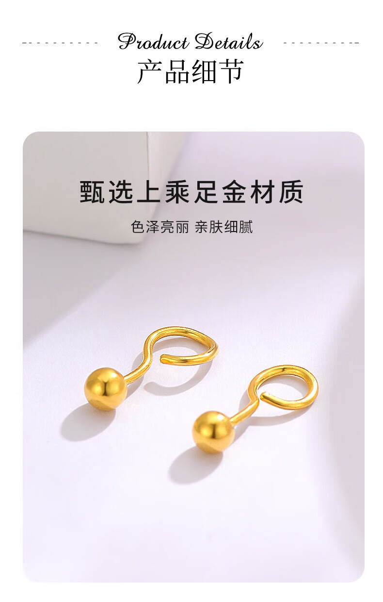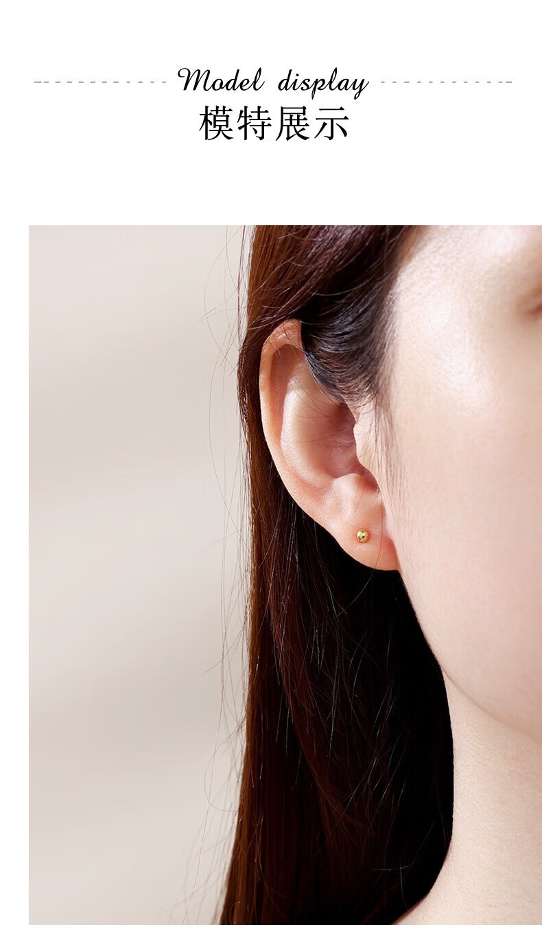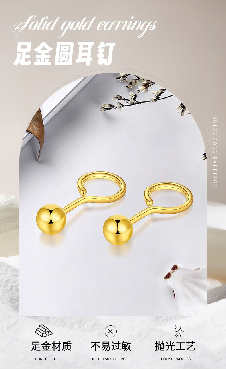 Chinese jewelry SINO GEM round bead gold earrings for women pure gold bubble earrings small gold bean earrings Chinese Valentine's Day gift for girlfriend and wife Pure gold round bead earrings + brand gift box Jingcangfa One pair of pure gold earrings, gold weight is about 0.3g
