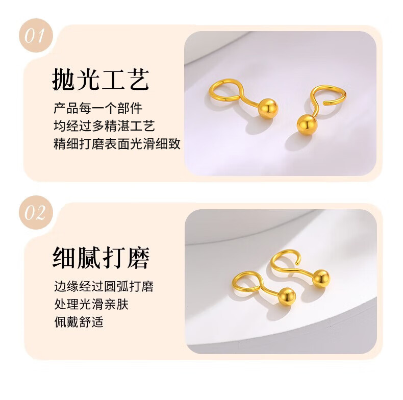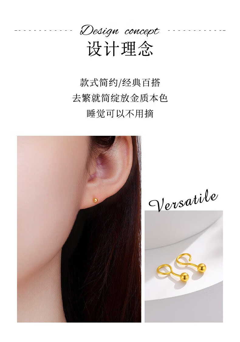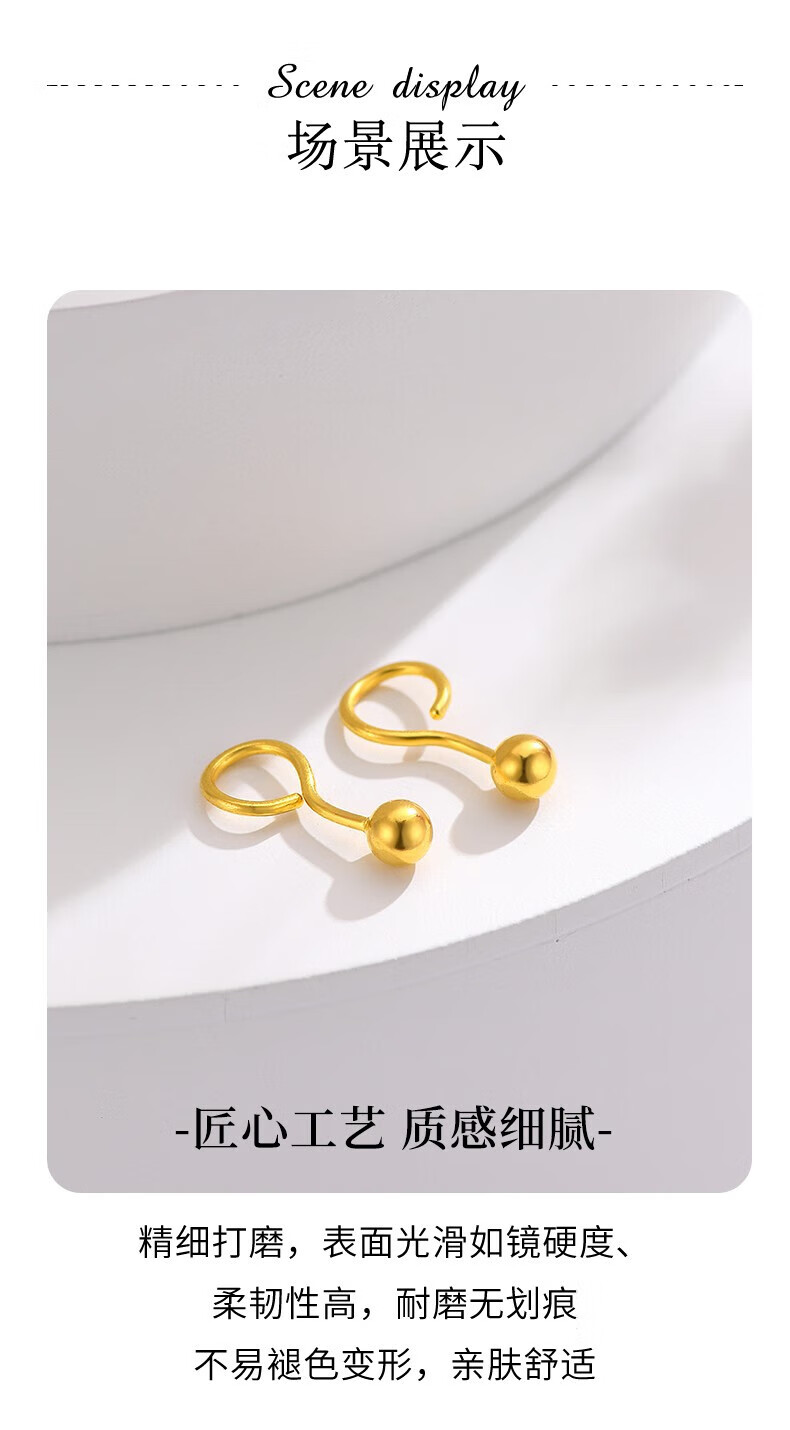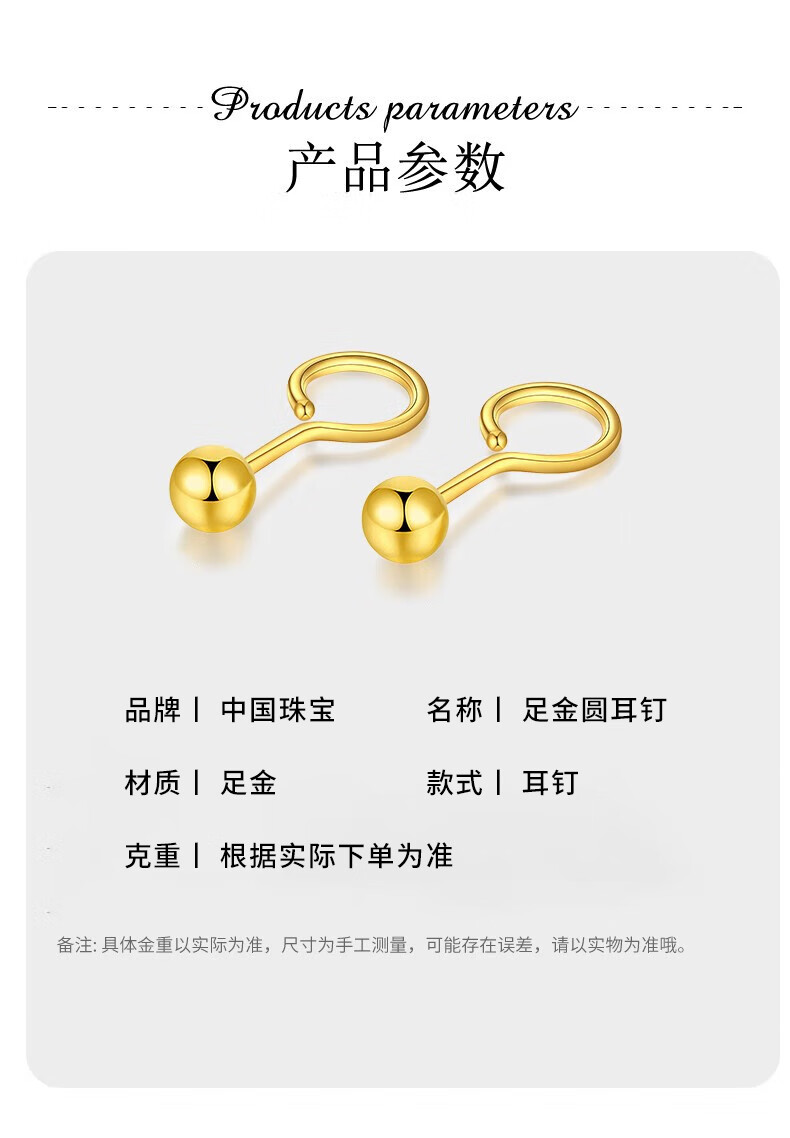 Chinese jewelry SINO GEM round bead gold earrings for women pure gold bubble earrings small gold bean earrings Chinese Valentine's Day gift for girlfriend and wife Pure gold round bead earrings + brand gift box Jingcangfa One pair of pure gold earrings, gold weight is about 0.3g