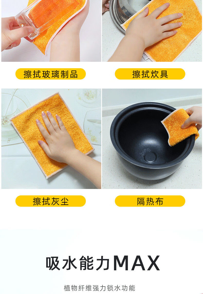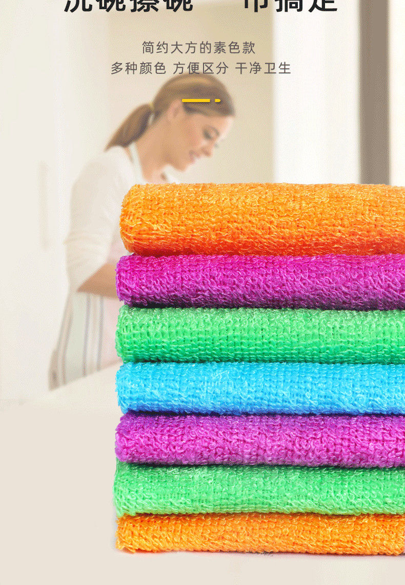 Baishengniu bamboo fiber dishwashing rags wholesale oil-absorbing rags to remove oil and non-stick oil double-layer thickened dish towels Bamboo fiber dishwashing towels five-pack color mix and match 18x23cm double-layer thickened oil-soaked package return