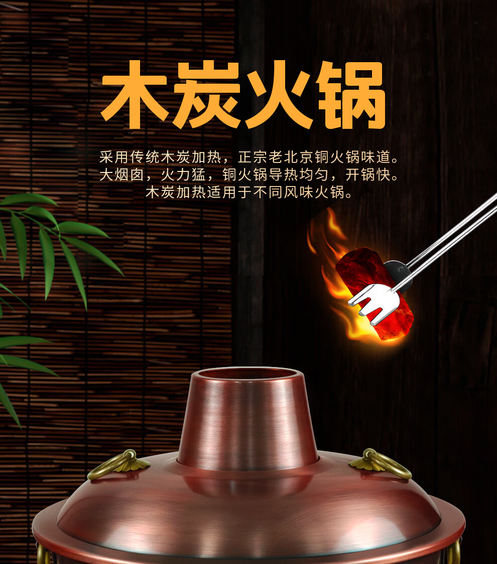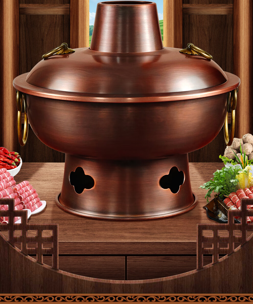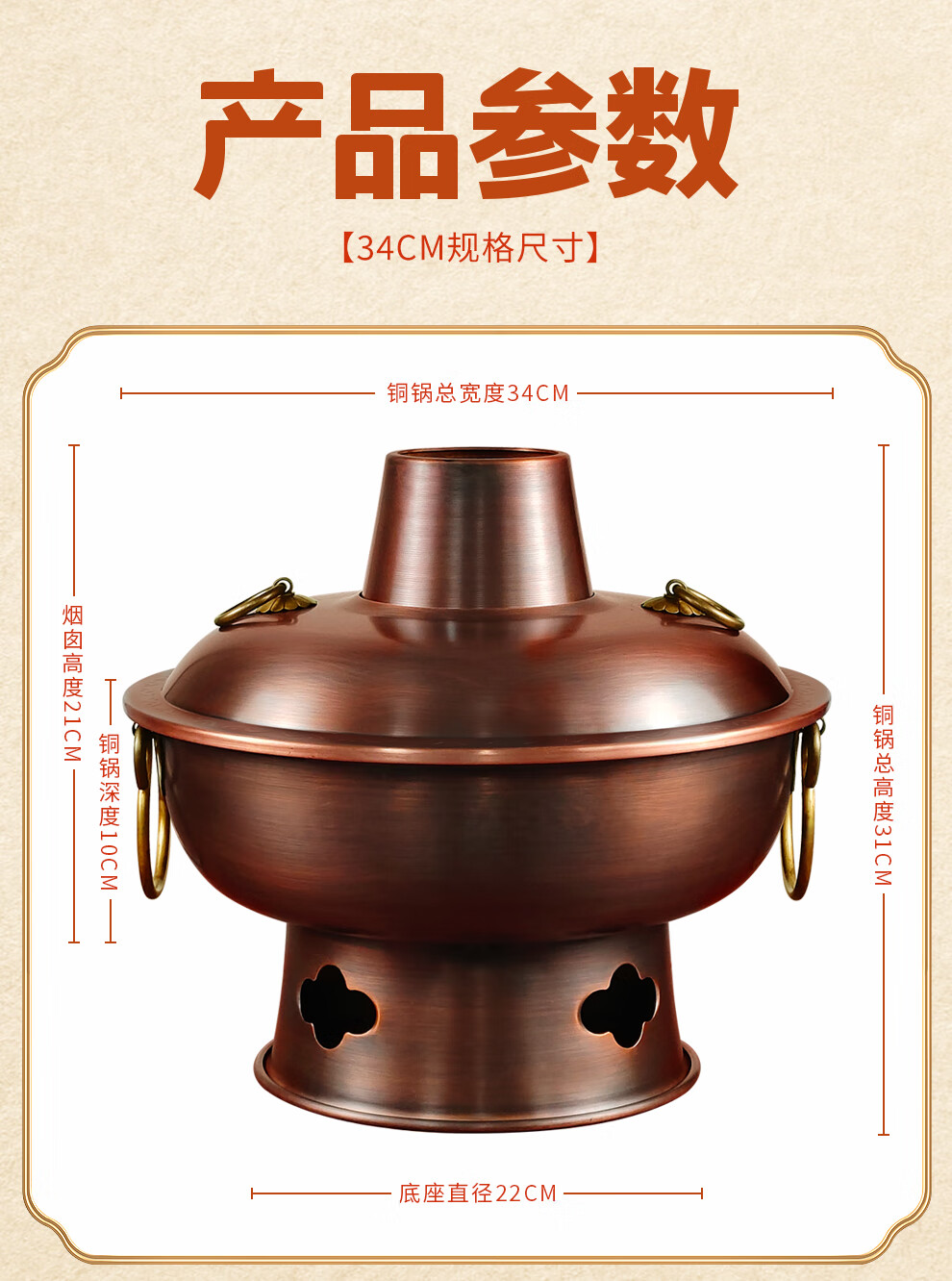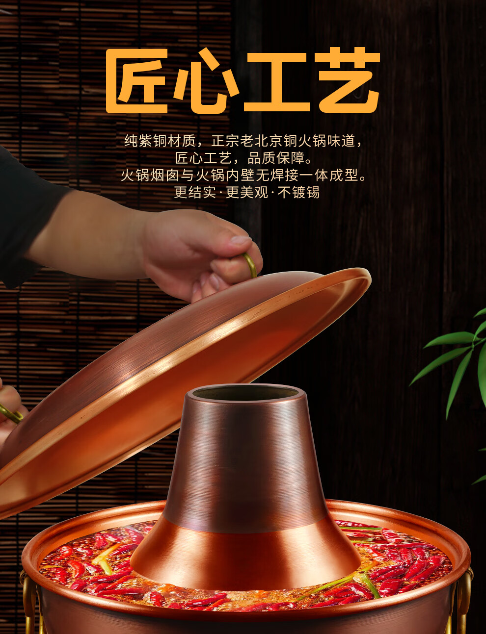 Guo Yiyuan pure copper thickened retro charcoal one piece copper hot pot handmade red copper old Beijing mutton-shabu copper hot pot pot charcoal copper hot pot single flavor 8-10 people 36cm