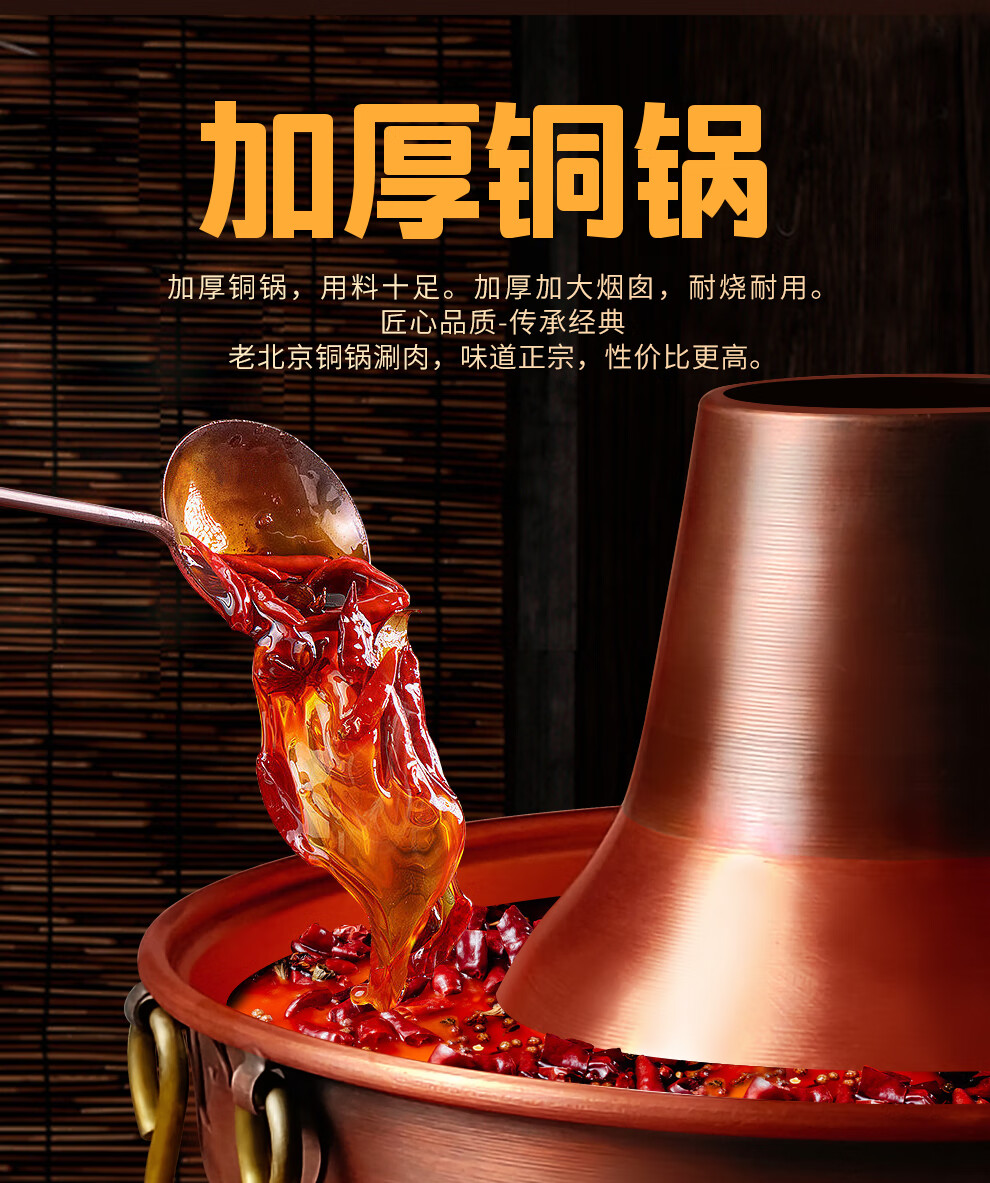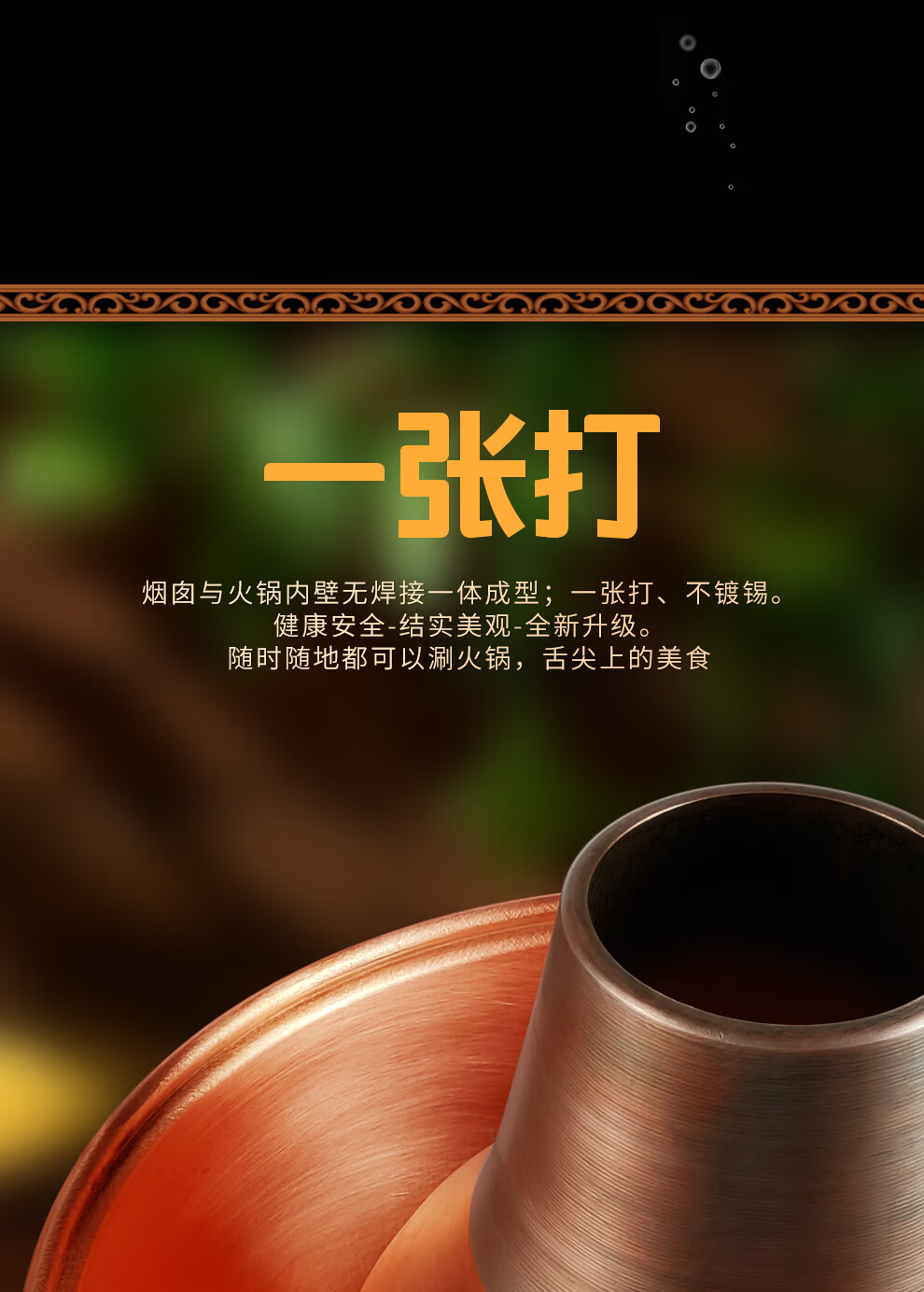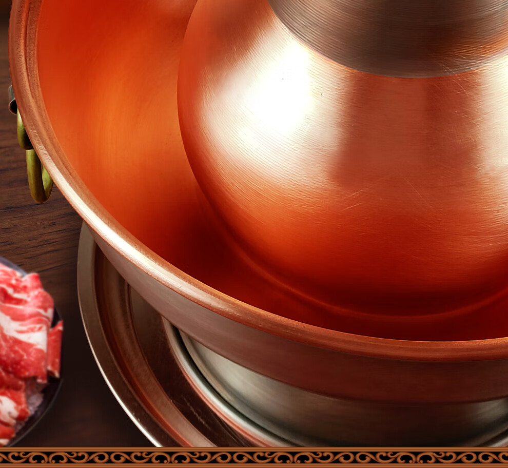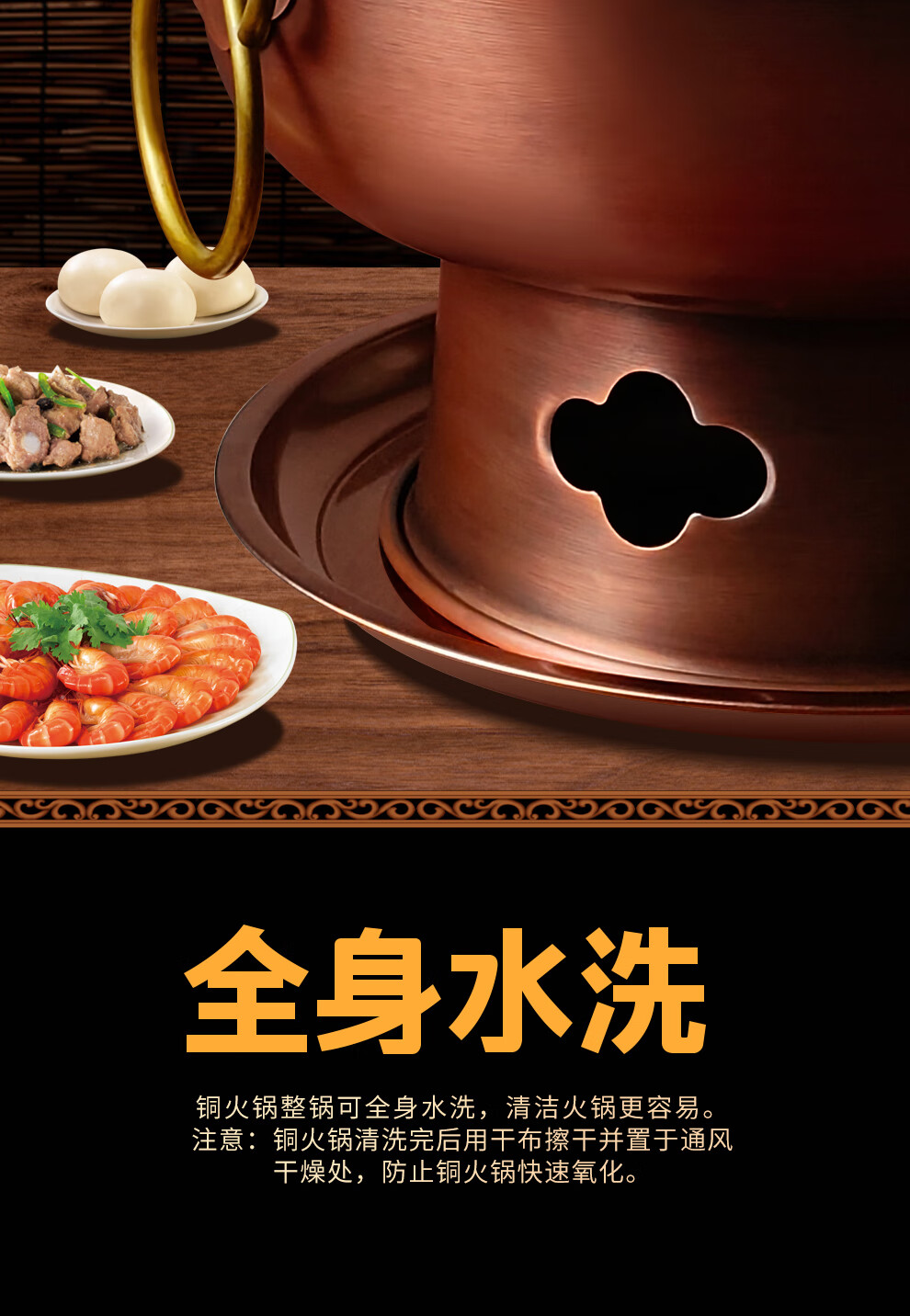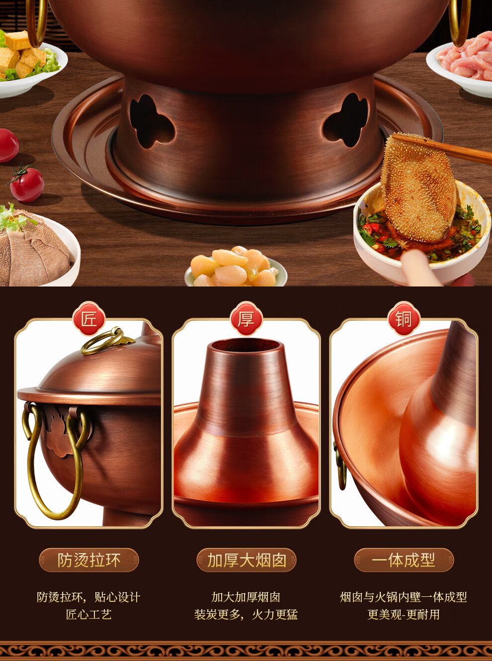 Guo Yiyuan pure copper thickened retro charcoal one piece copper hot pot handmade red copper old Beijing mutton-shabu copper hot pot pot charcoal copper hot pot single flavor 8-10 people 36cm
