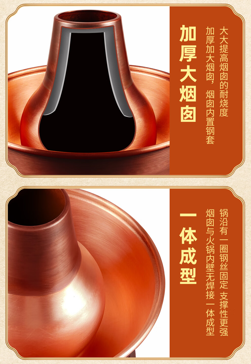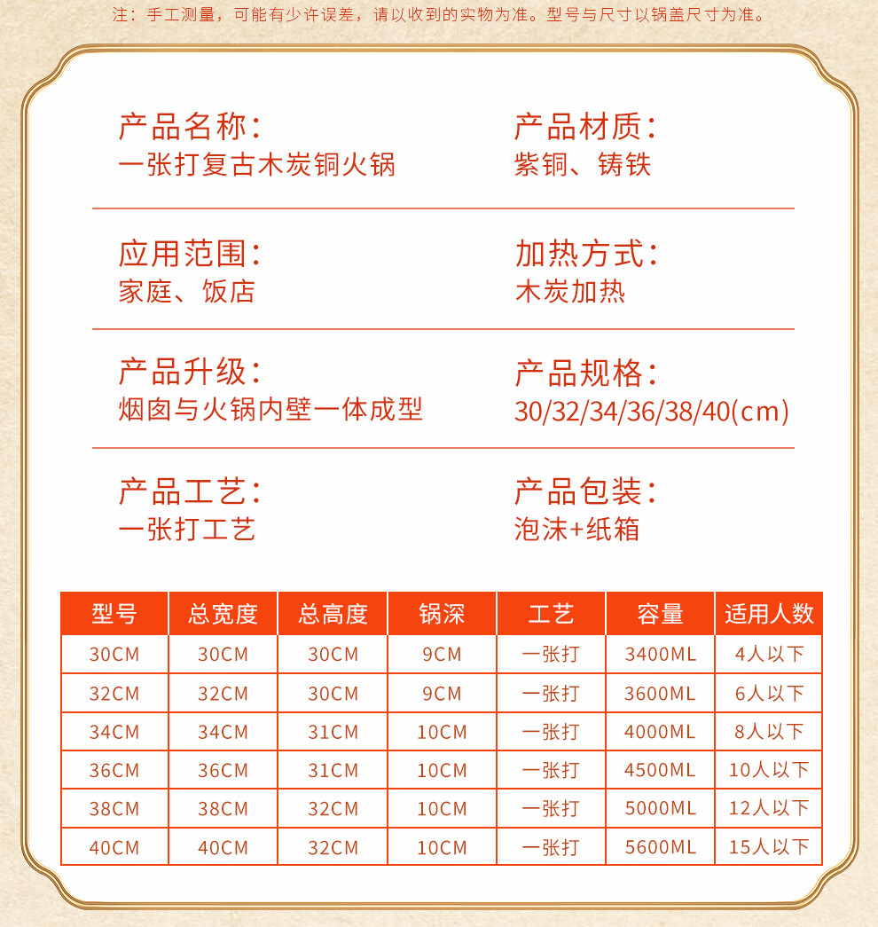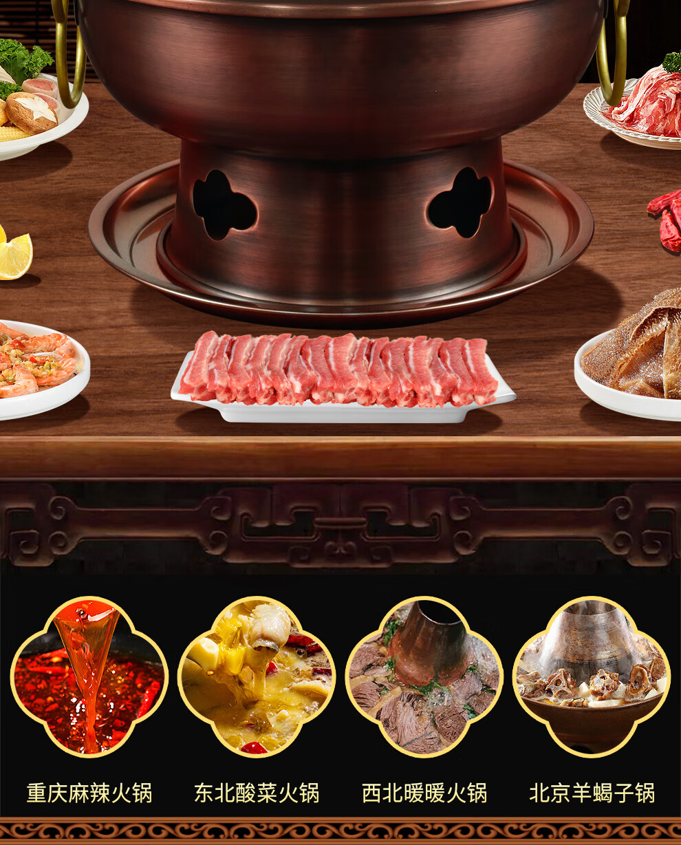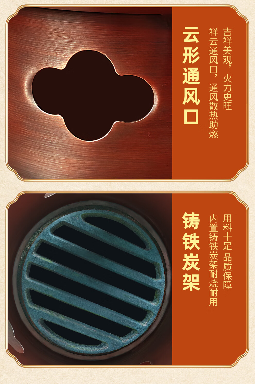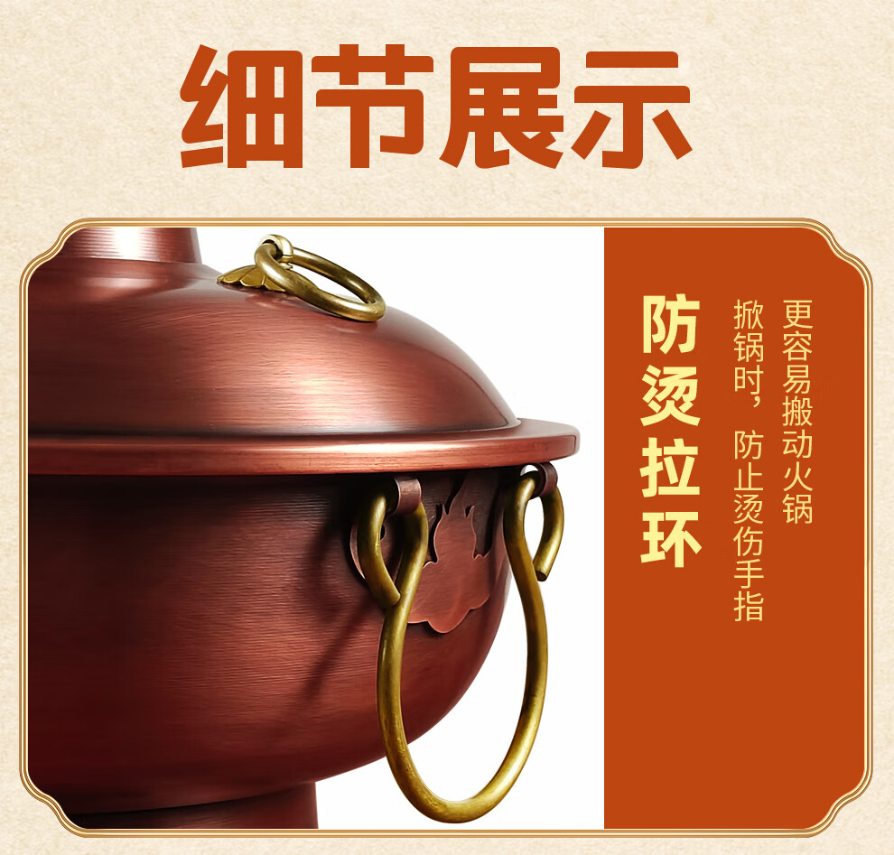 Guo Yiyuan pure copper thickened retro charcoal one piece copper hot pot handmade red copper old Beijing mutton-shabu copper hot pot pot charcoal copper hot pot single flavor 8-10 people 36cm