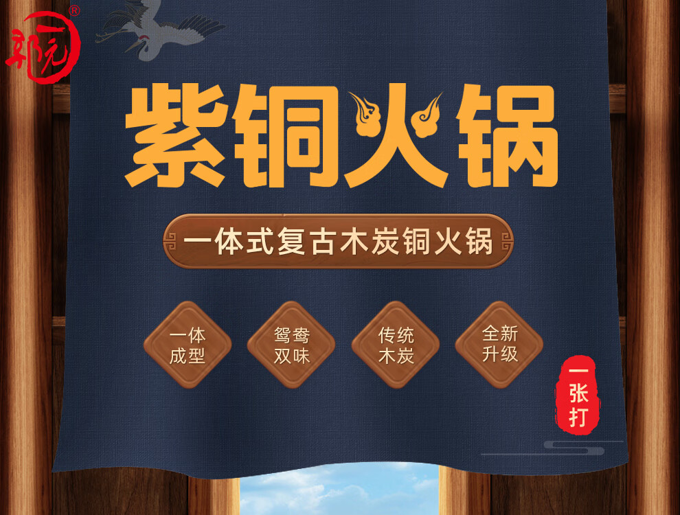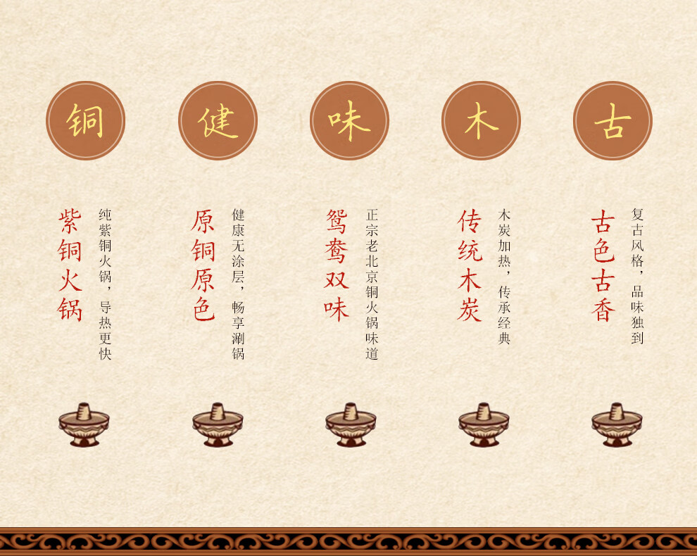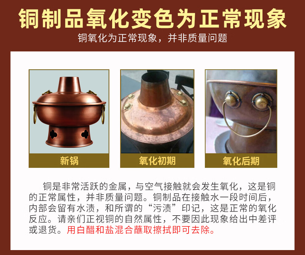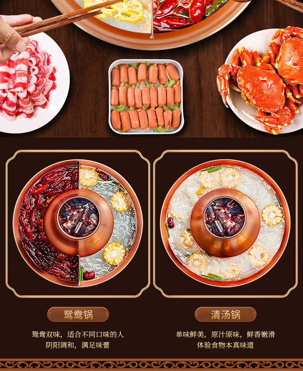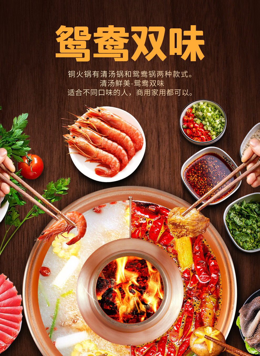 Guo Yiyuan pure copper thickened retro charcoal one piece copper hot pot handmade red copper old Beijing mutton-shabu copper hot pot pot charcoal copper hot pot single flavor 8-10 people 36cm