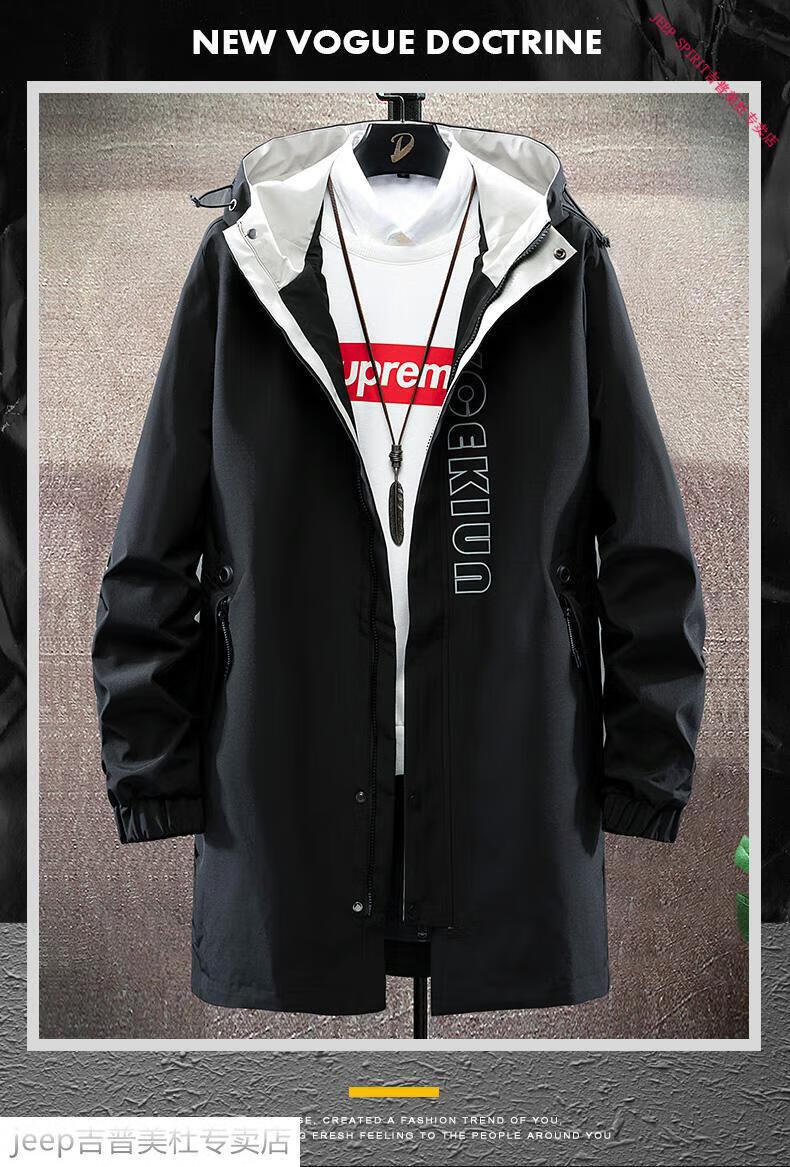 JEEP SPIRIT 2025 Autumn and Winter Large Size Windbreaker Men's Medium Long Coat Loose Velvet Trendy Fat Casual Gray Coat Model 2169 Light Gray 8XL (250-270Jin Jin is equal to 0.5 kg)