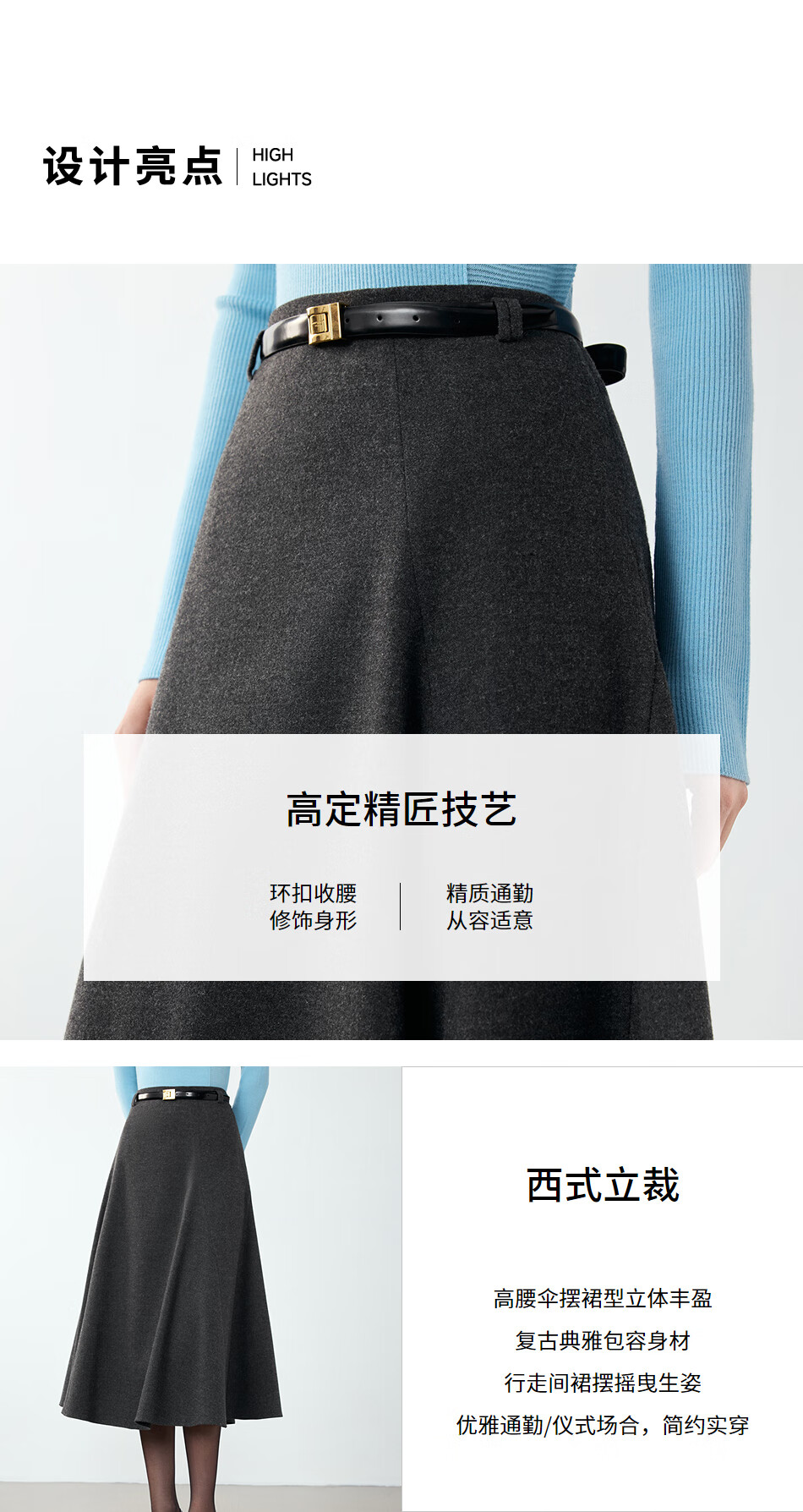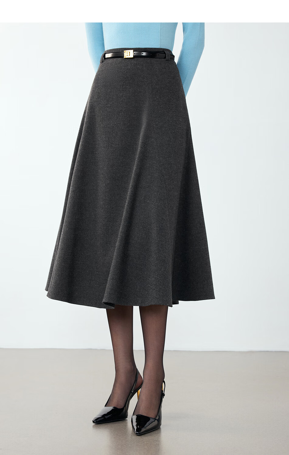Langzi winter new style retro temperament French elegant wool umbrella skirt mid-length skirt for women dark gray L