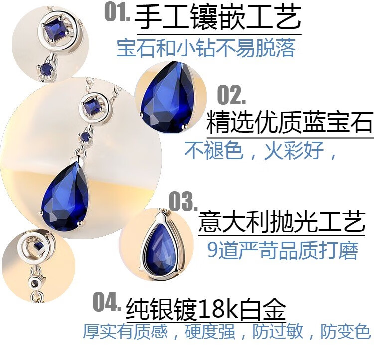 Six-maru sapphire pendant for women, colored gemstone, tanzanite necklace, sterling silver plated with 18k gold, fashionable color precious gift