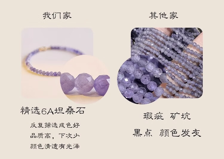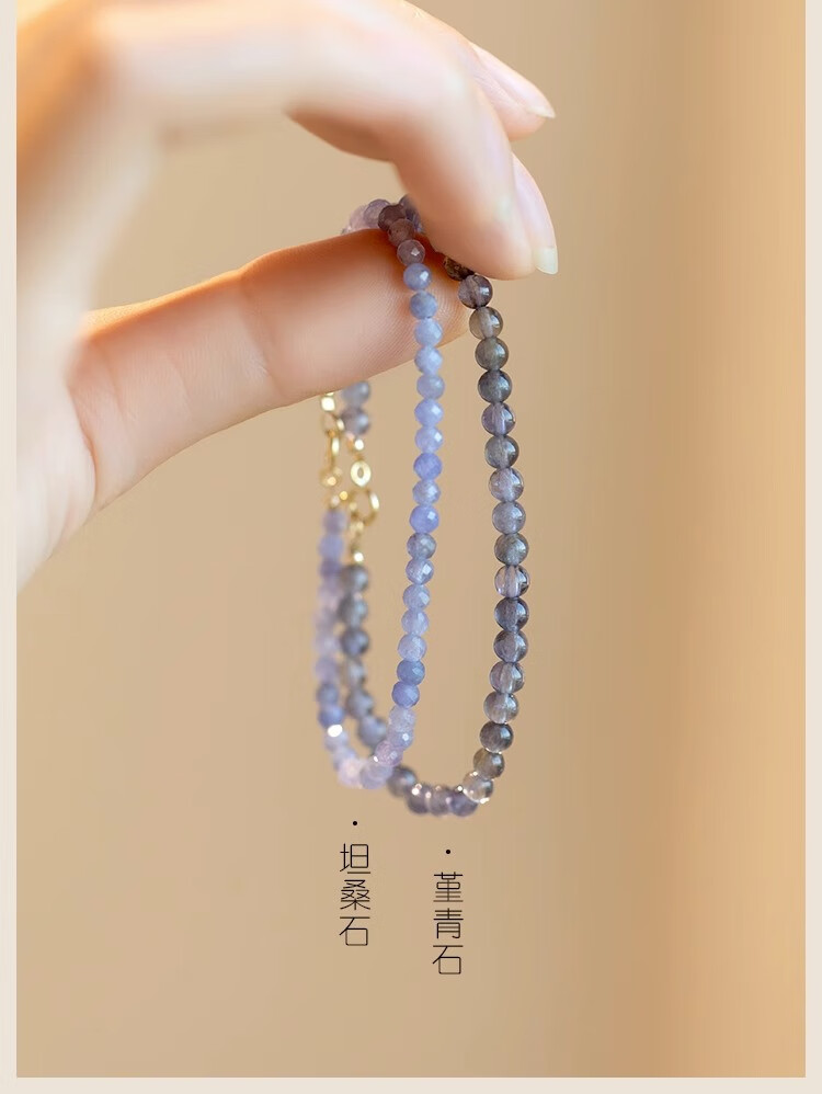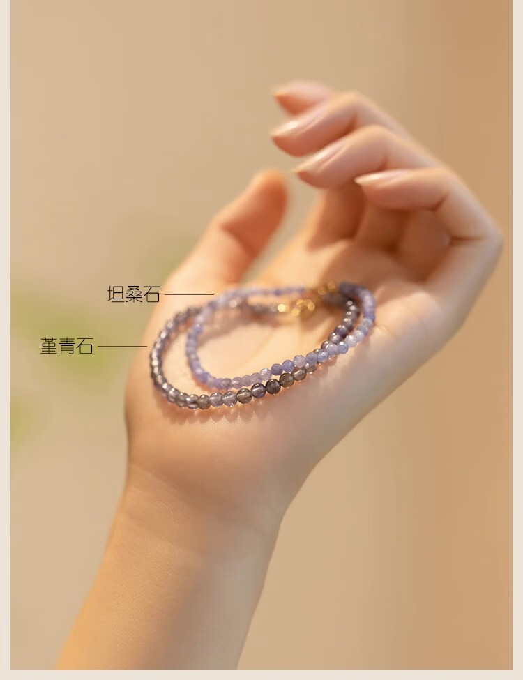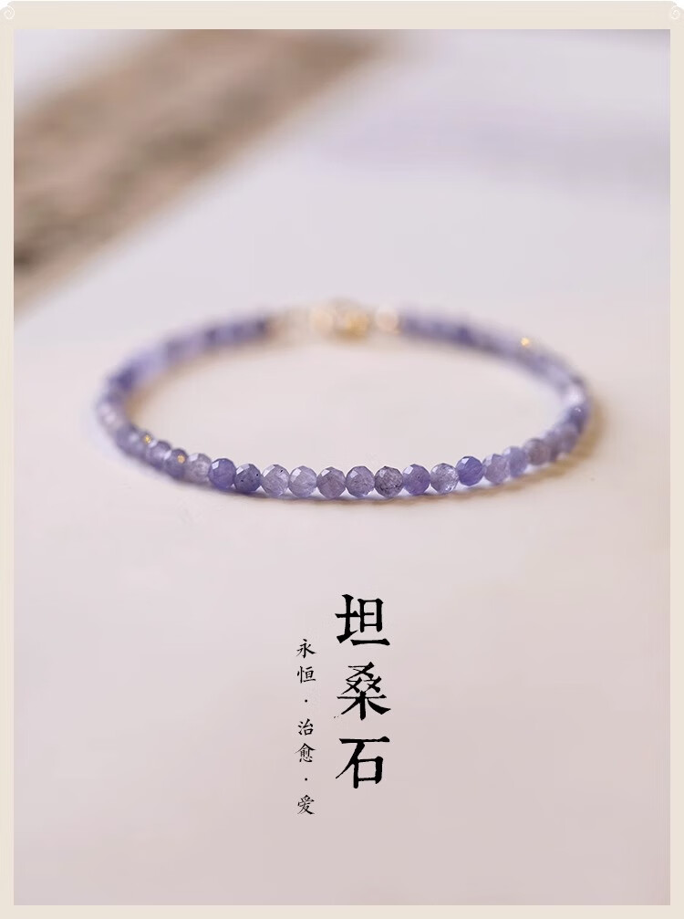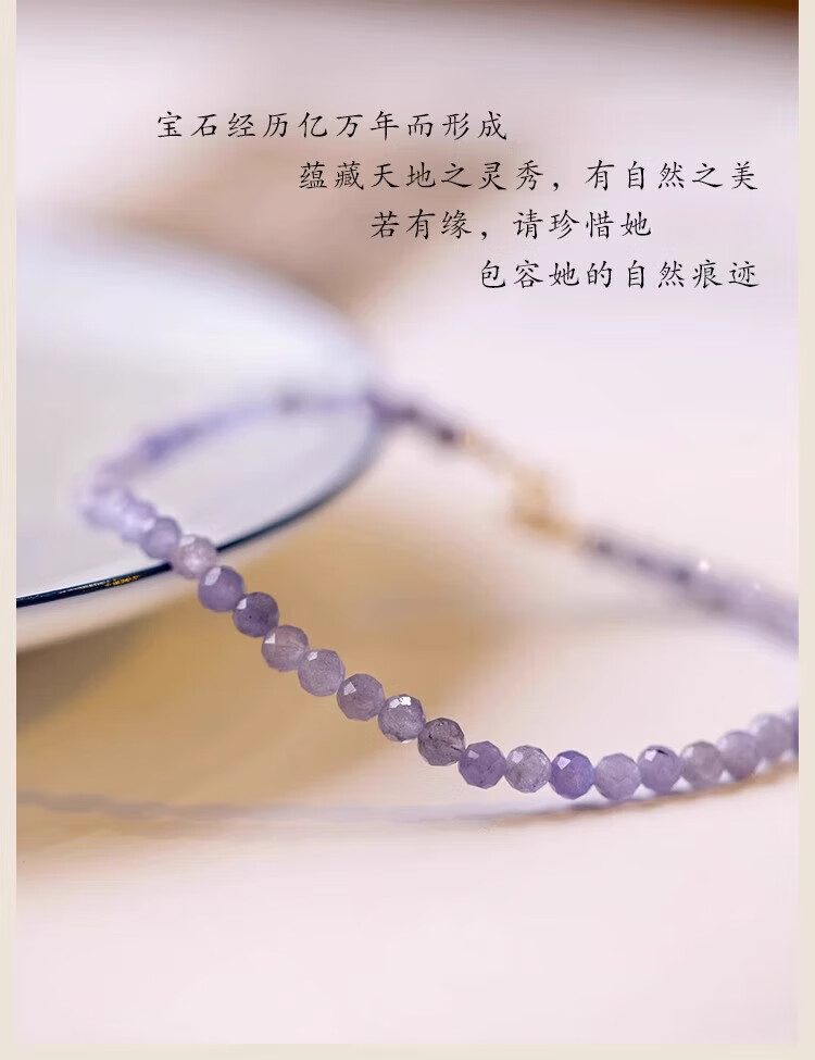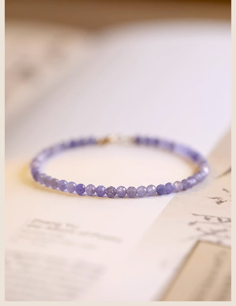 Six Pill Tanzanite Bracelet Beads for Women Natural Light Purple Crystal to Bring Fortune and Good Luck Temperament Simple Plain Circle Very Thin 14cm