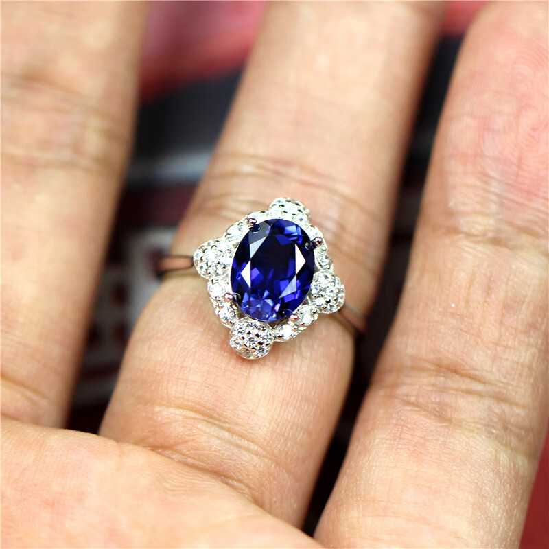 DL 1998 Tanzanite sapphire new blue ring silver women's single ring blue colored treasure accessories Japanese and Korean lovers silver live mouth (main stone 7X9mm) B0