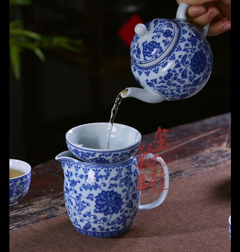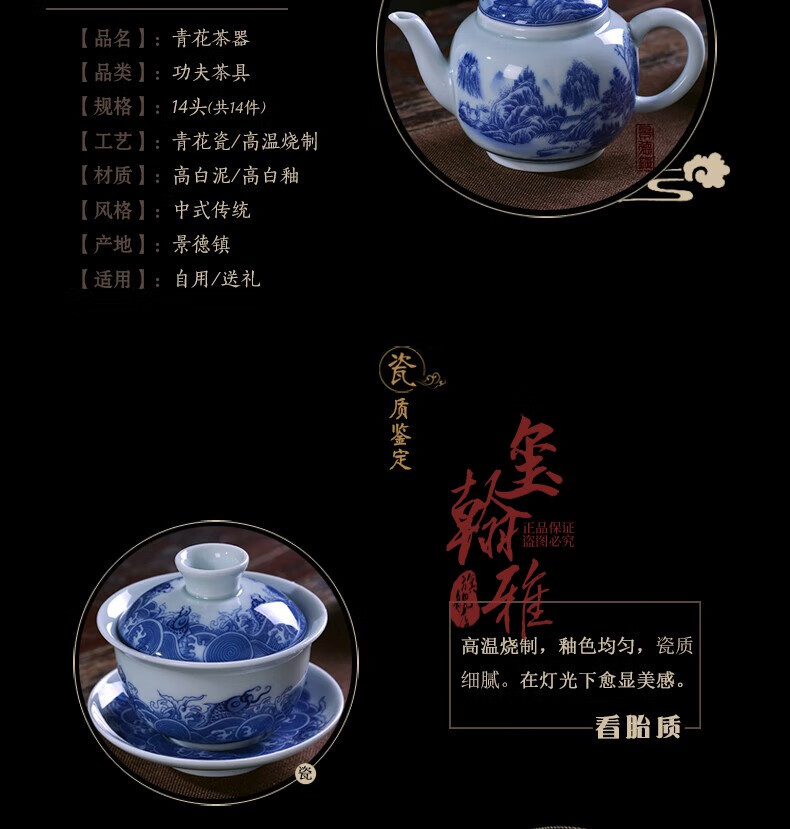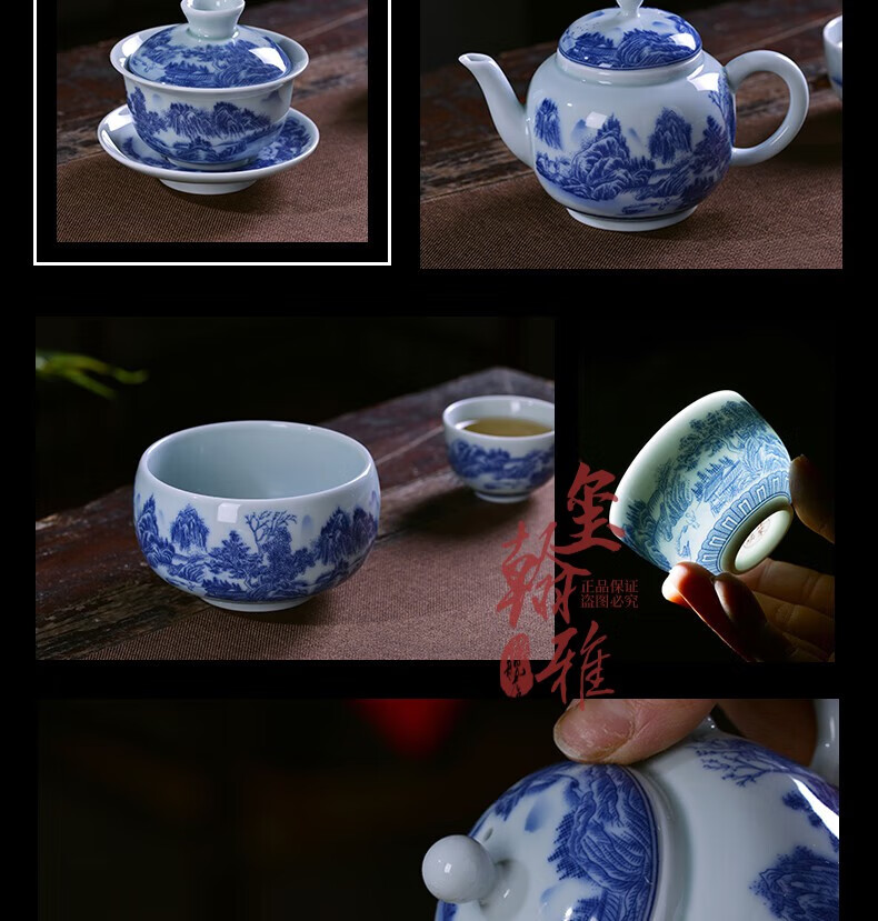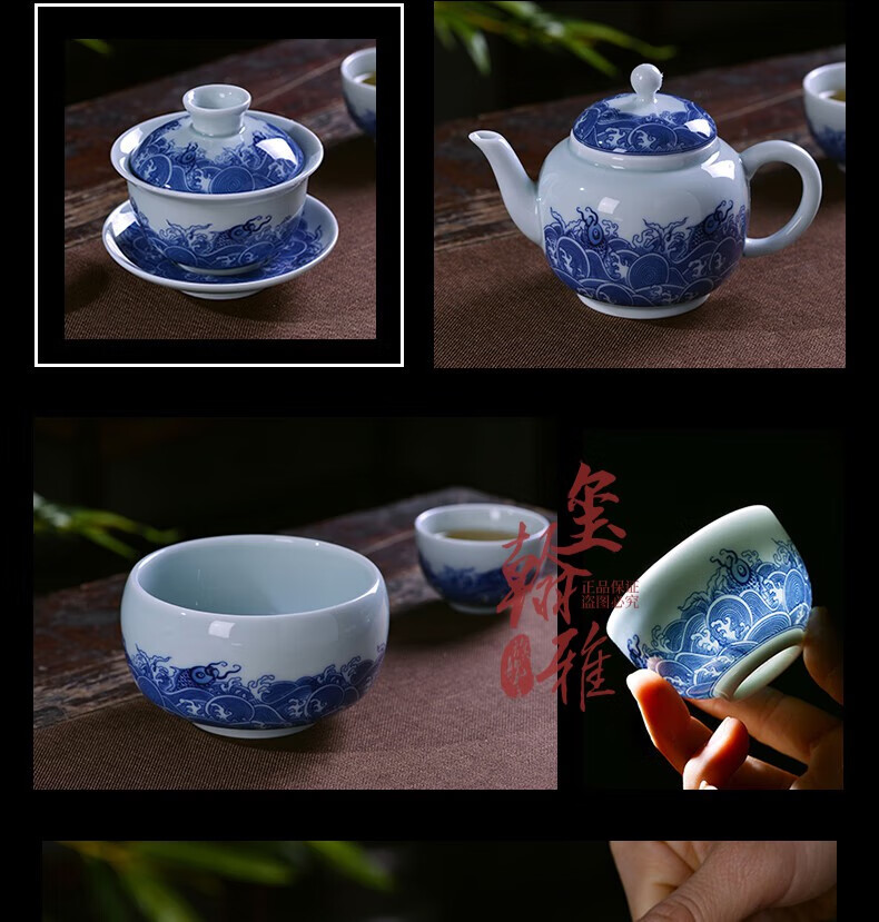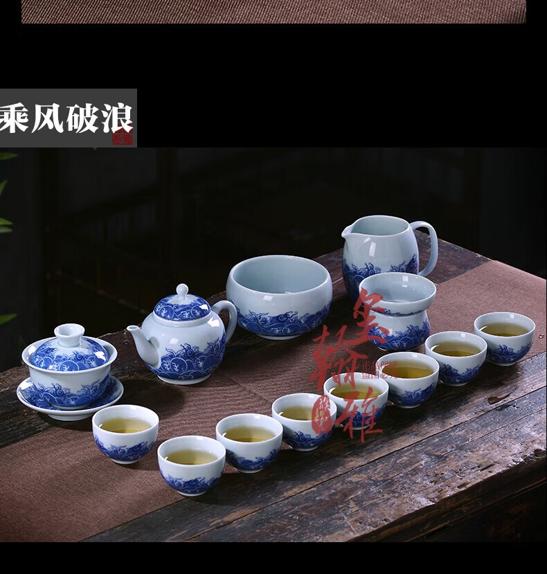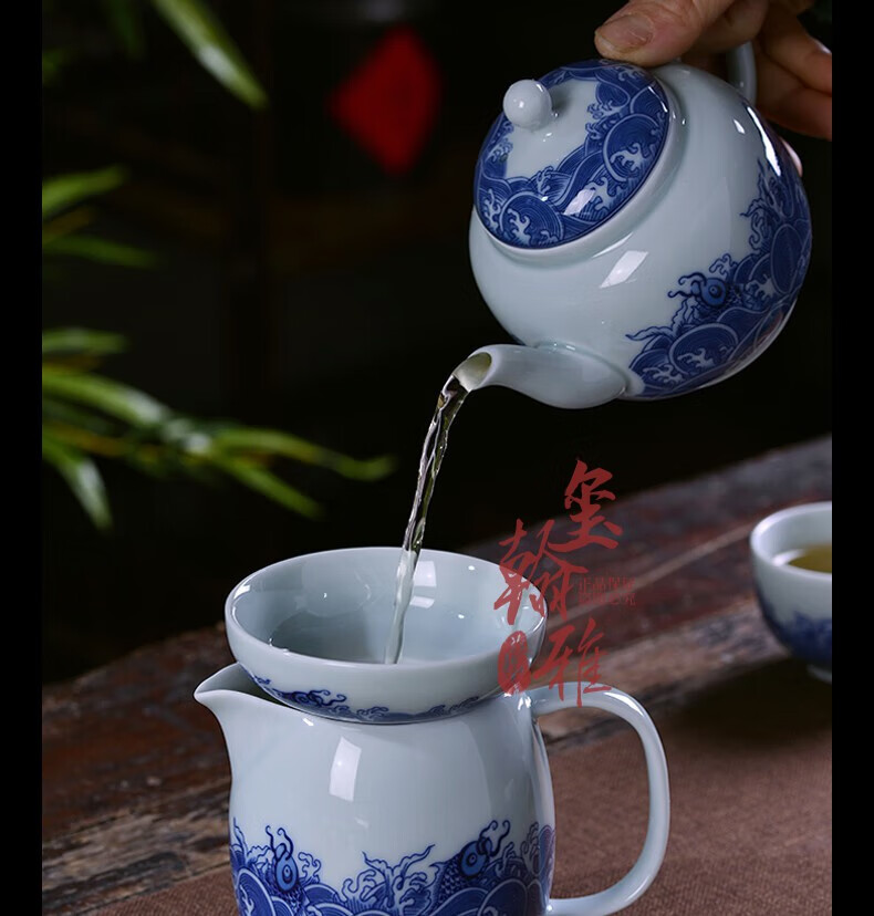 ROYHOYE Jingdezhen blue and white porcelain tea set home simple Chinese high-end ceramic office kung fu teacup teapot complete set ride the wind and waves