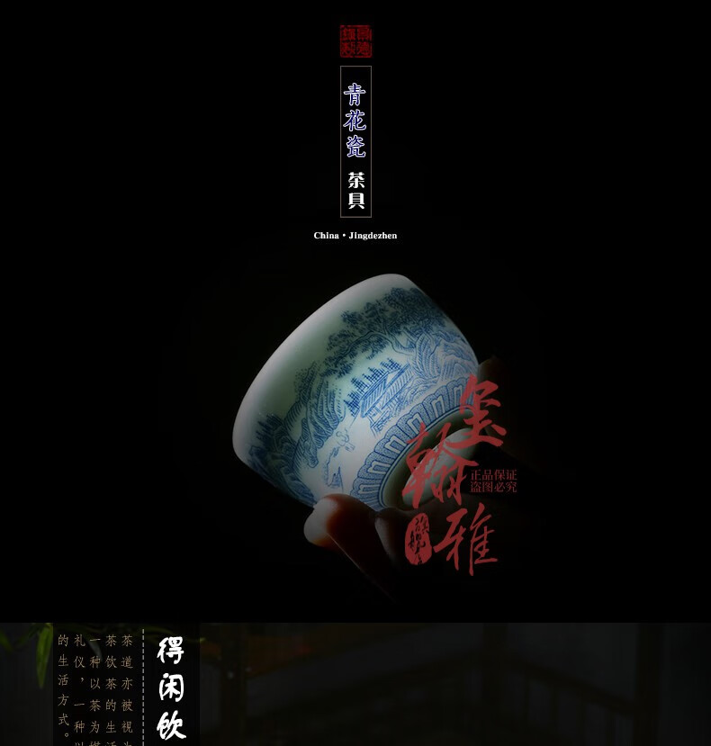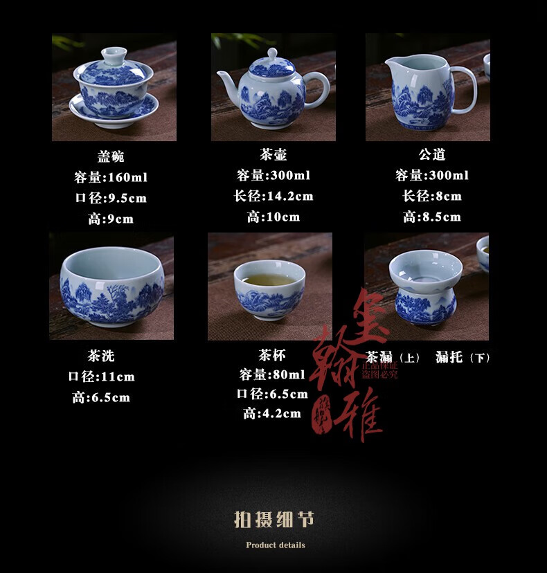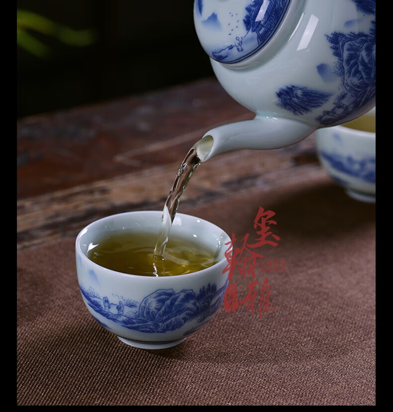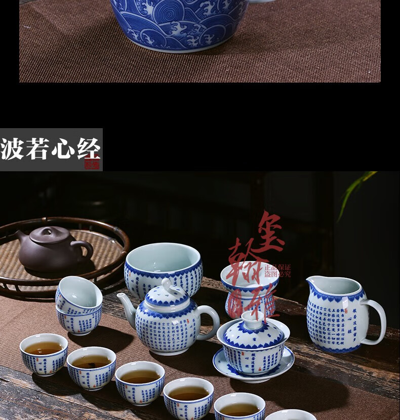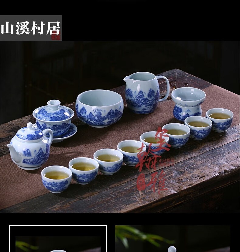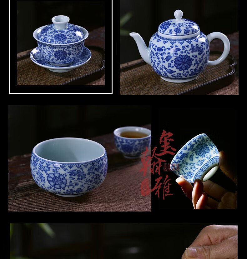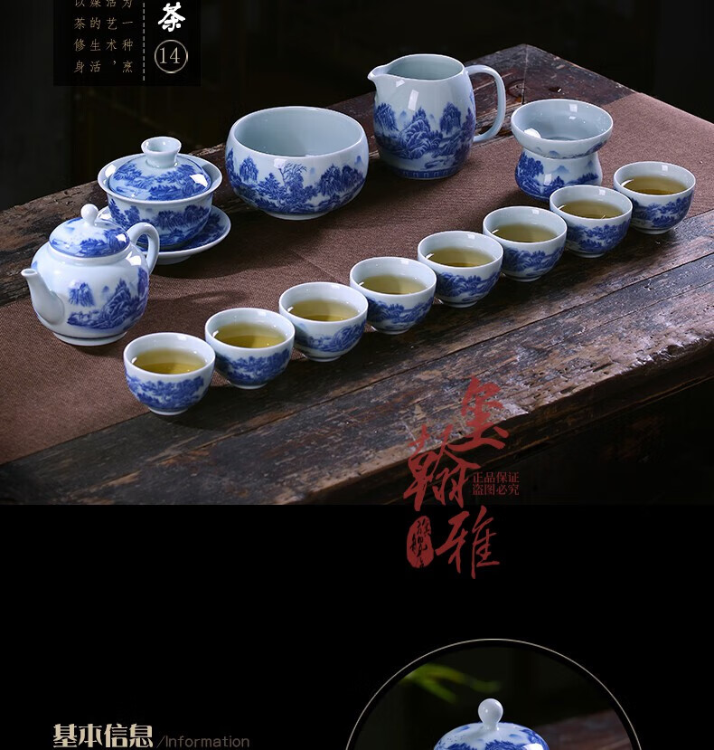 ROYHOYE Jingdezhen blue and white porcelain tea set home simple Chinese high-end ceramic office kung fu teacup teapot complete set ride the wind and waves