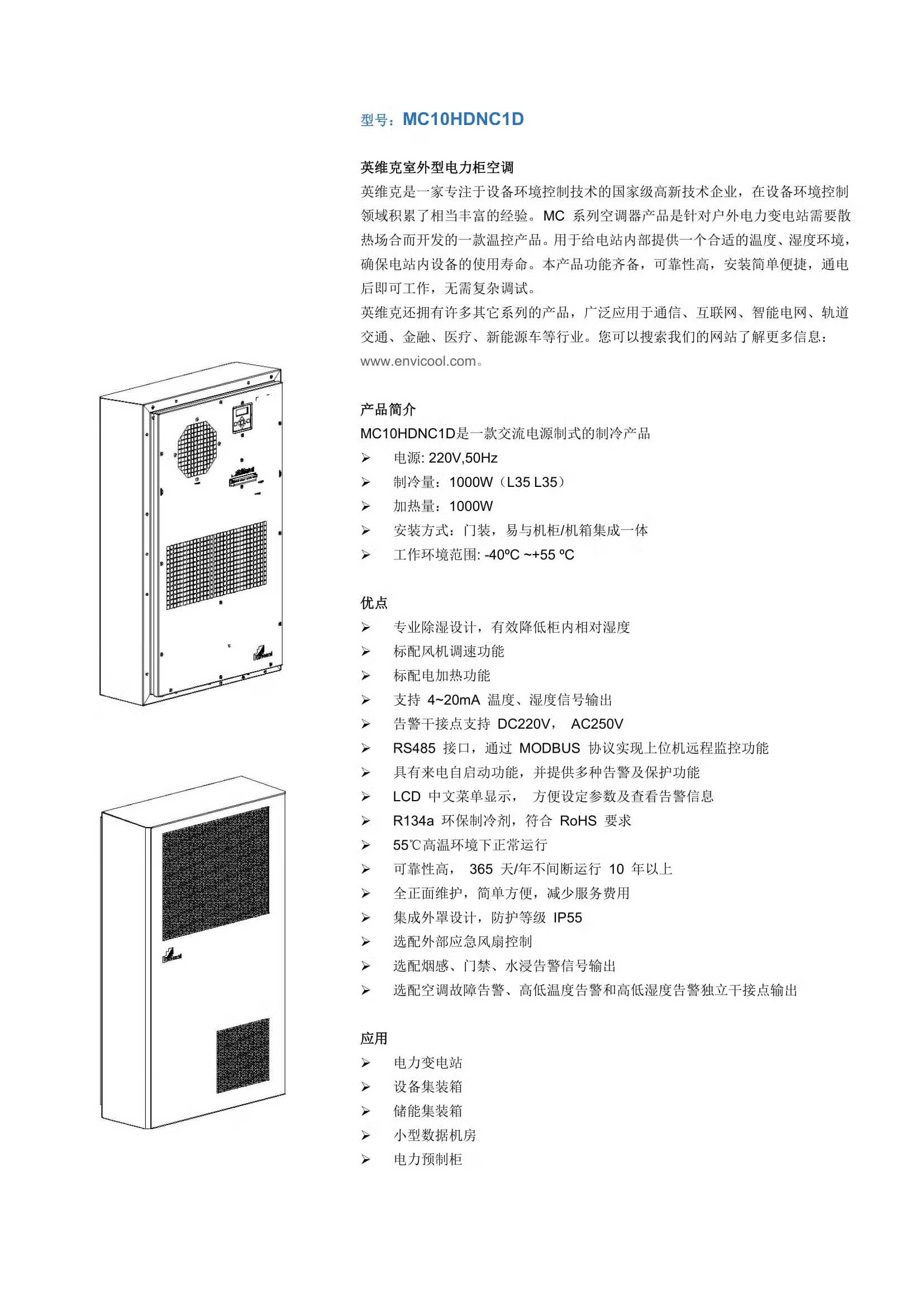 Invic MC10HDNC1D power outdoor communication cabinet air conditioning outdoor base station constant temperature cooling heating dehumidification MC75HDNC1A