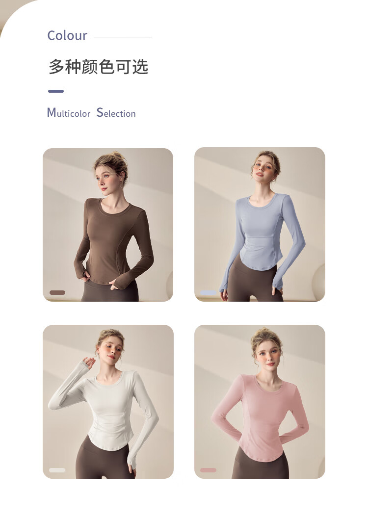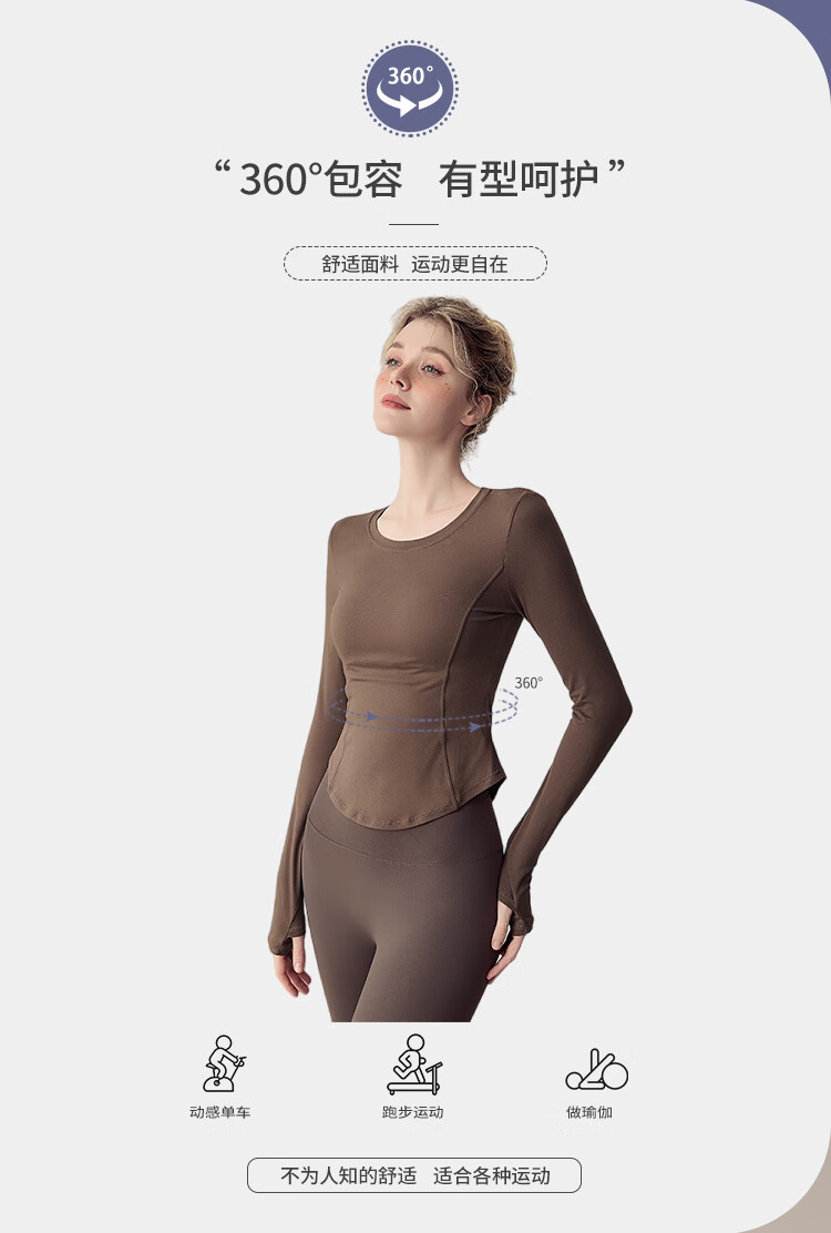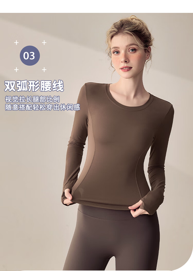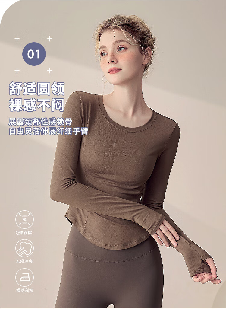 LULU CENTURY Autumn and Winter round neck running sports long-sleeved T-shirt women's slim slim yoga clothing top Pilates training fitness clothing chestnut brown L