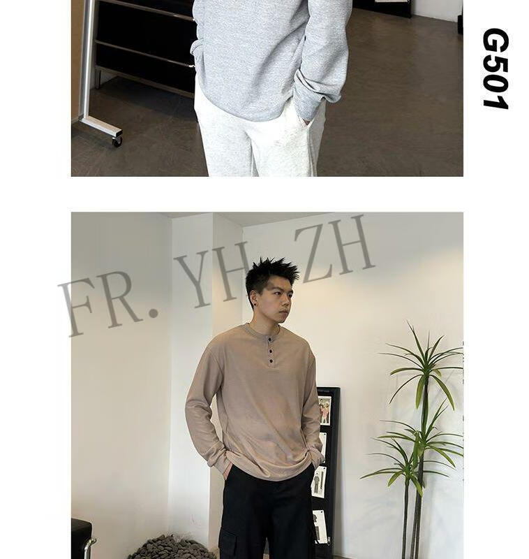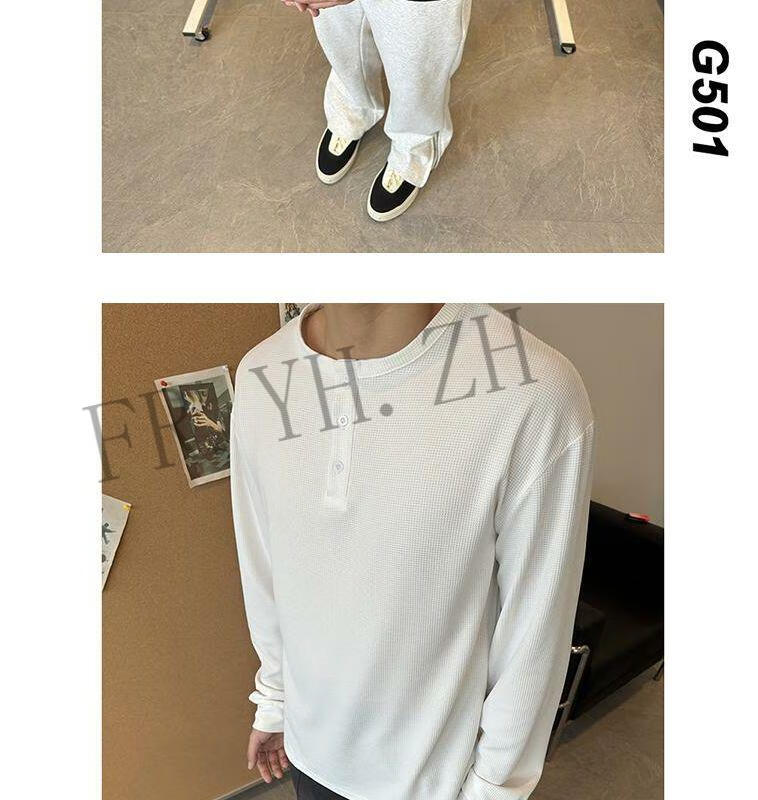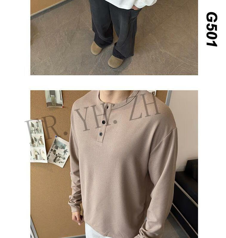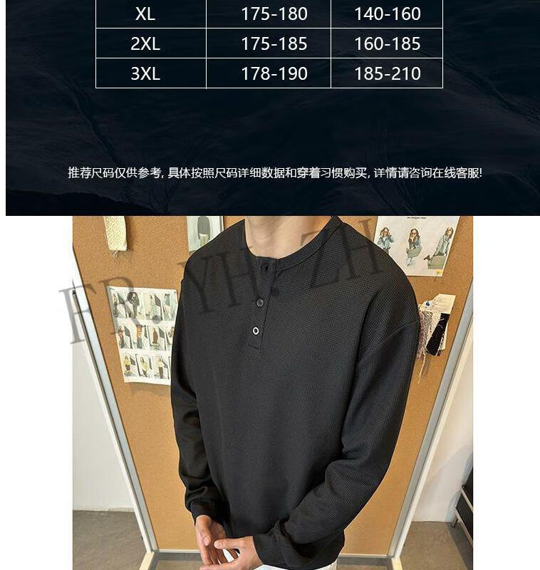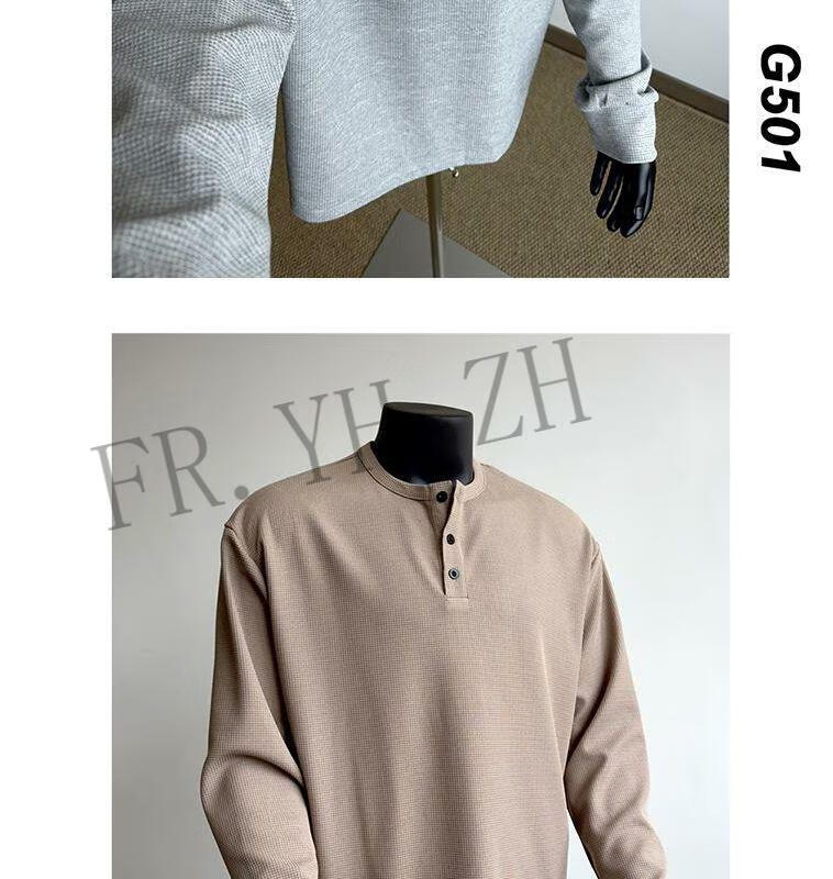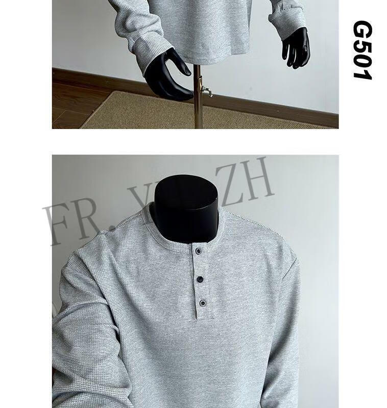 FR.YH.ZH2024 Autumn versatile Henry collar long-sleeved T-shirt men's casual sports waffle Polo shirt T-shirt top black XL