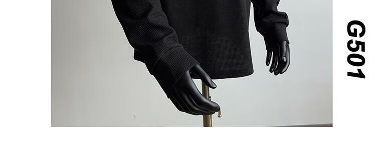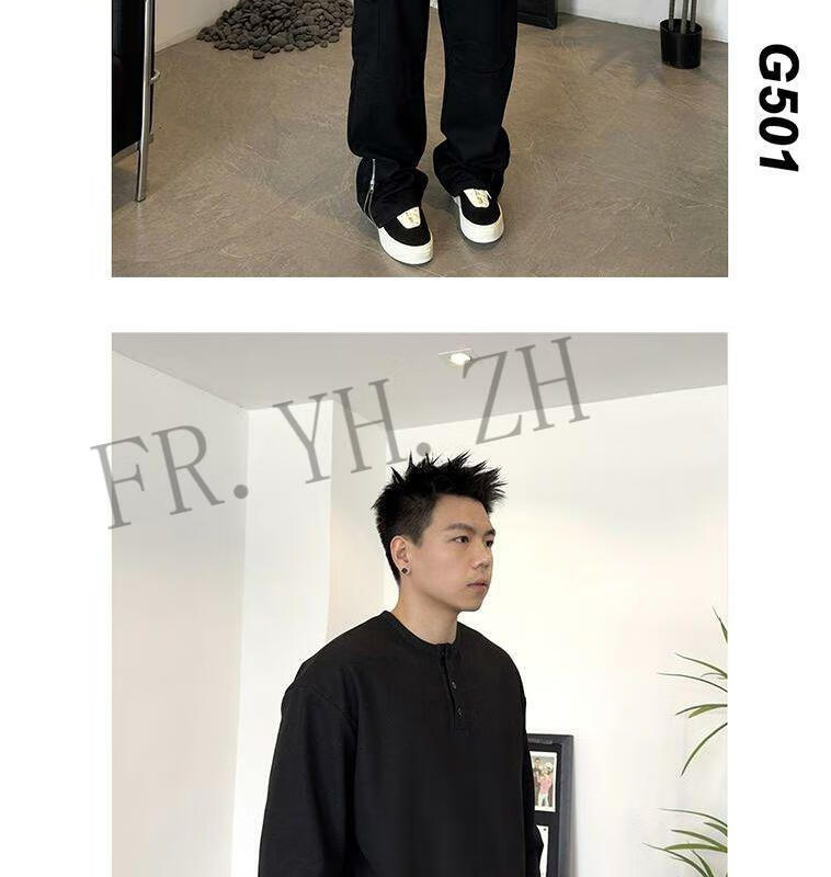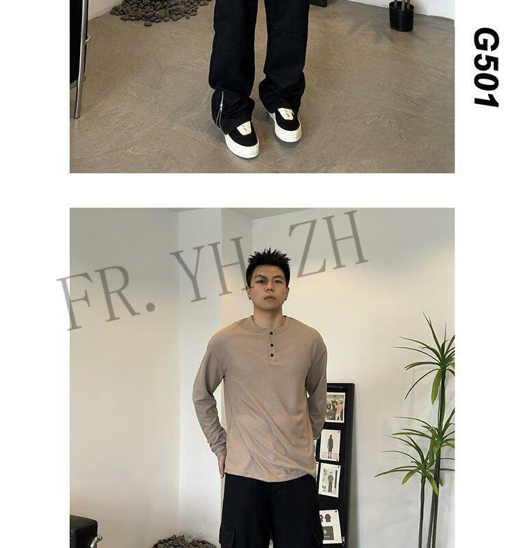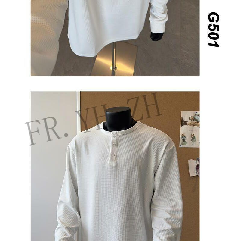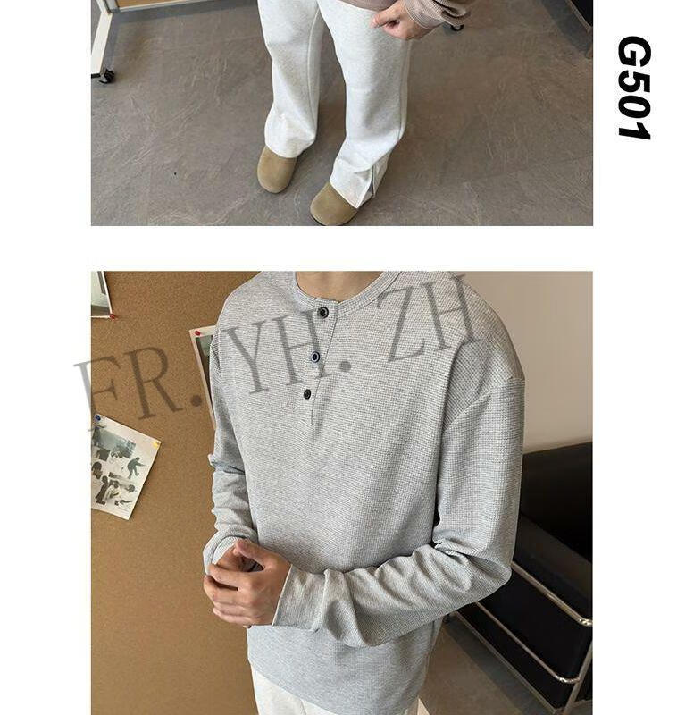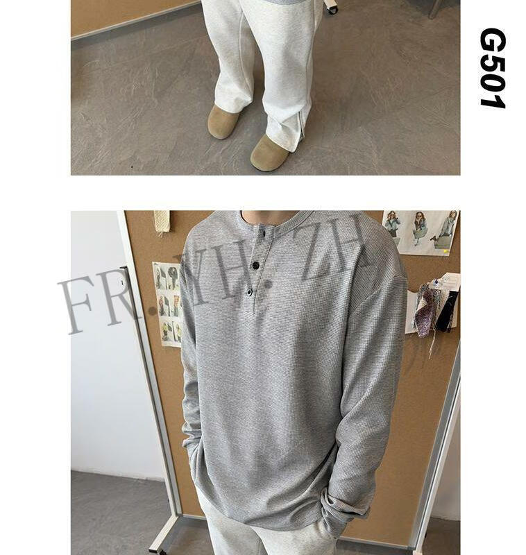 FR.YH.ZH2024 Autumn versatile Henry collar long-sleeved T-shirt men's casual sports waffle Polo shirt T-shirt top black XL