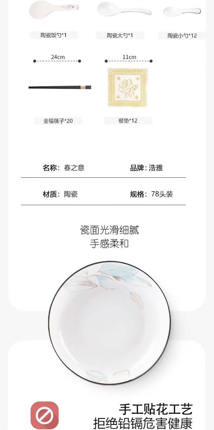 Haoya 78-head dishware set Chinese-style Jingdezhen tableware set gift box ceramic housewarming wedding gift the meaning of spring The meaning of spring 78-head