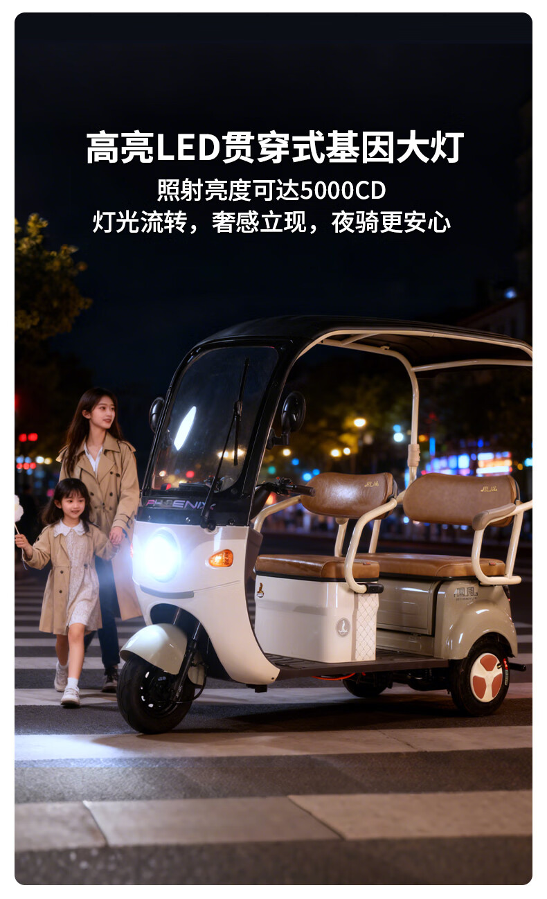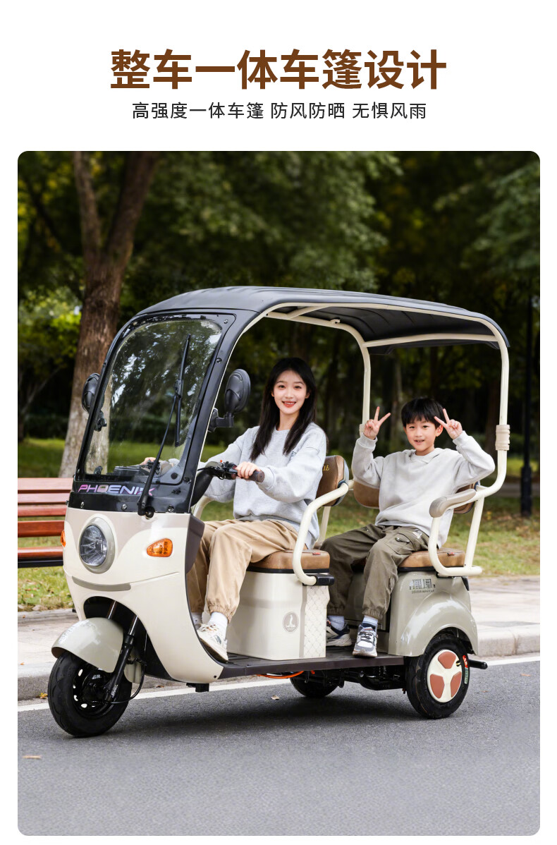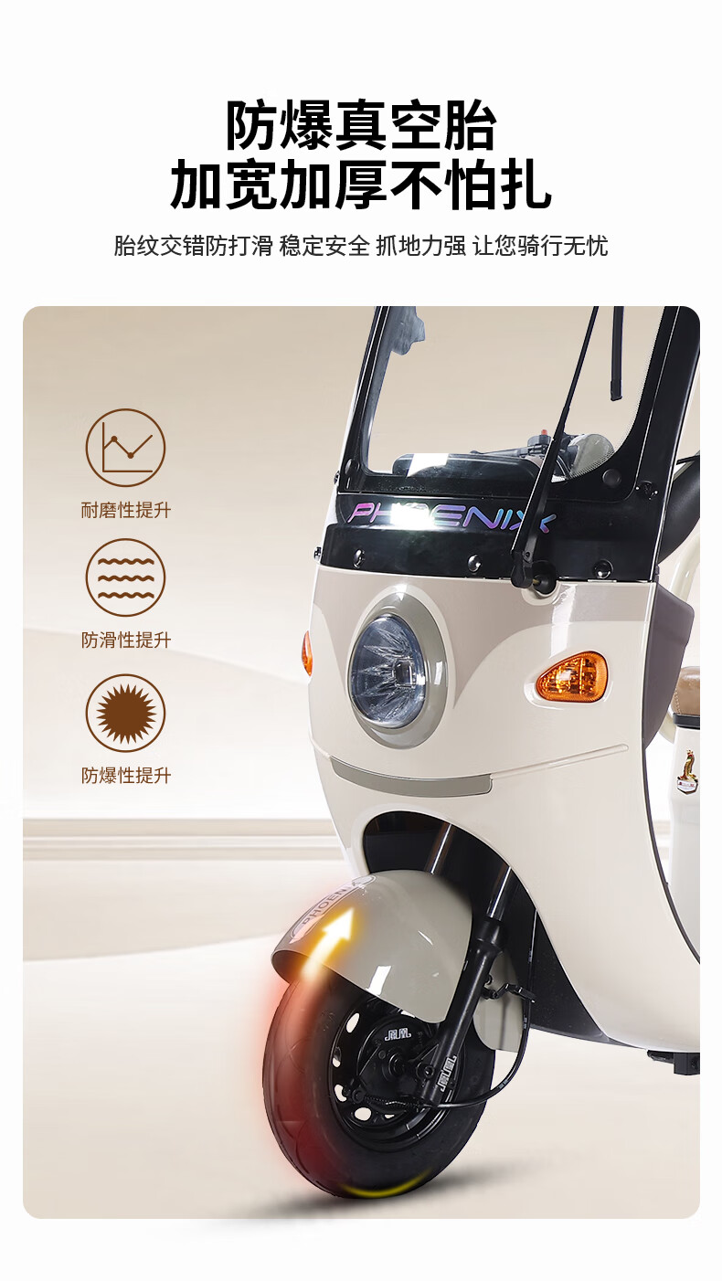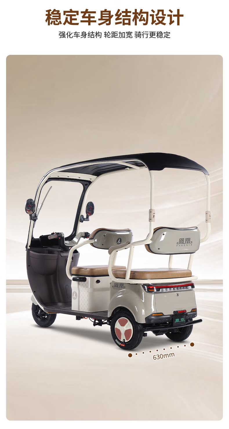 Phoenix Fengya electric tricycle household electric motorcycle adult electric vehicle small tricycle electric vehicle with shed Chaowei battery 600W+60V24A black gold + battery life about 50 kilometers