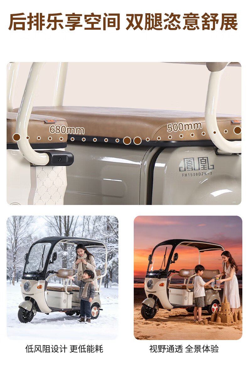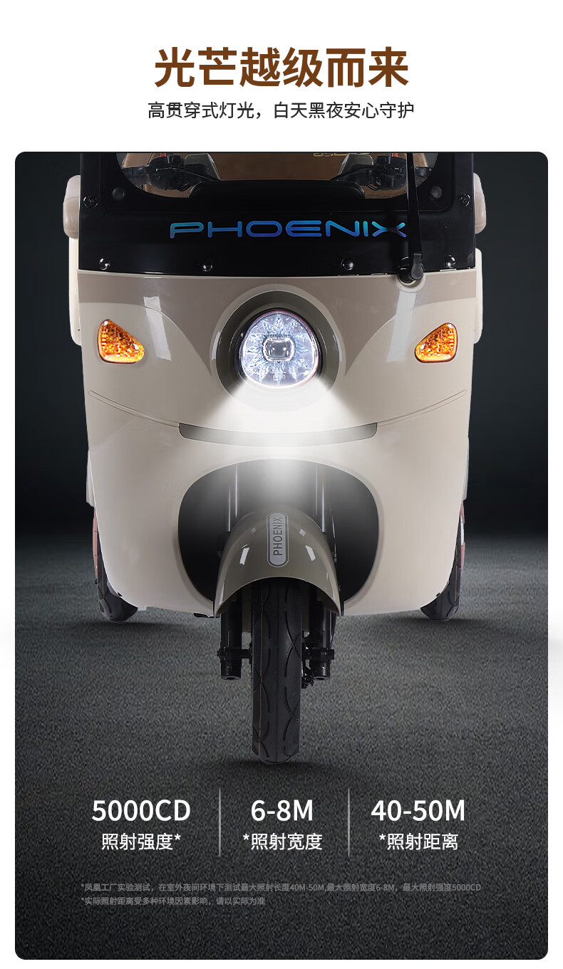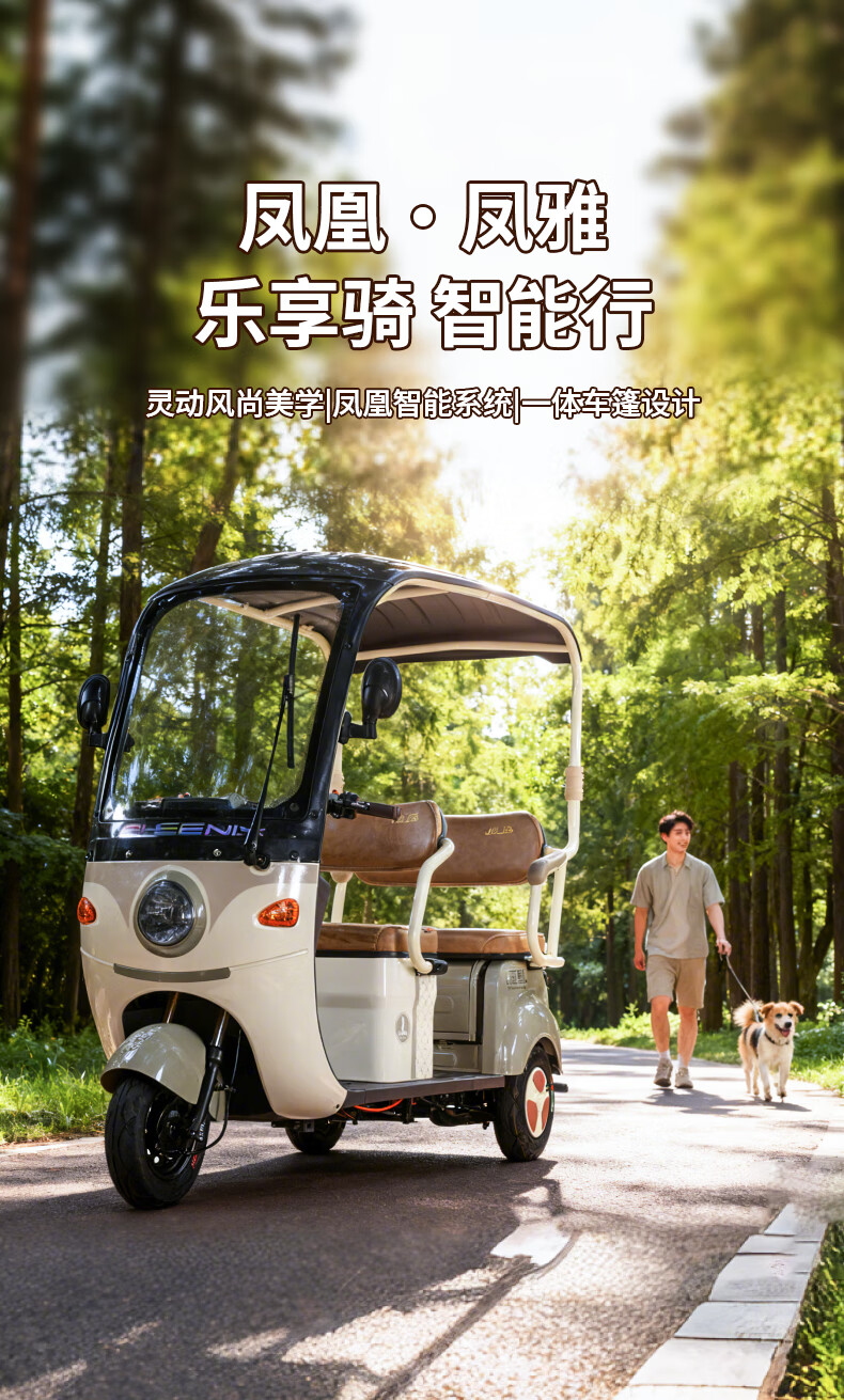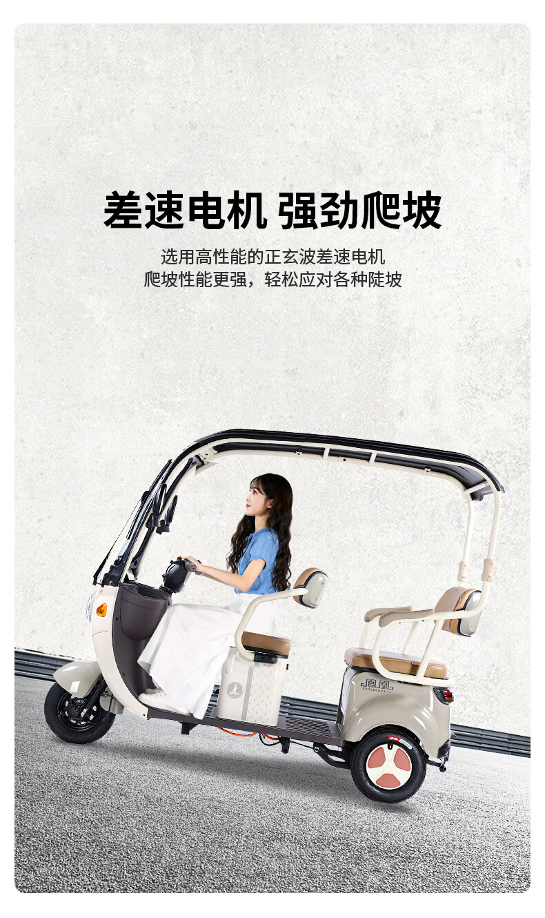 Phoenix Fengya electric tricycle household electric motorcycle adult electric vehicle small tricycle electric vehicle with shed Chaowei battery 600W+60V24A black gold + battery life about 50 kilometers