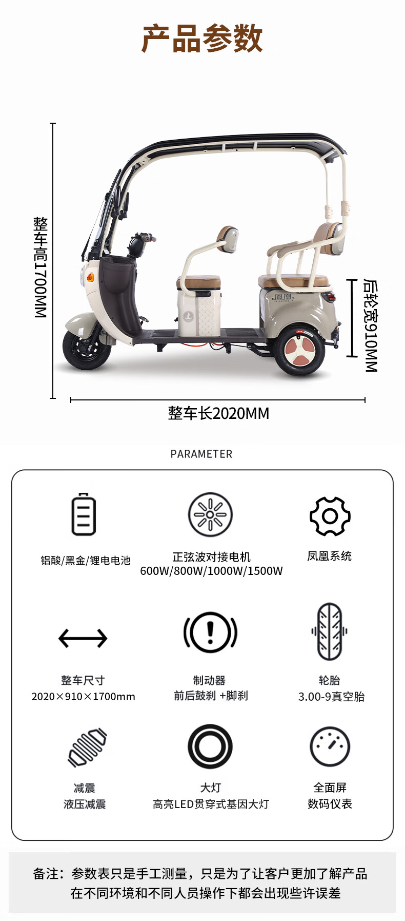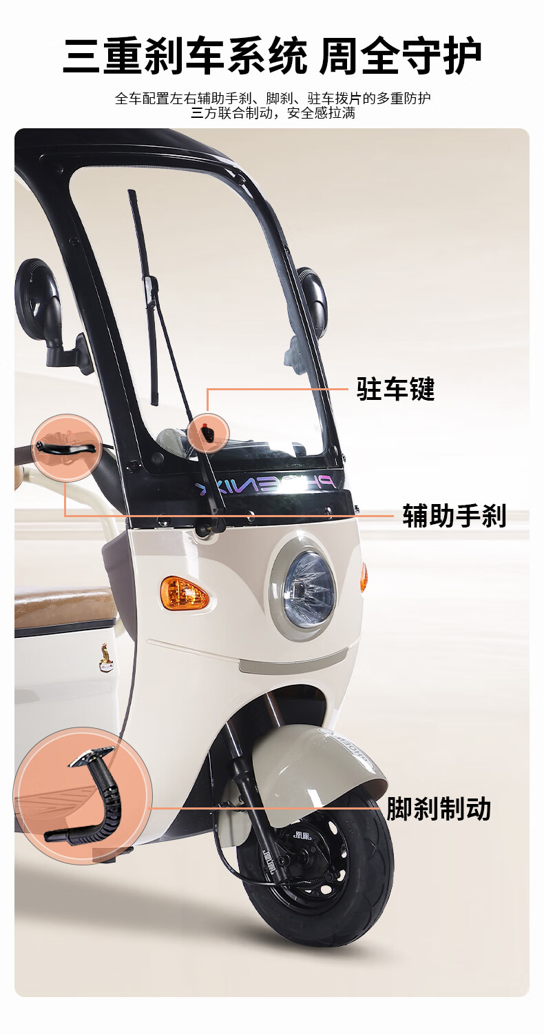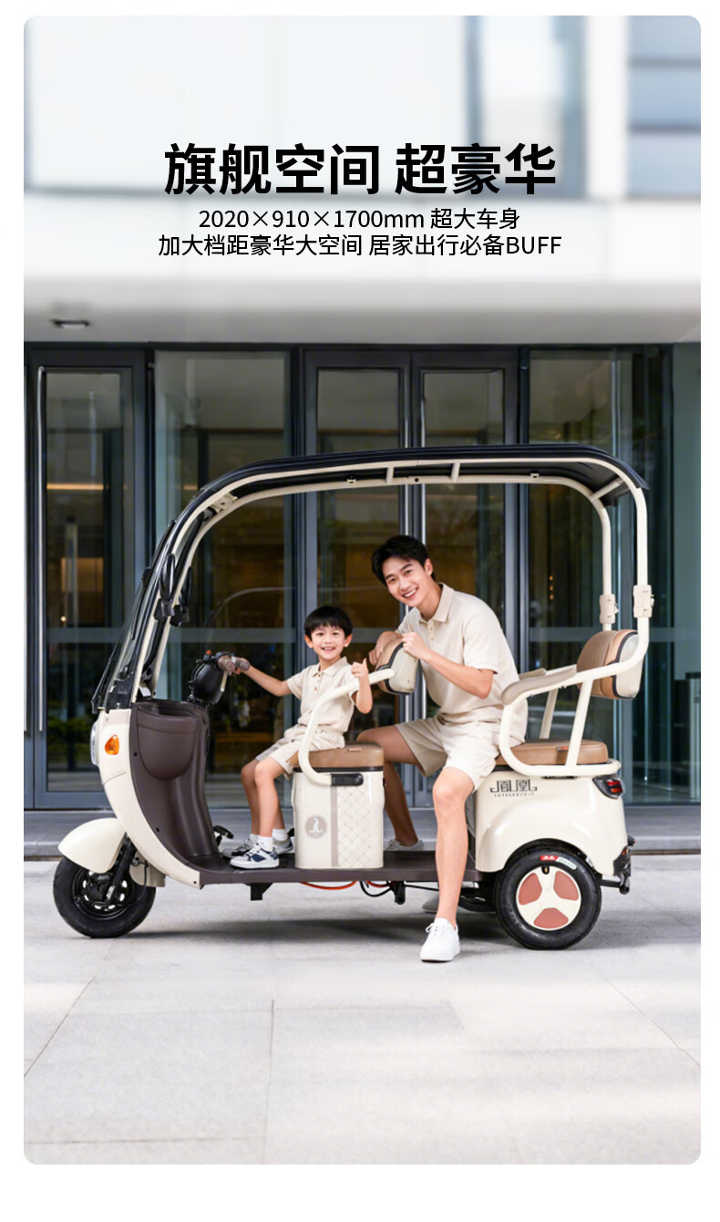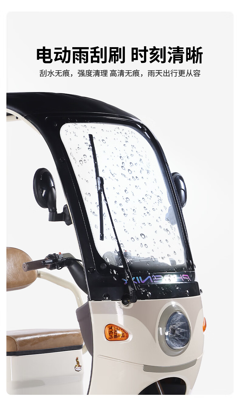 Phoenix Fengya electric tricycle household electric motorcycle adult electric vehicle small tricycle electric vehicle with shed Chaowei battery 600W+60V24A black gold + battery life about 50 kilometers