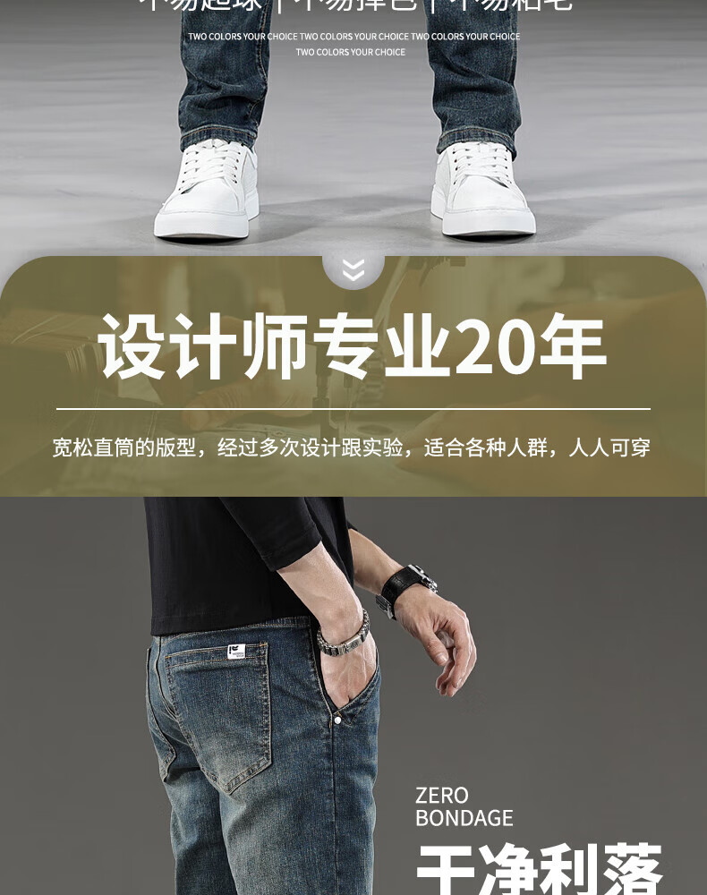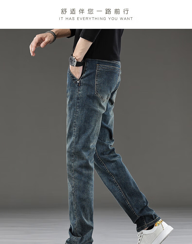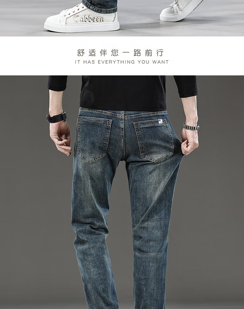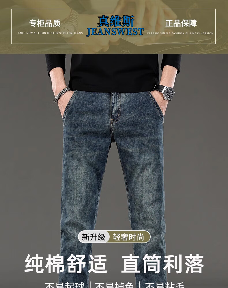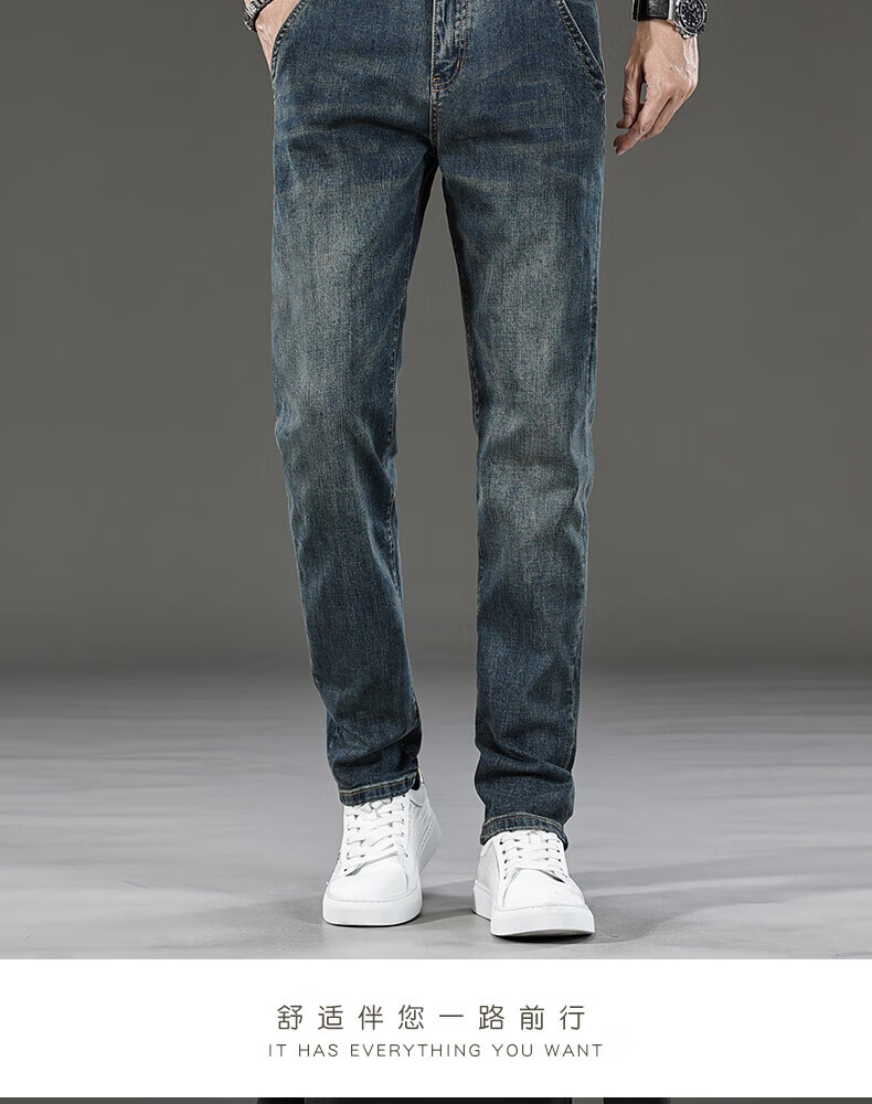 Jeanswest jeans men's spring and autumn new high-end pure cotton retro straight men's trousers trendy men's versatile casual long trousers 302 nostalgic blue 33 (2 feet 6) recommended 140-150 Jin Jin equals 0.5 kg to wear