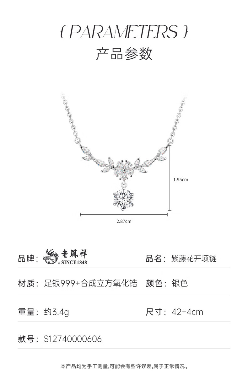 Lao Fengxiang Wisteria Flower Pure Silver 999 Necklace Women's New Pendant Jewelry Birthday Anniversary Gift for Girlfriend and Wife Jingsuda Explosive Wisteria Flower Necklace