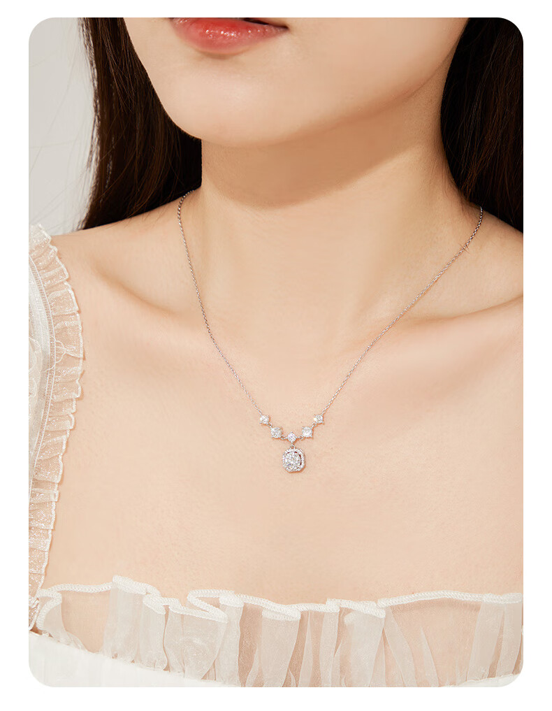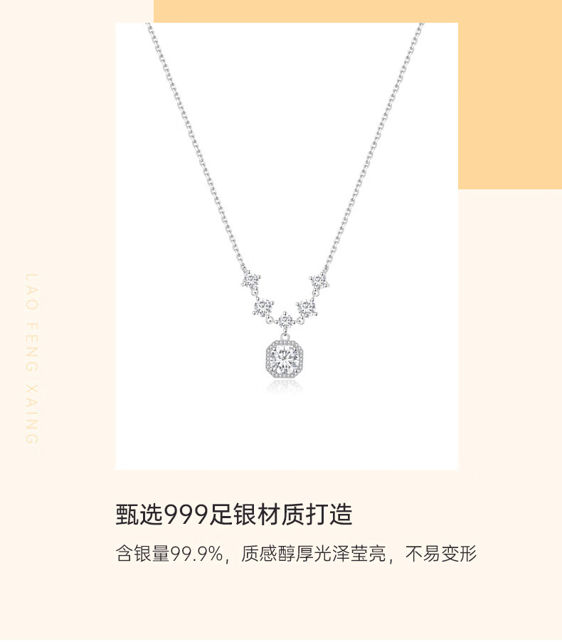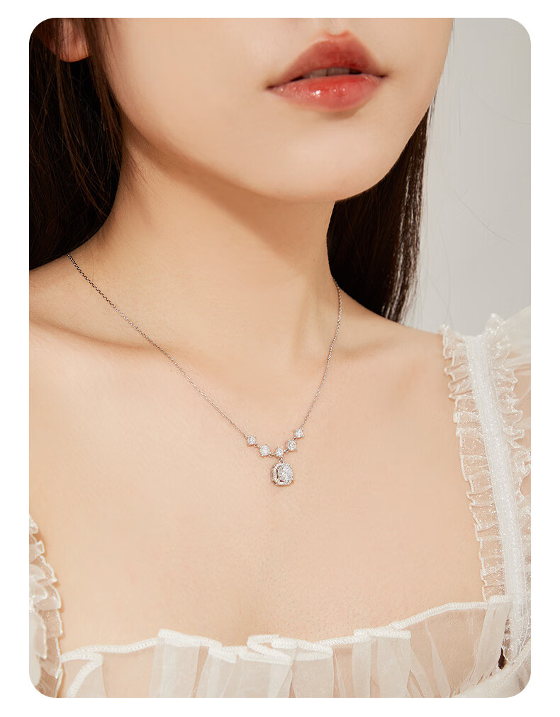 Lao Fengxiang pure silver light luxury necklace feminine small sugar cube jewelry girl birthday anniversary gift for girlfriend and wife starlight sugar cube necklace * local warehouse / nearby delivery