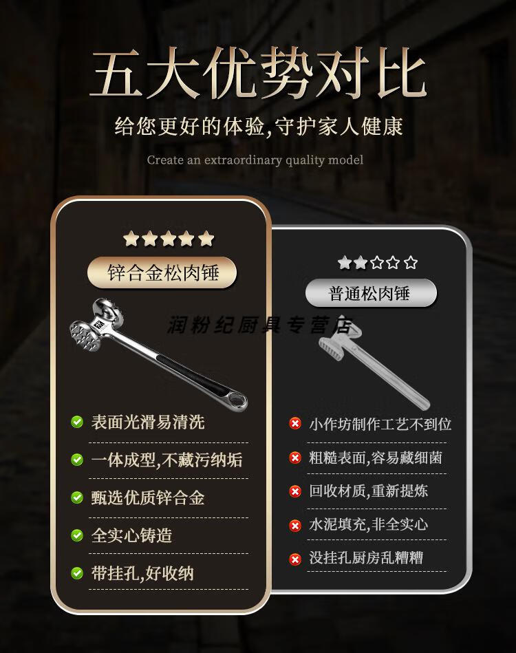 双立人德国进口品质敲肉锤牛排锤肉锤松肉锤断筋器家用松肉针嫩肉双面 【双面】敲肉锤(新款)*1