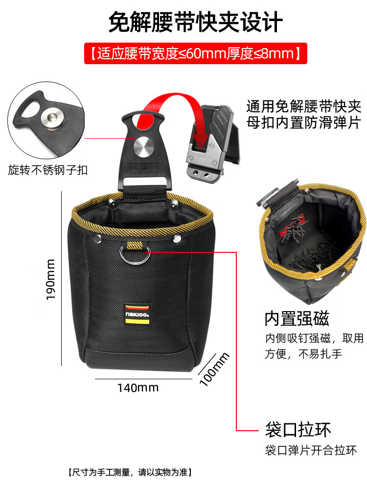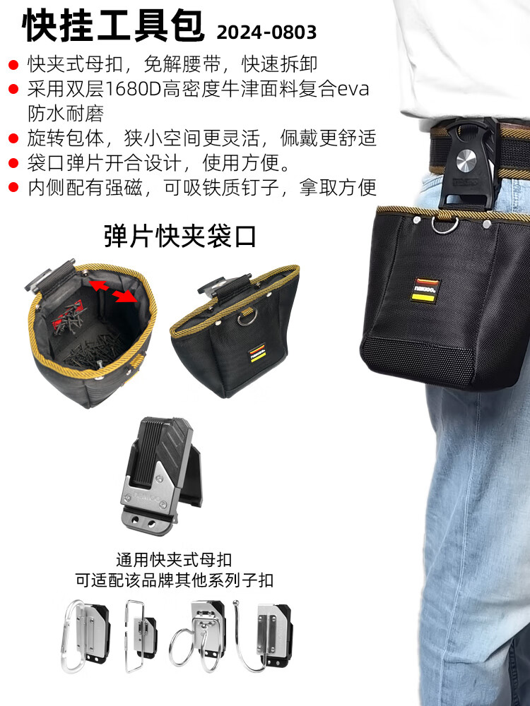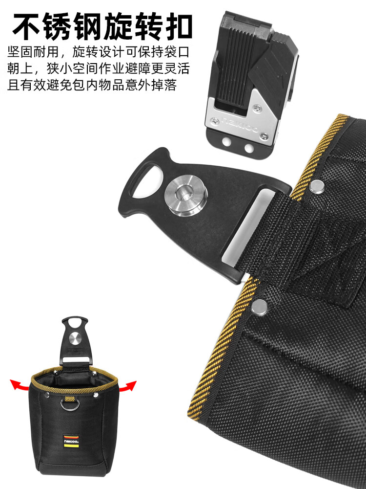 NakIoo rotating quick-hook tool bag carpentry nail bag multi-functional repair electric bag waist bag hanging bag belt quick-hook parts bag magnetic rotating quick-hook carpentry nail bag