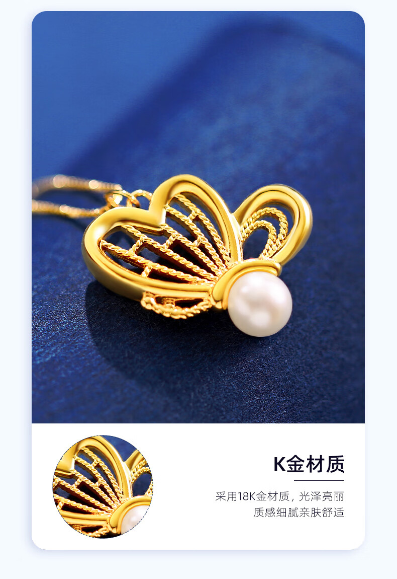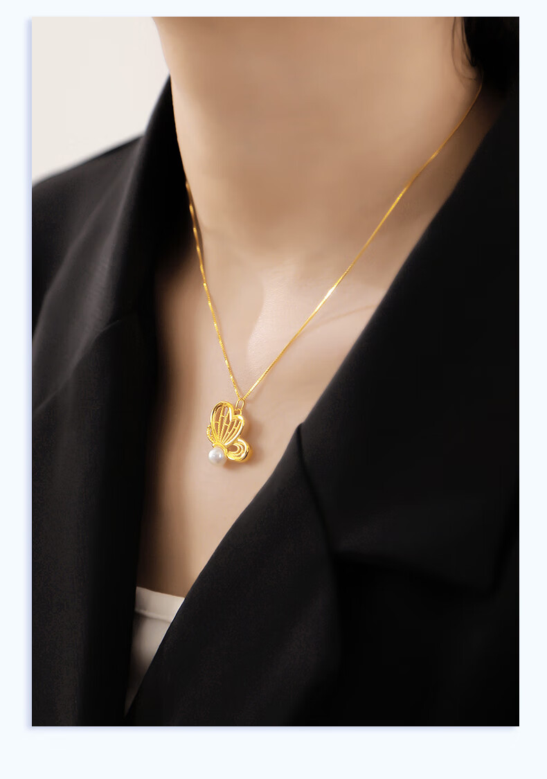 Liuwan 18K gold filigree butterfly pearl necklace pendant women's clavicle chain as a Chinese Valentine's Day gift for your girlfriend