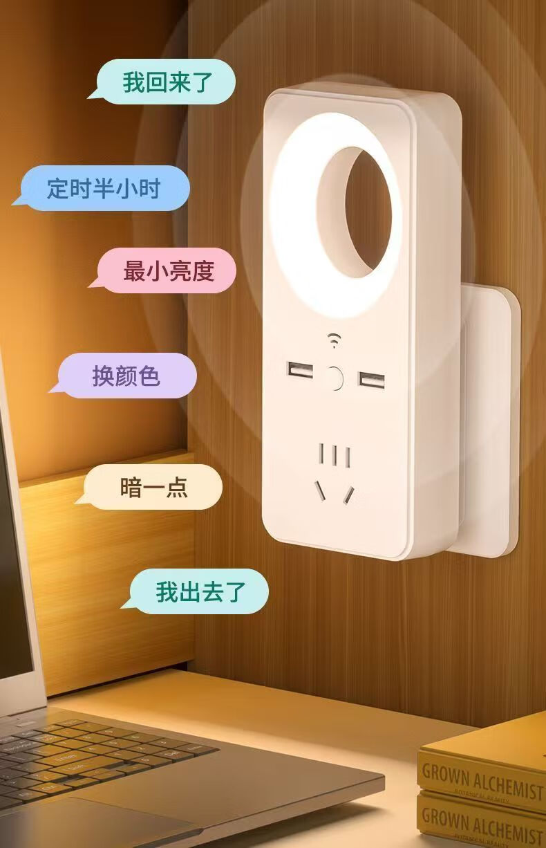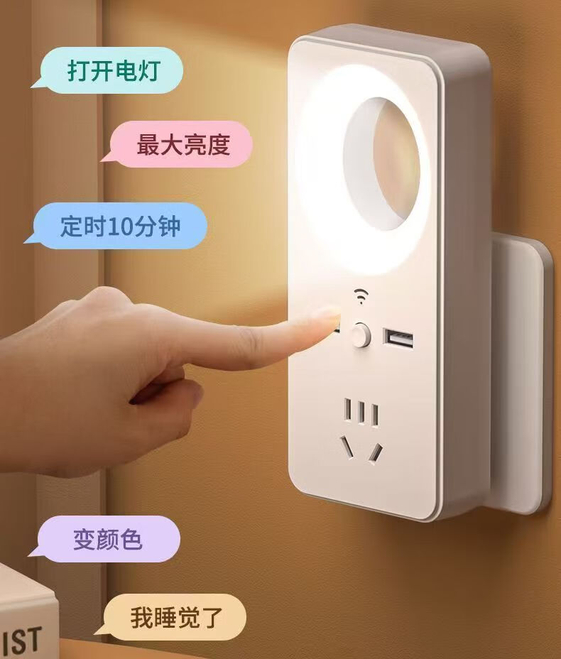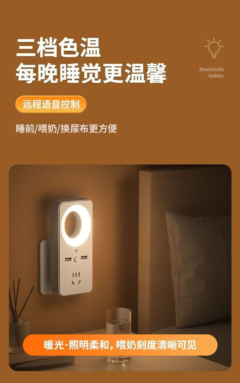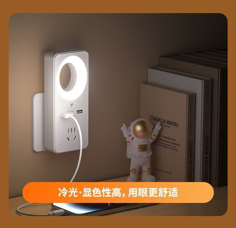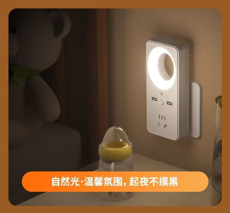 JD Logistics New National Standard Socket Intelligent Voice Voice Control Night Light Soft Light Energy Saving Eye Protection Bedroom Wake-Up Bedside Lamp Home Socket One Turn 14 Holes Upgraded Model With USB + Intelligent Voice Light Can Be Voice Controlled
