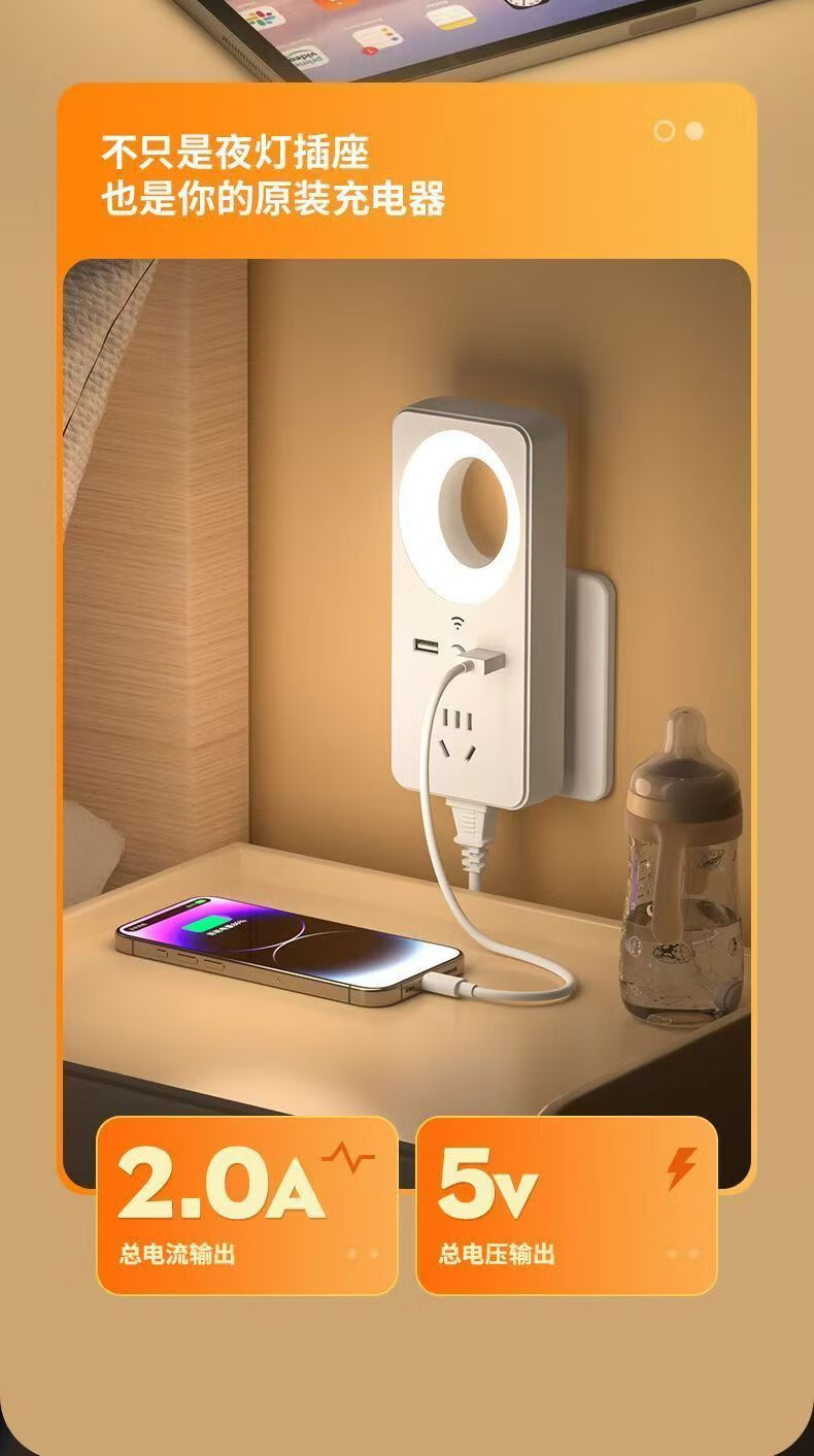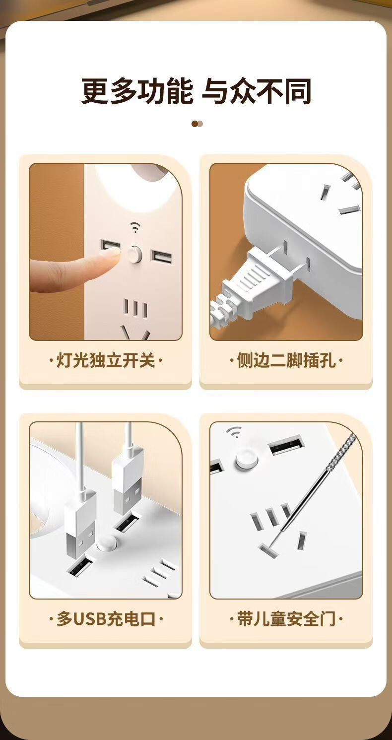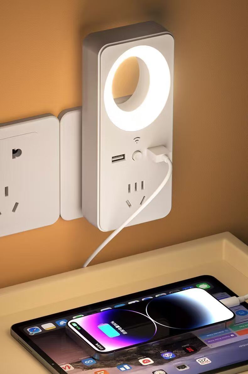 JD Logistics New National Standard Socket Intelligent Voice Voice Control Night Light Soft Light Energy Saving Eye Protection Bedroom Wake-Up Bedside Lamp Home Socket One Turn 14 Holes Upgraded Model With USB + Intelligent Voice Light Can Be Voice Controlled